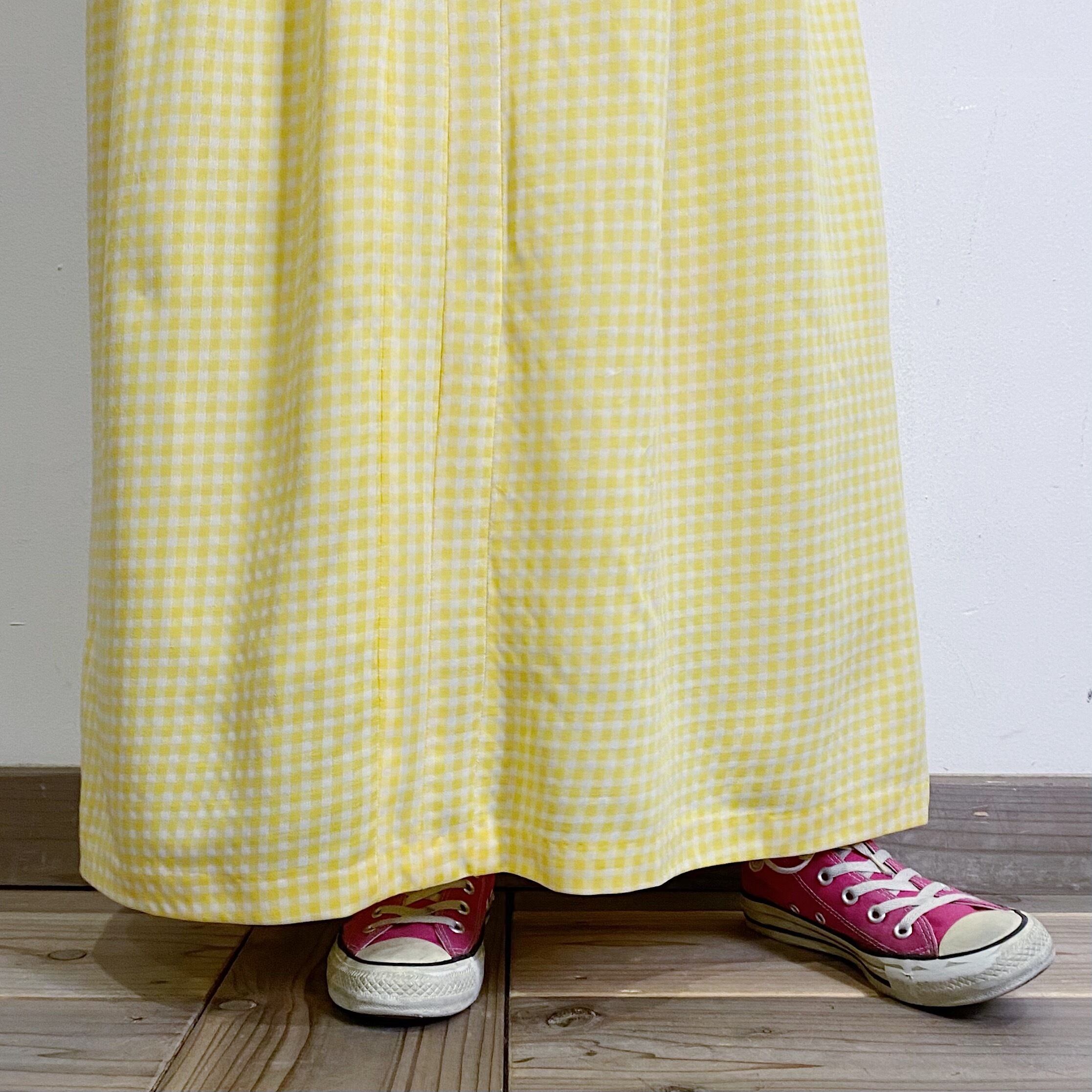 黄色と白のギンガムチェックが可愛い70年代のワンピースです。