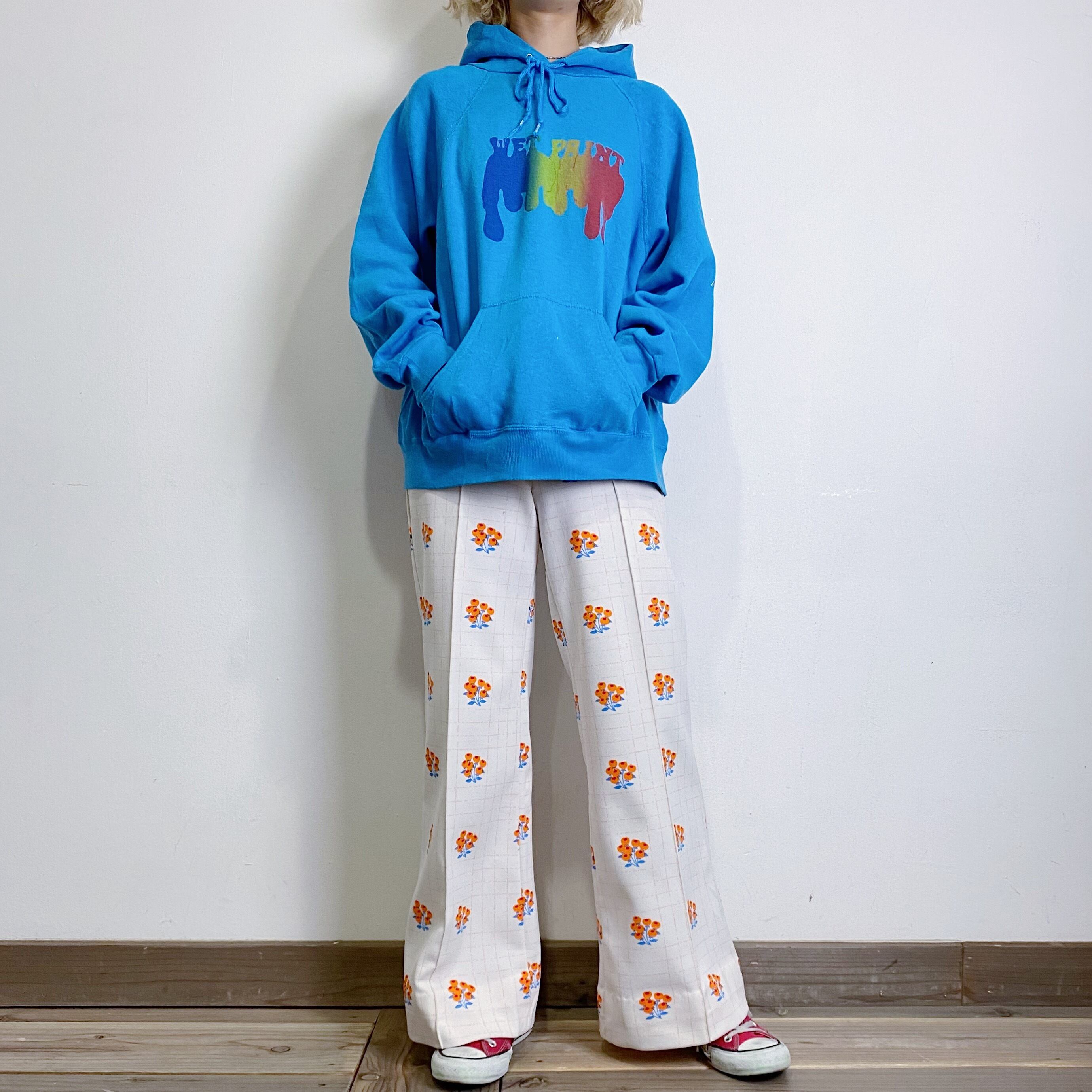 綺麗なライトブルーベースにフロントのレインボープリントが可愛いフーディーです。