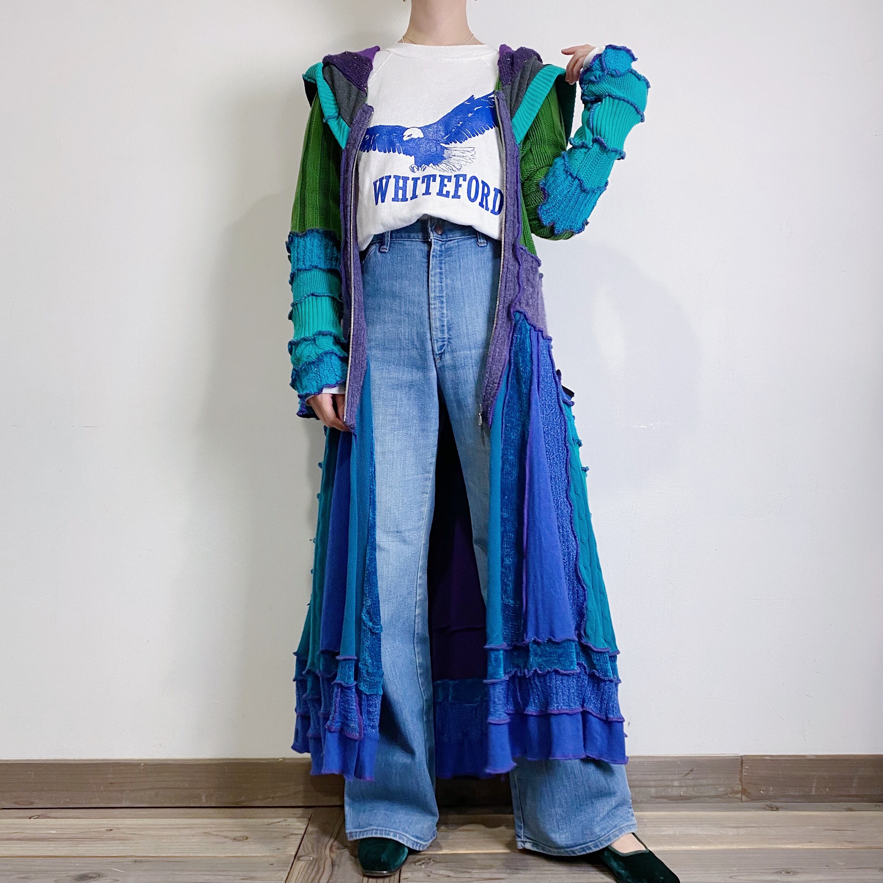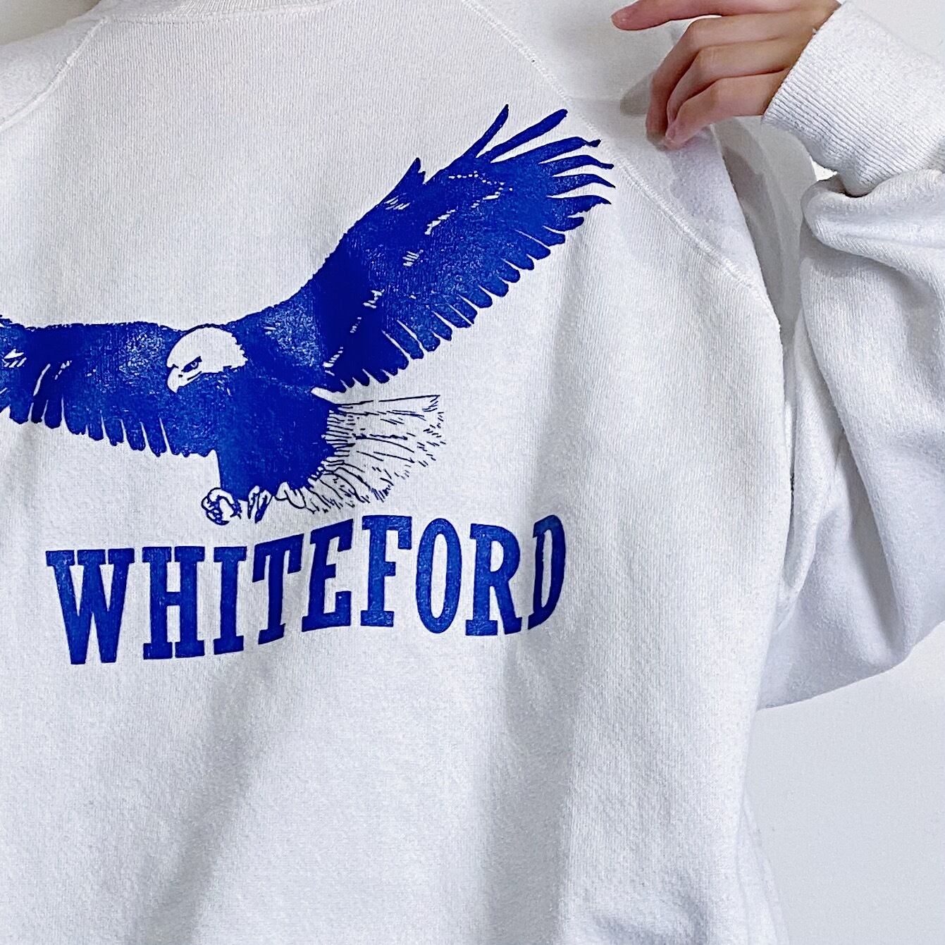 白ボディにブルーの鷹のプリントがイケてる80年代のスウェットです。