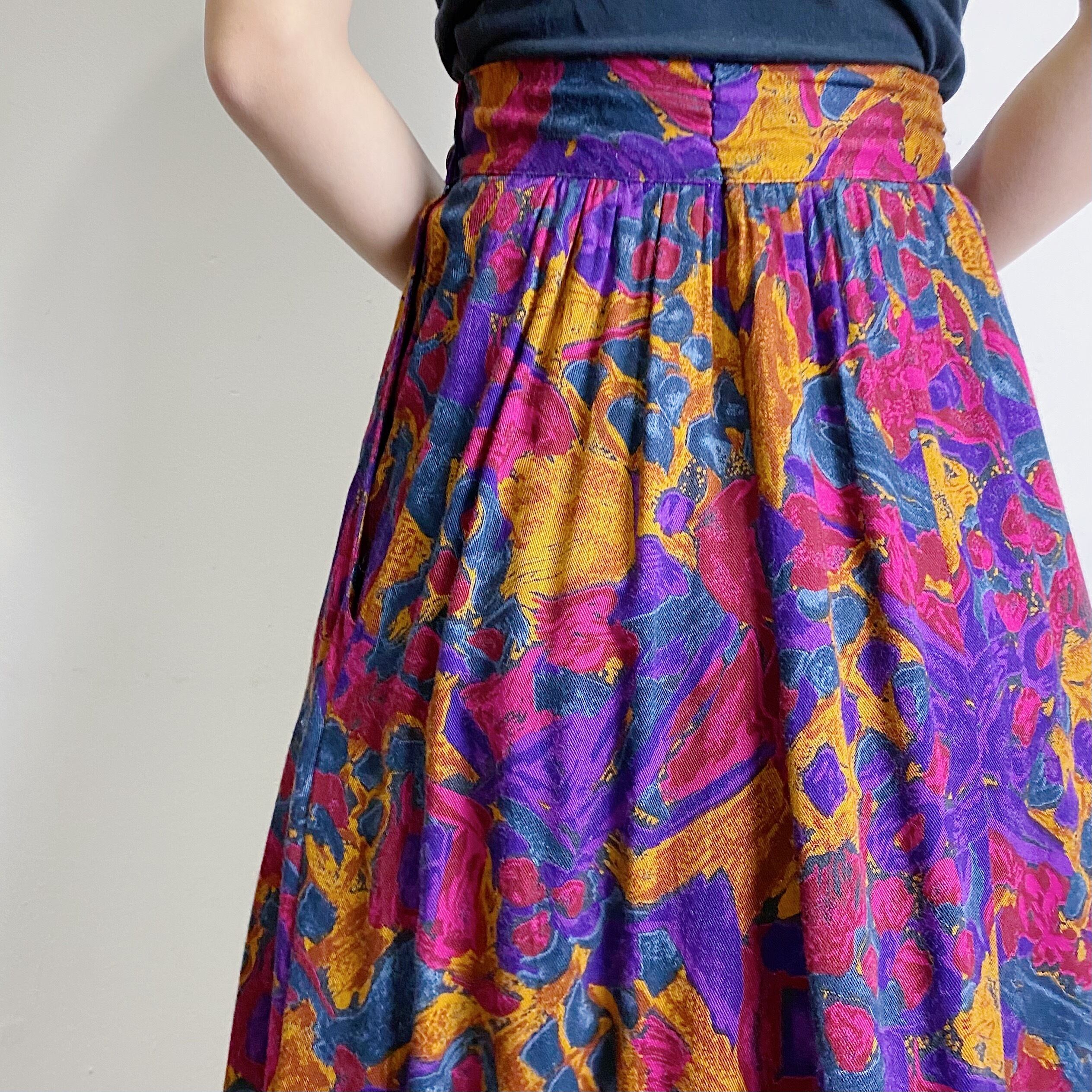80s pink and purple rayon skirt