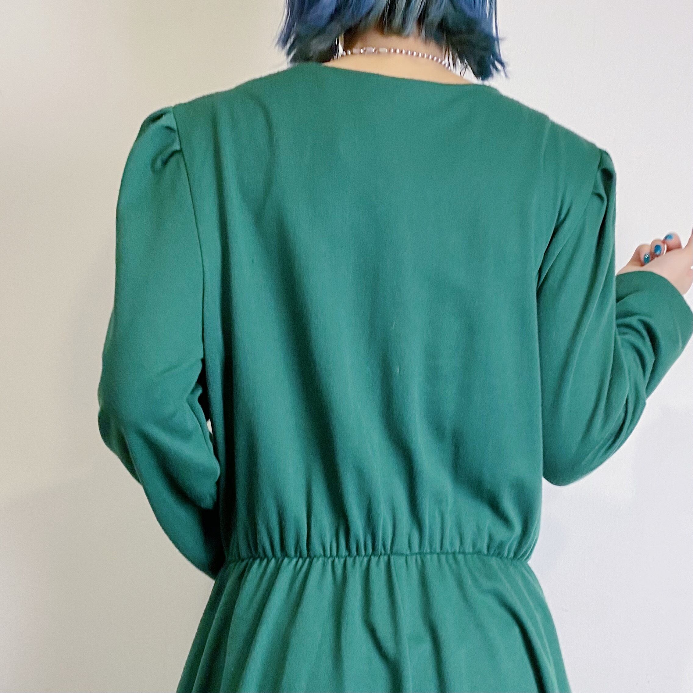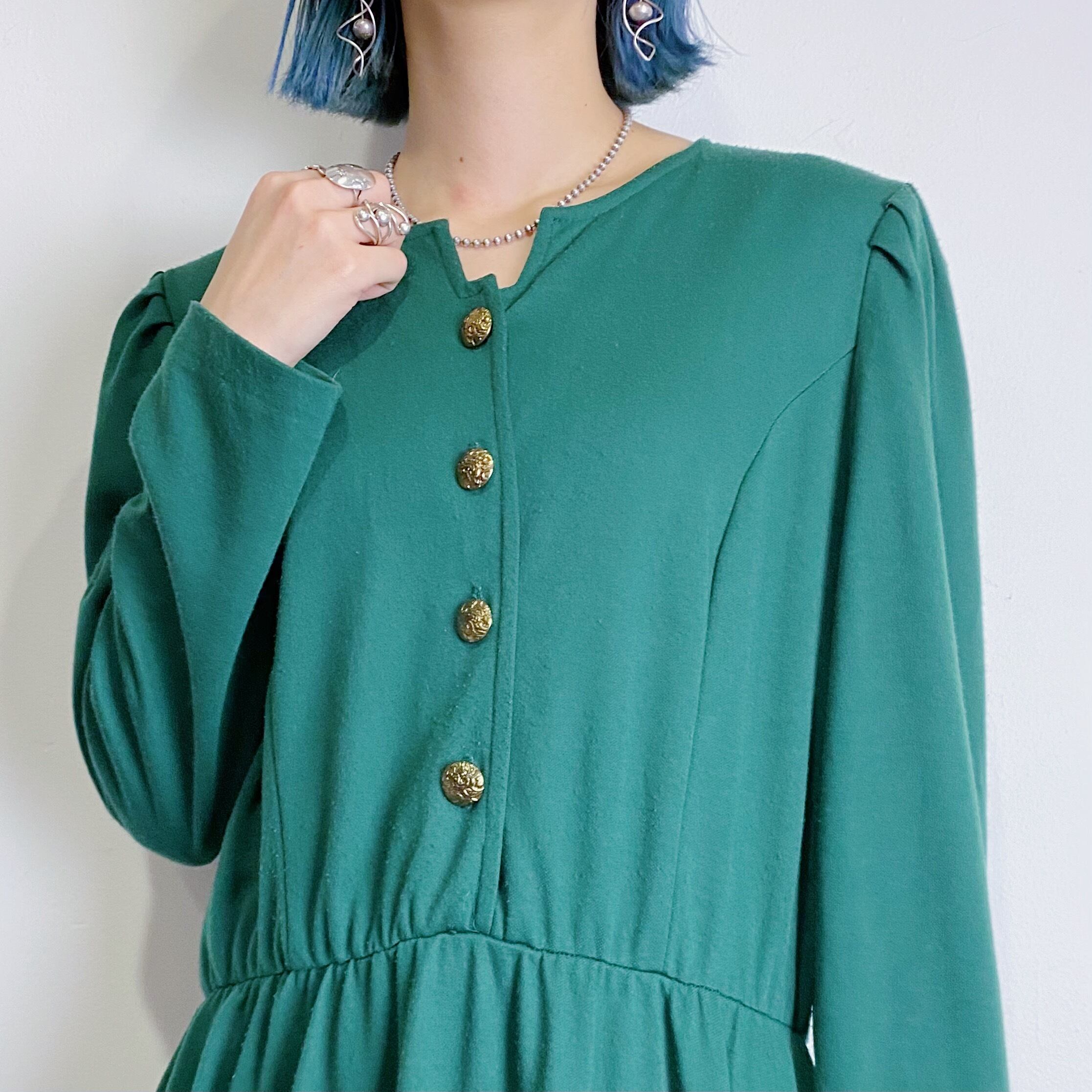 深めのグリーンが着こなしやすい80年代のワンピースです。
