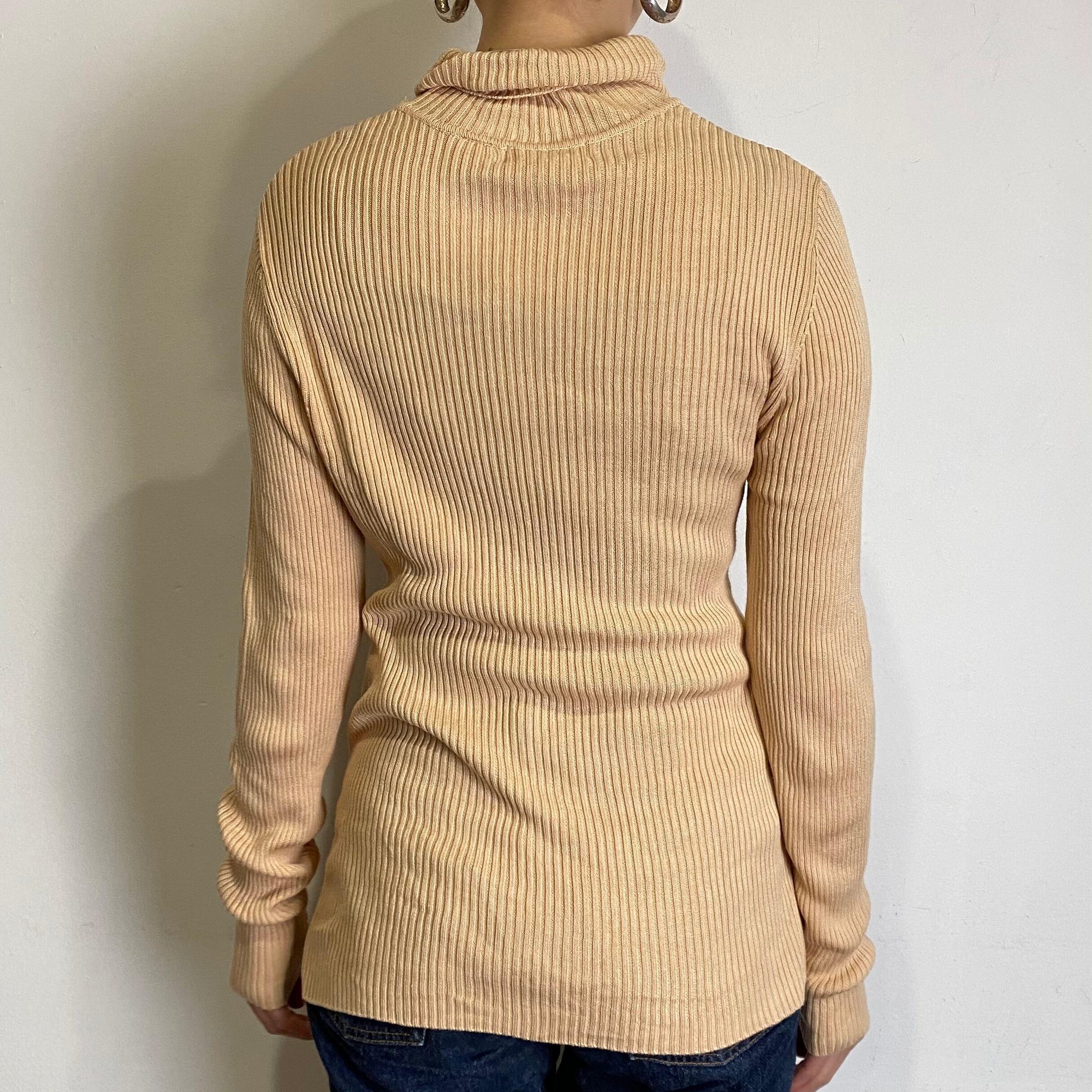 上質なシルク素材が肌触りの良い、ベージュのハイネックトップスです。