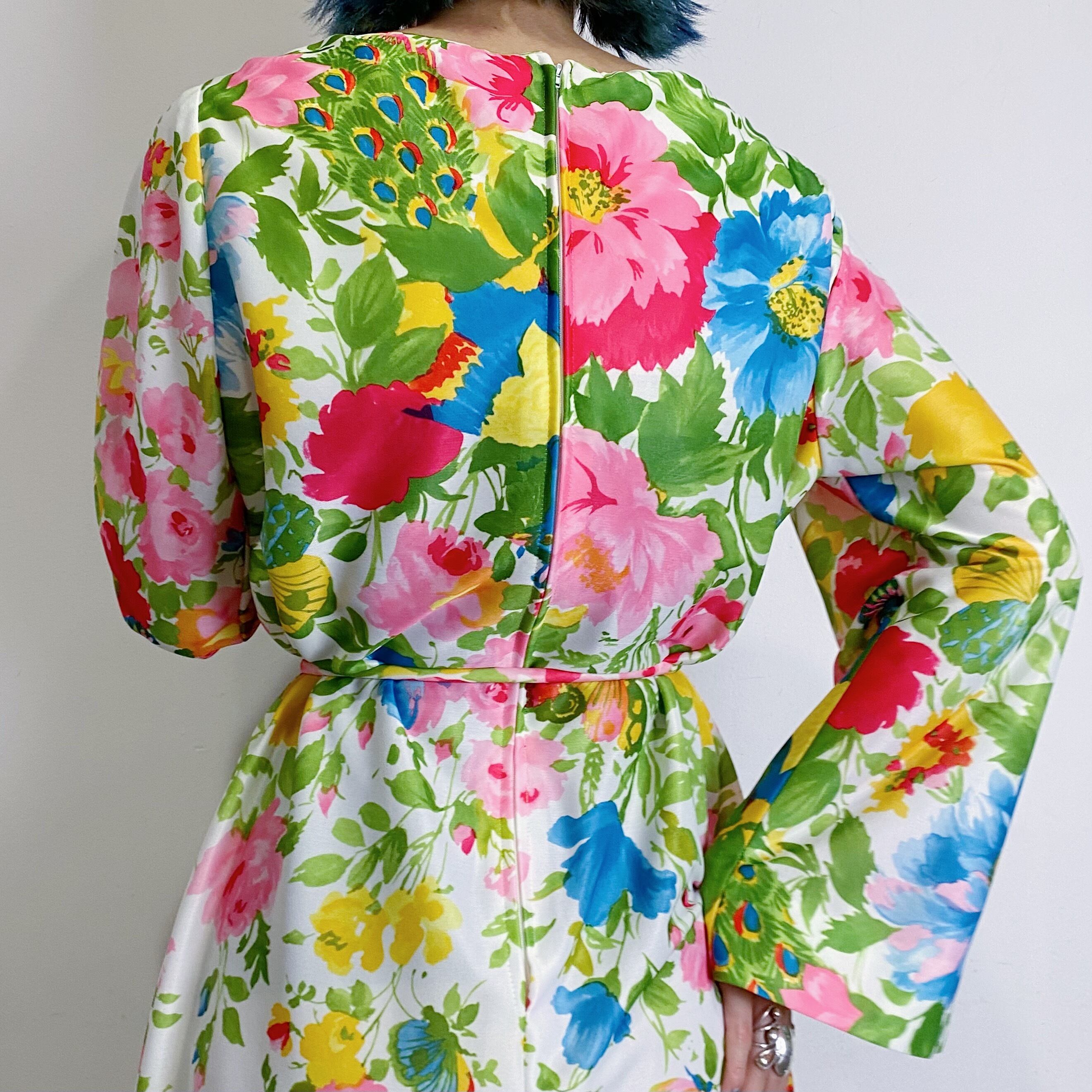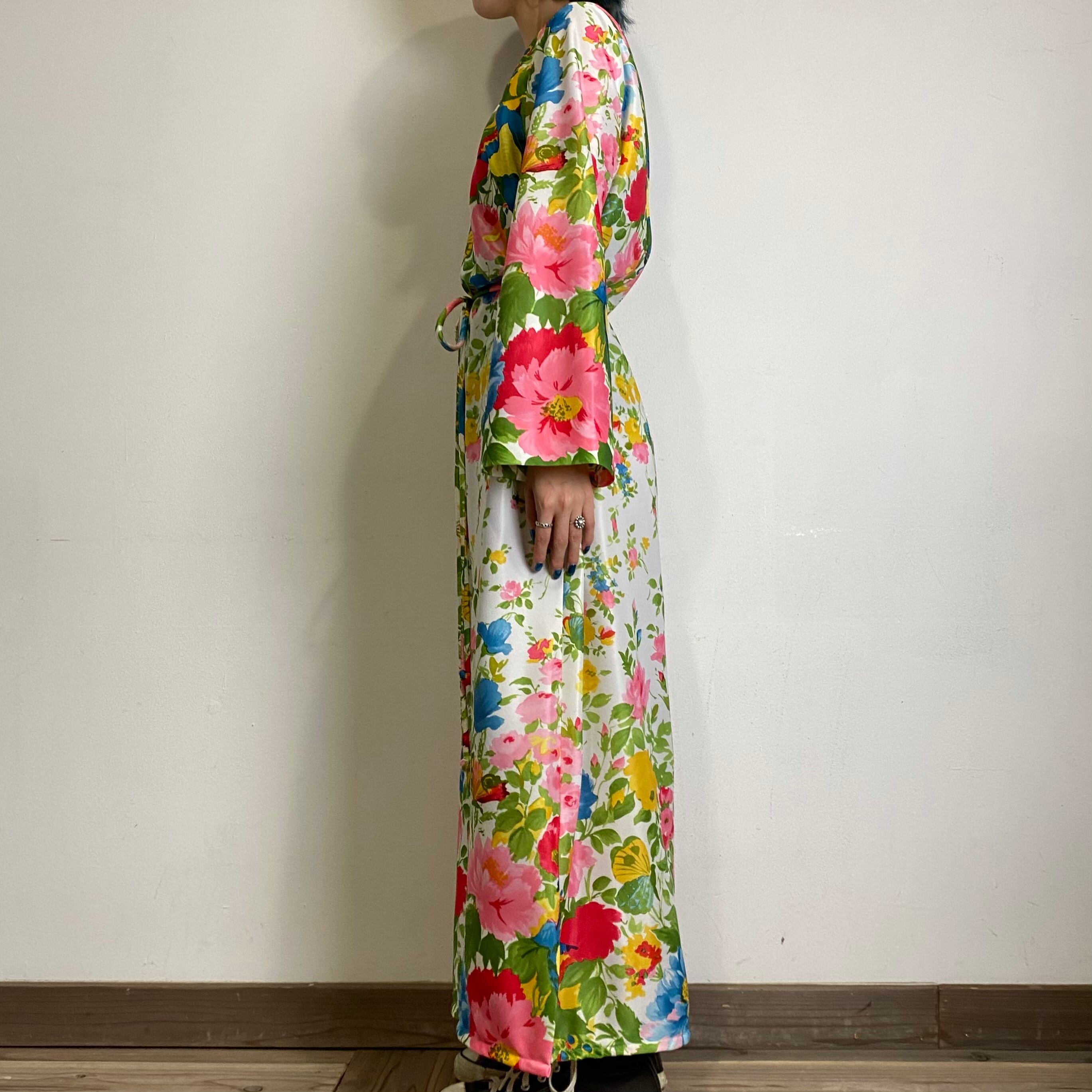 70s flower and butterfly printed long dress