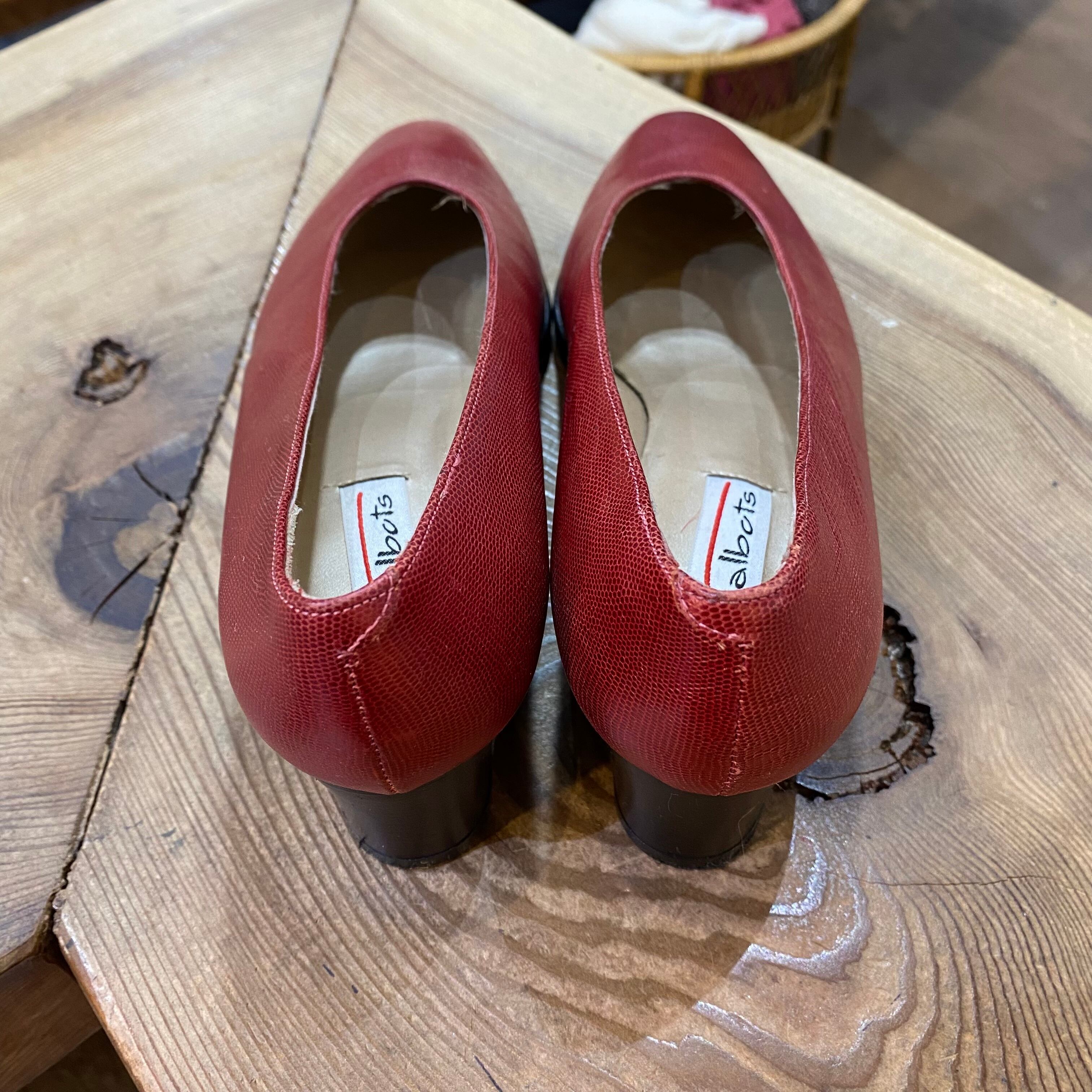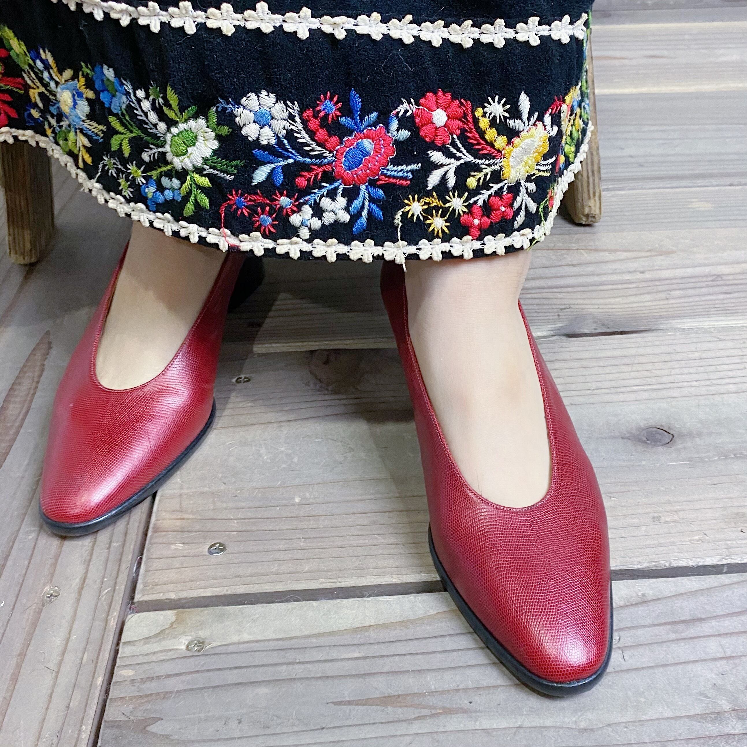 レッドカラーがポイントの80年代のレザーパンプスです。