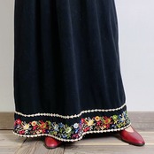 70s black velour embroidery long dress