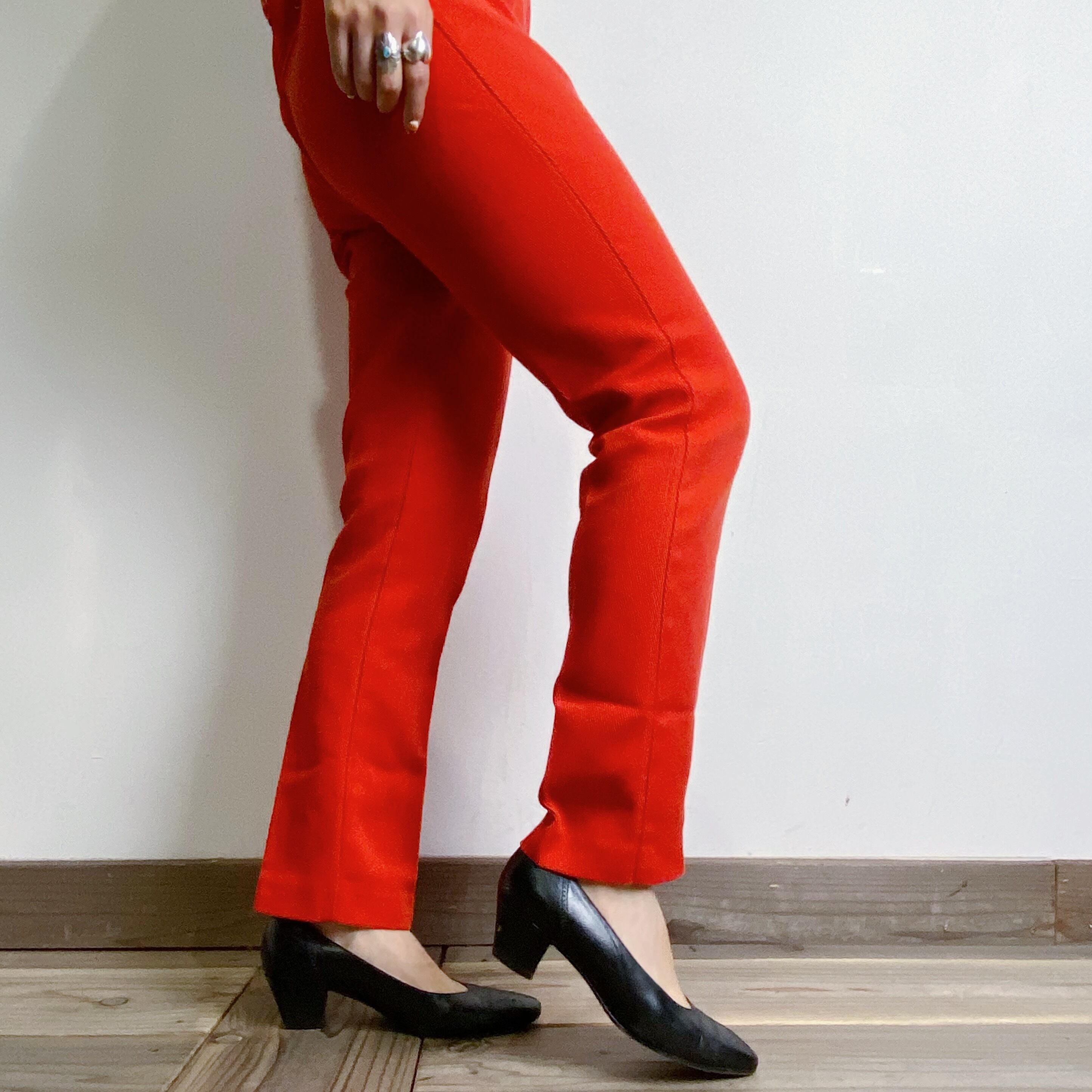 トマトのような赤とオレンジの中間くらいの鮮やかな色合いが可愛い50年代のパンツです。
