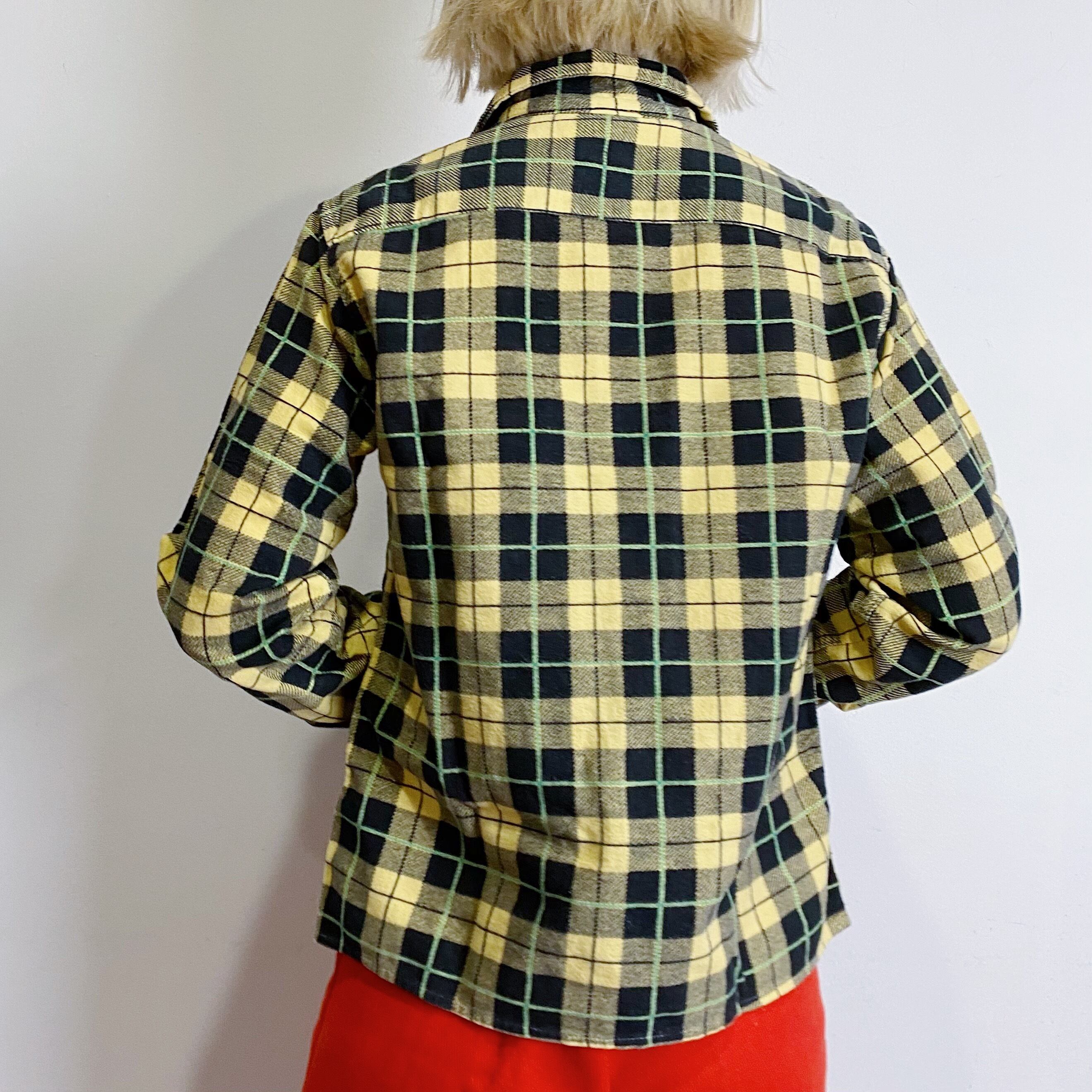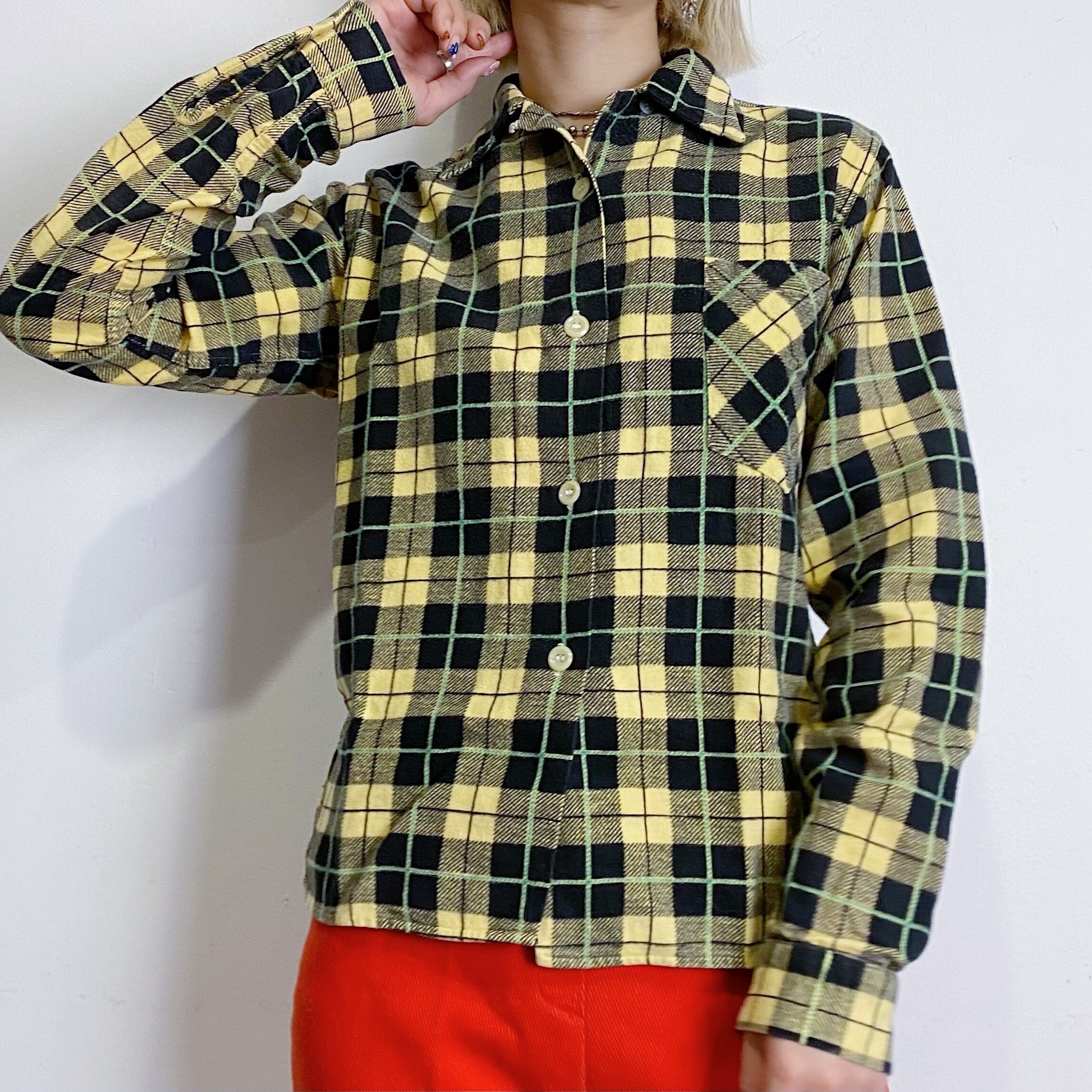 イエローベースのチェックが可愛い、50年代のガールスカウトタグが付いたヴィンテージのネルシャツです。