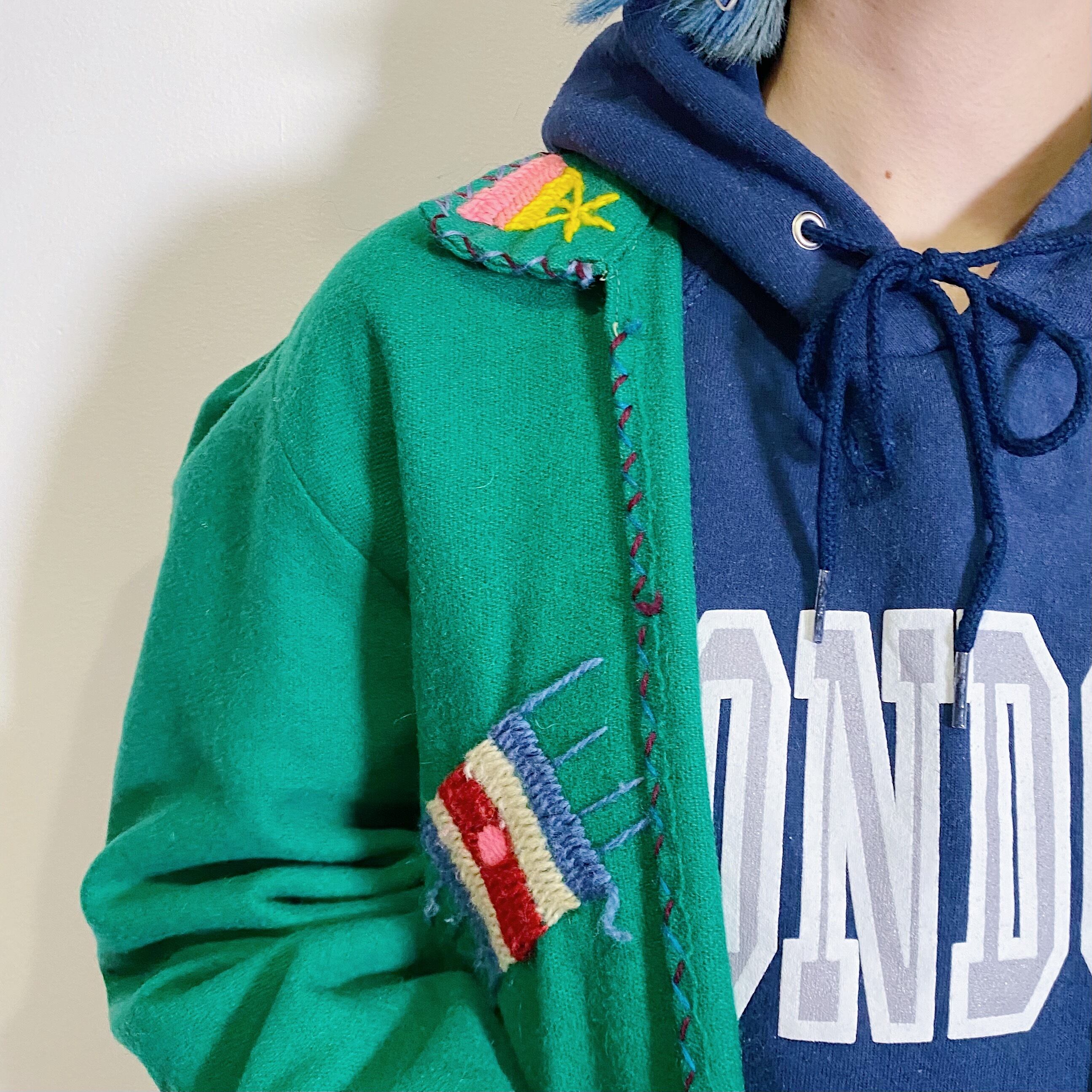 刺繡やパッチでメキシコの日常が描かれた、50年代のメキシコのフェルトジャケットです。