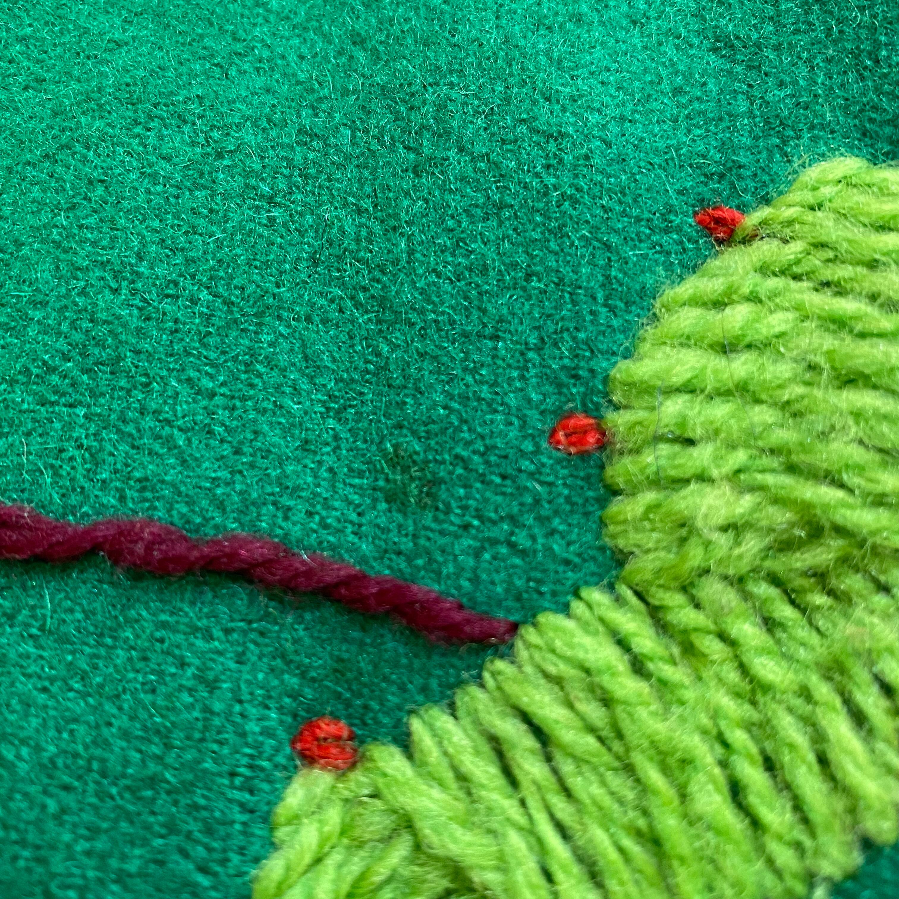また刺繍箇所に毛羽立ちや若干のダメージが見受けられるほか、点ほどの穴をお直しした跡が見受けられますがいずれもほぼ目立ちません。