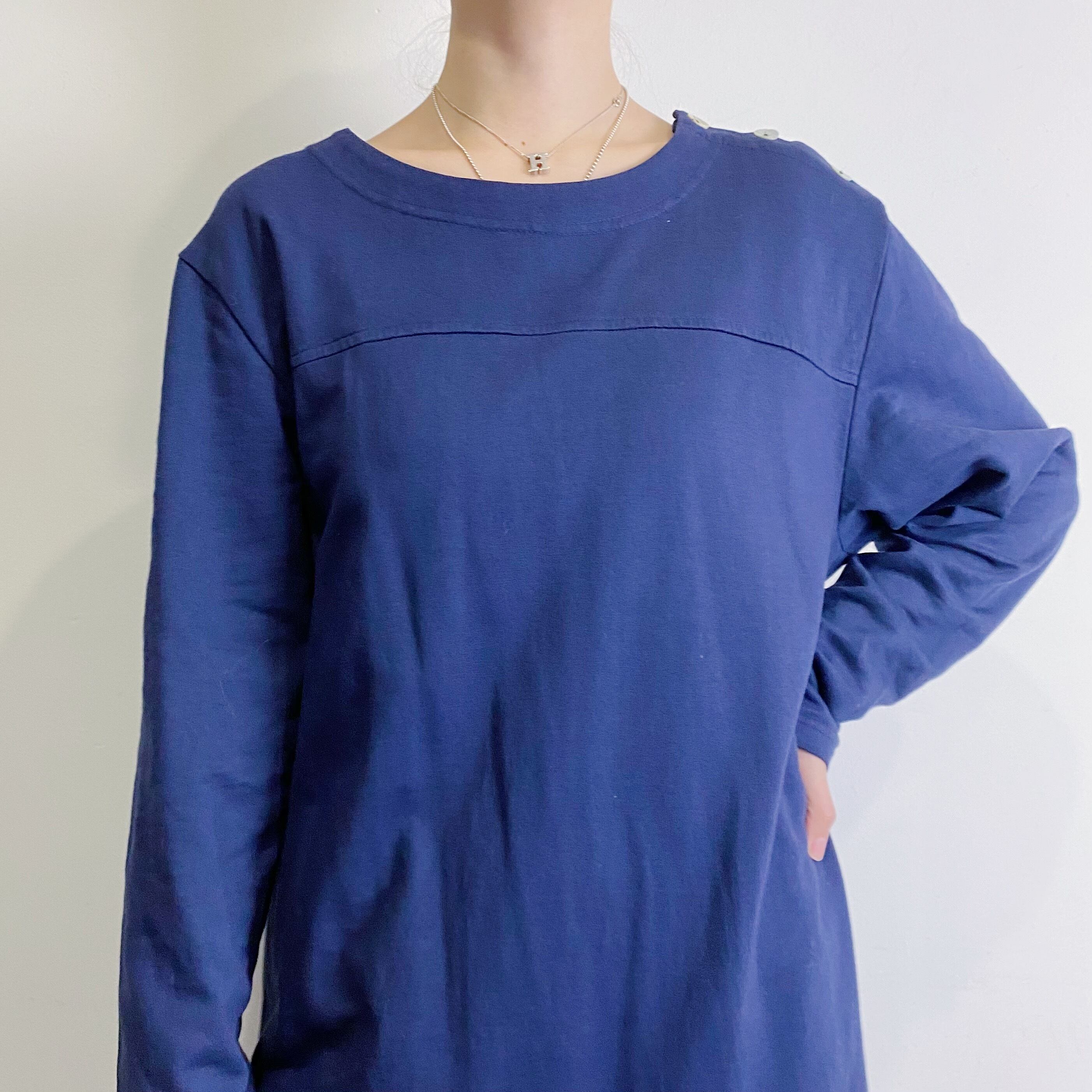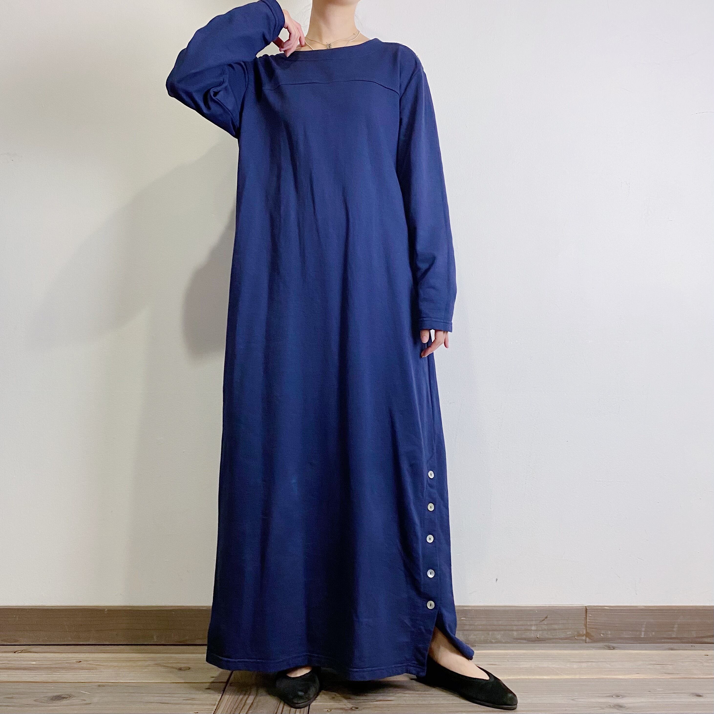 使い勝手の良いネイビーベースに、着心地も抜群なコットン素材のカットソーワンピースです。