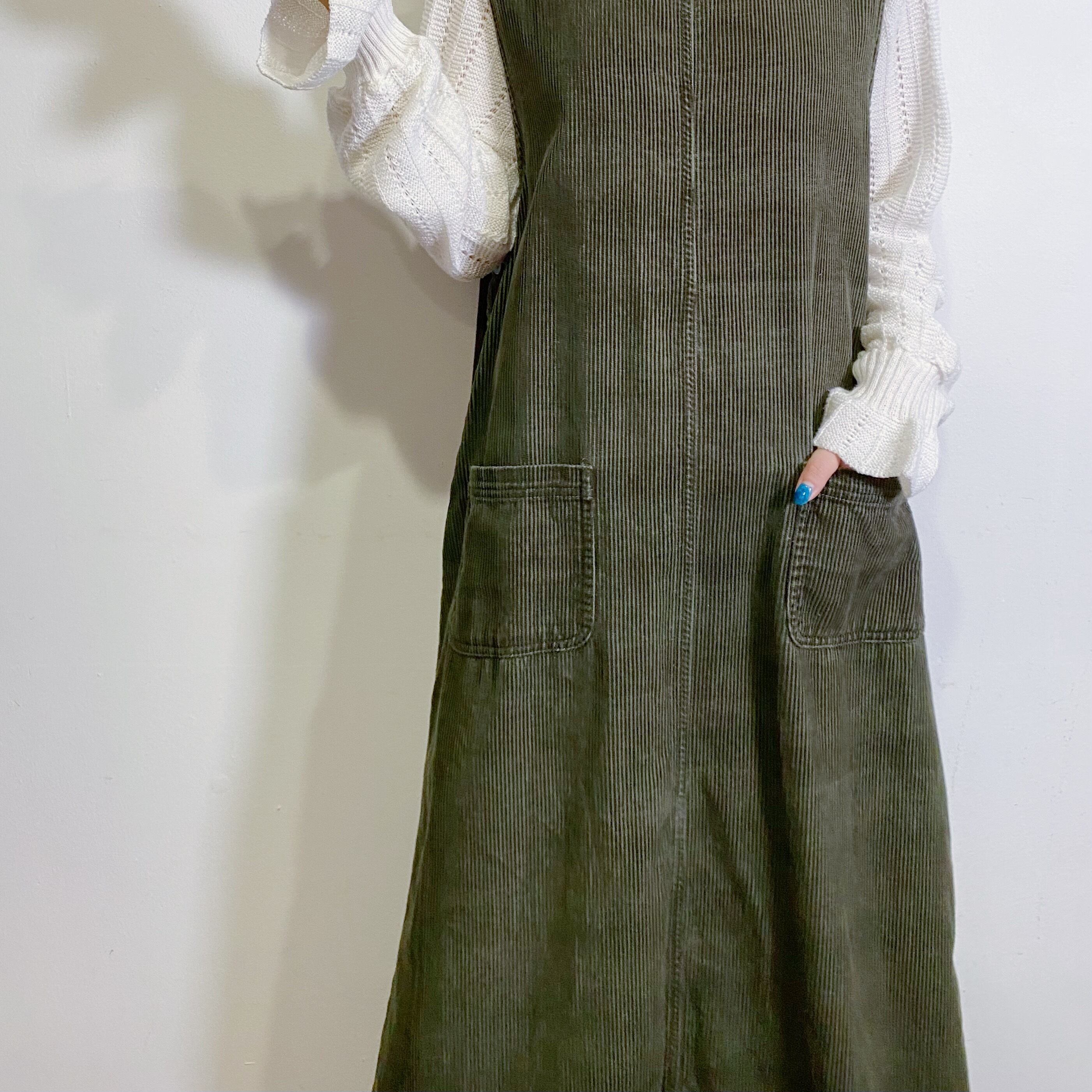 olive color corduroy jumper dress
