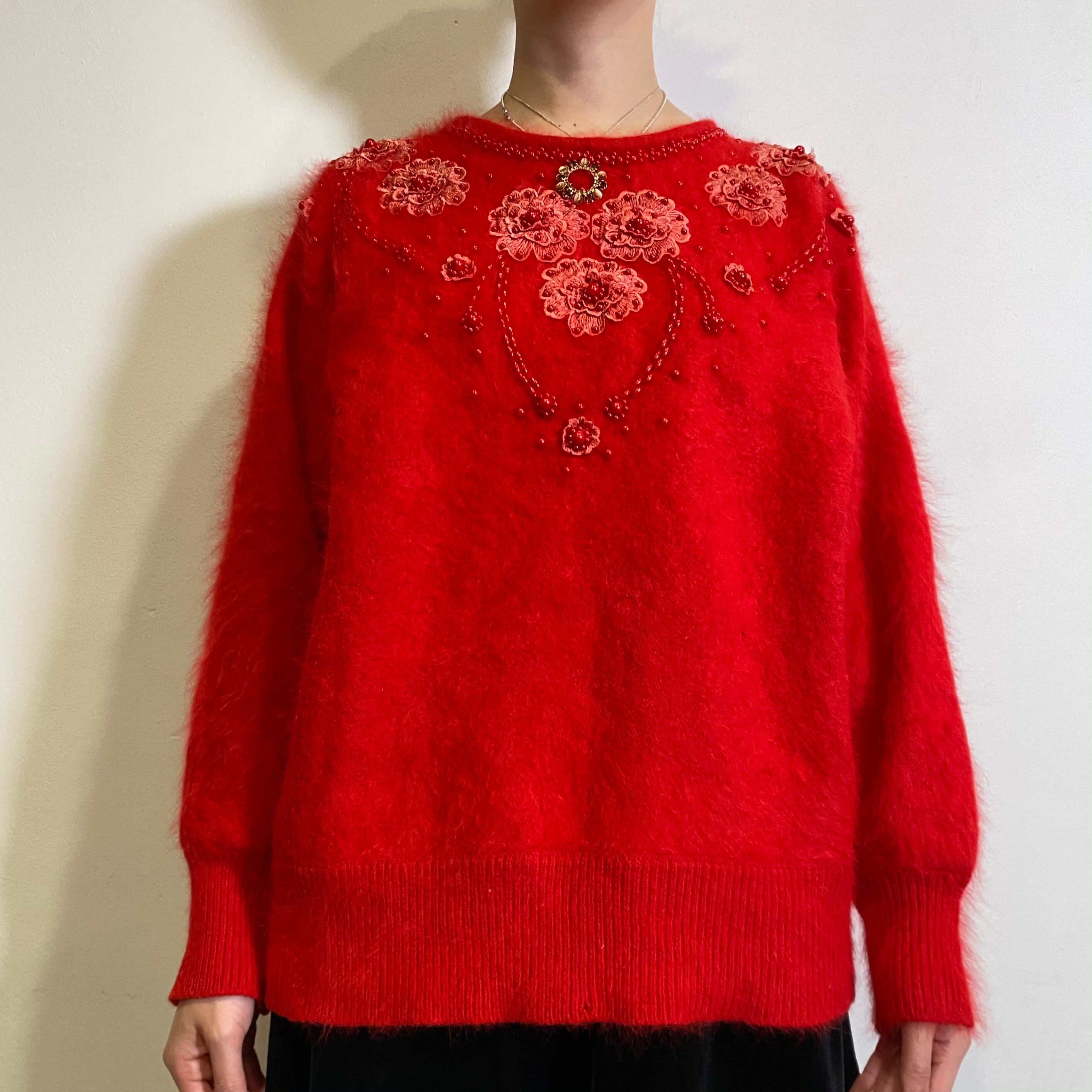 ぱっきりとしたレッドが目を惹く、80年代のニットセーターです。