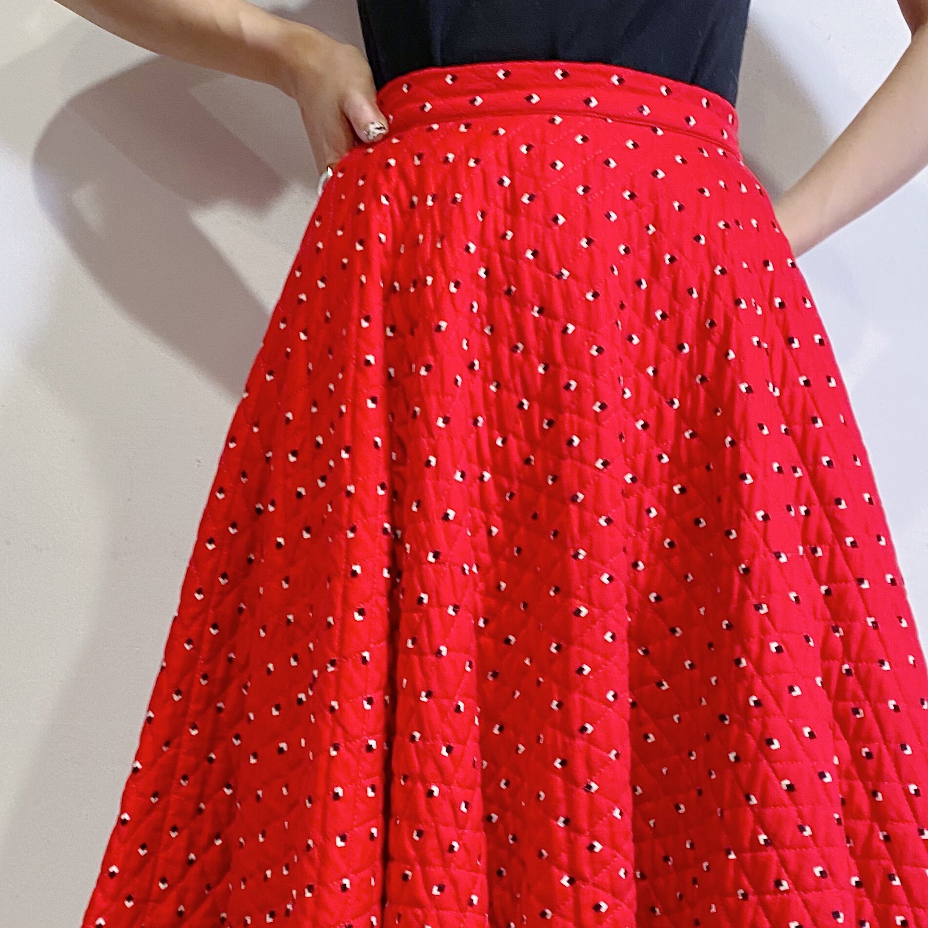 赤に黒白のスクエアドットがかわいい、50年代のヴィンテージスカートです。