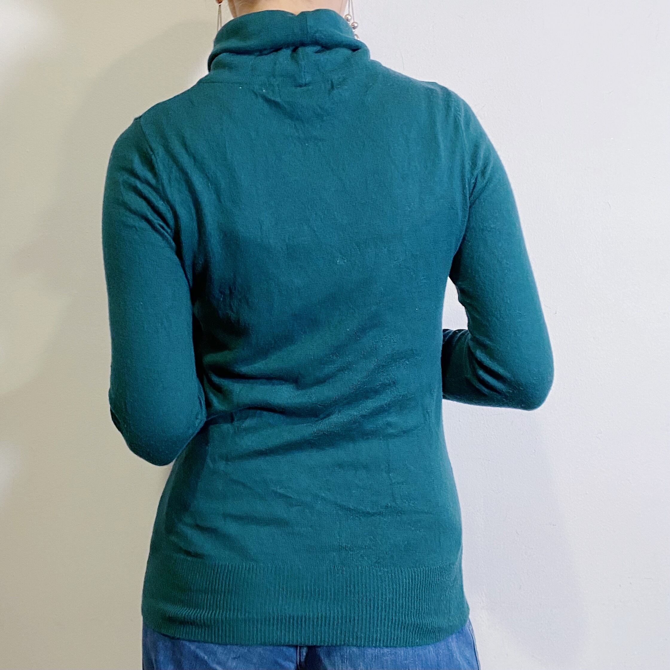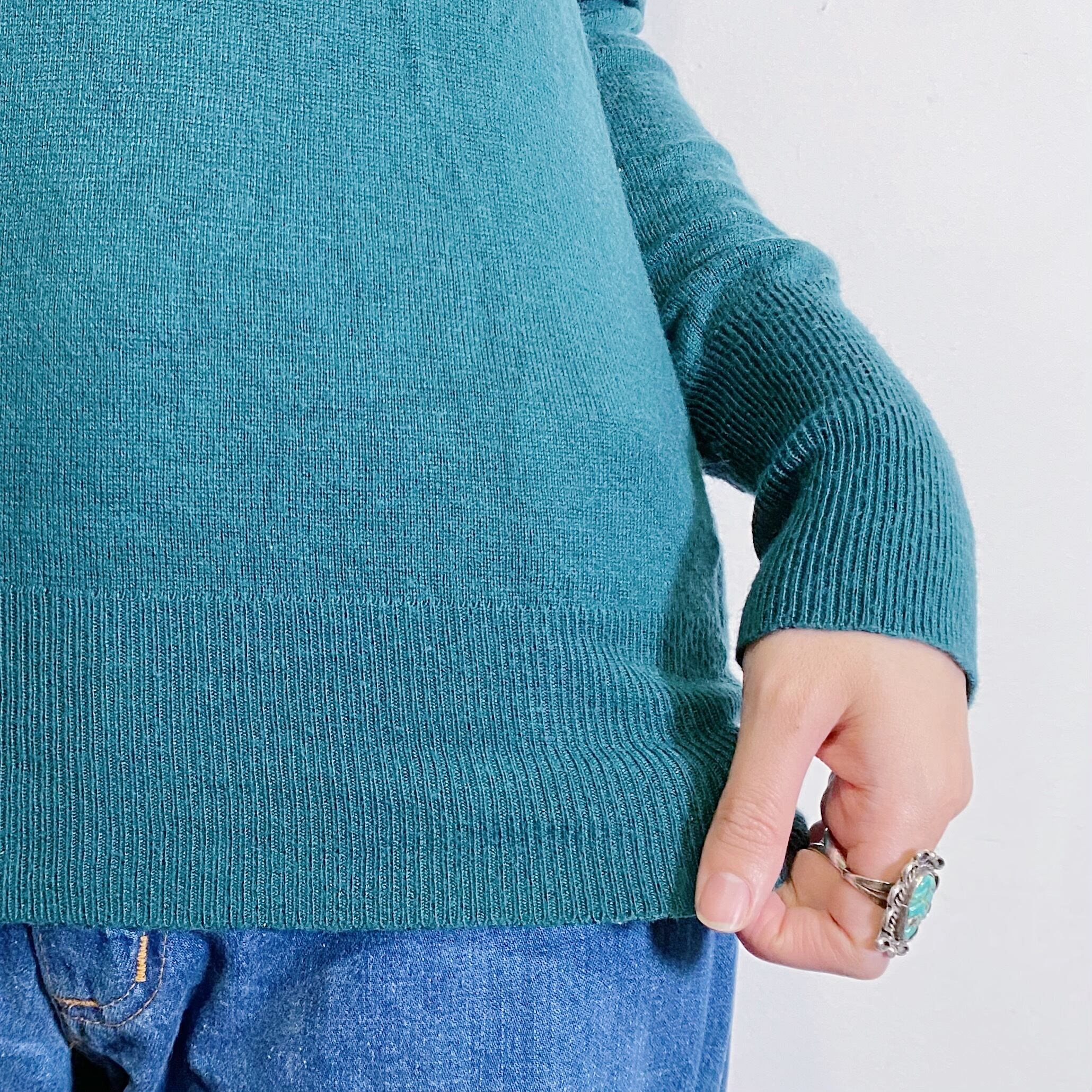 深みのあるグリーンがかわいい、使い勝手のいいタートルニットです。