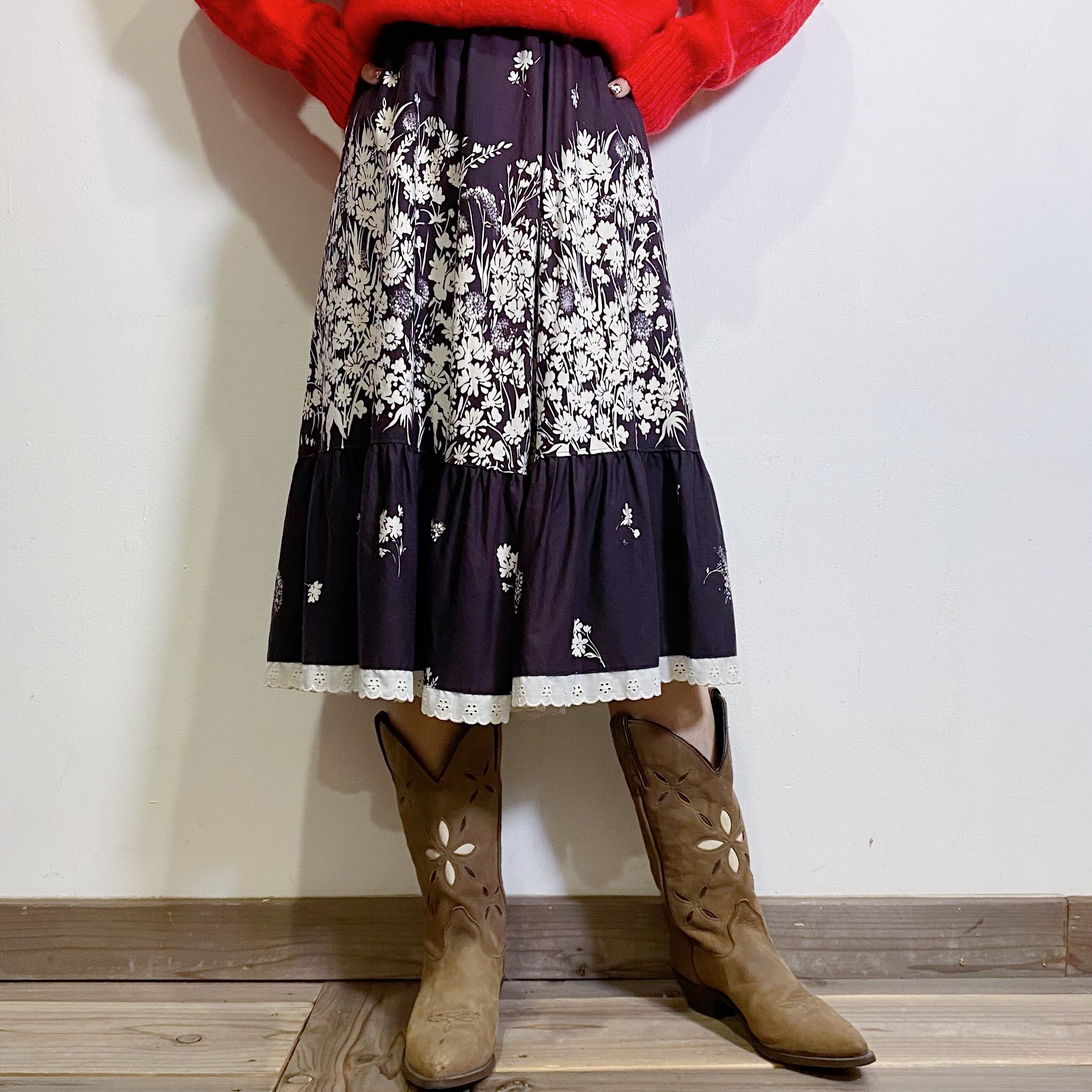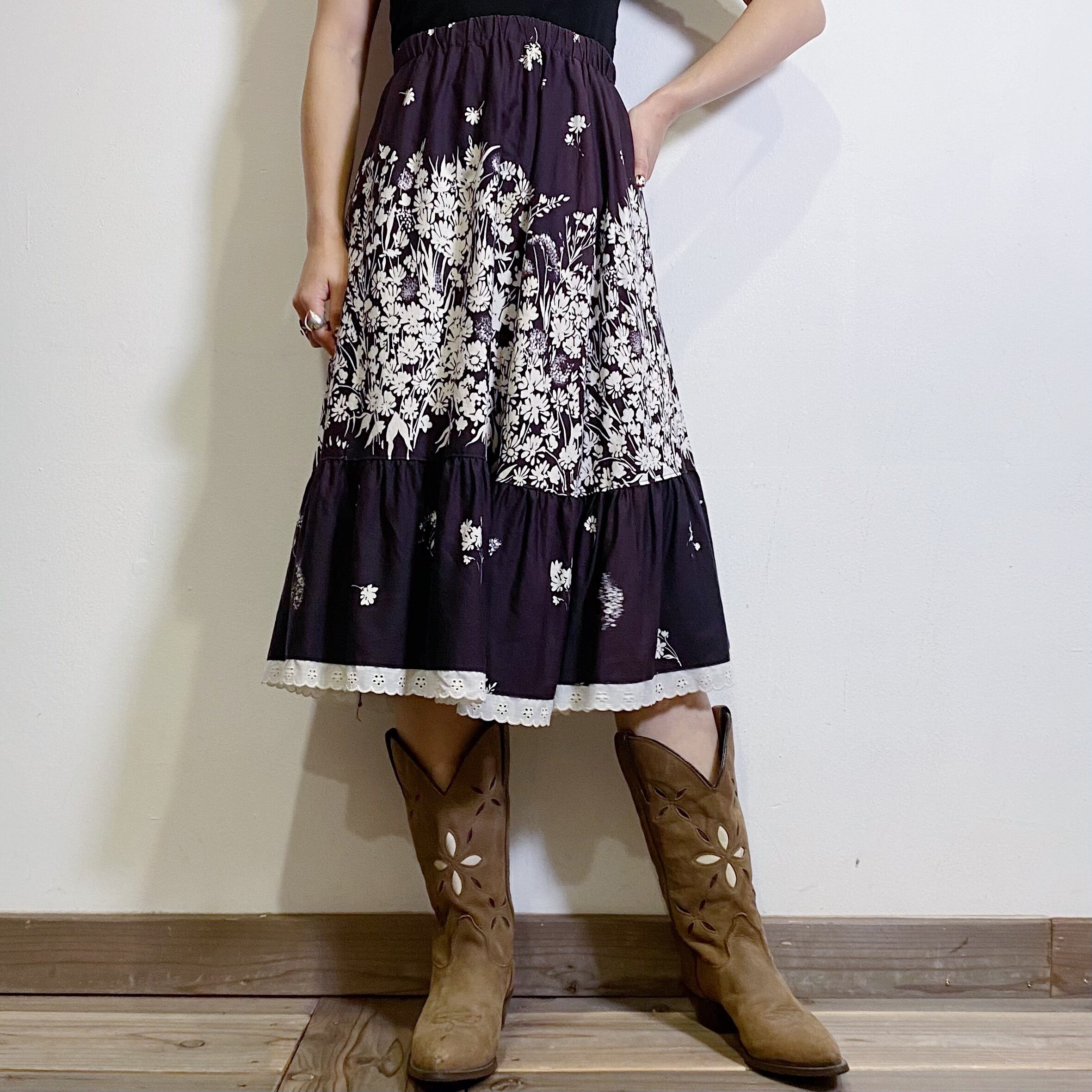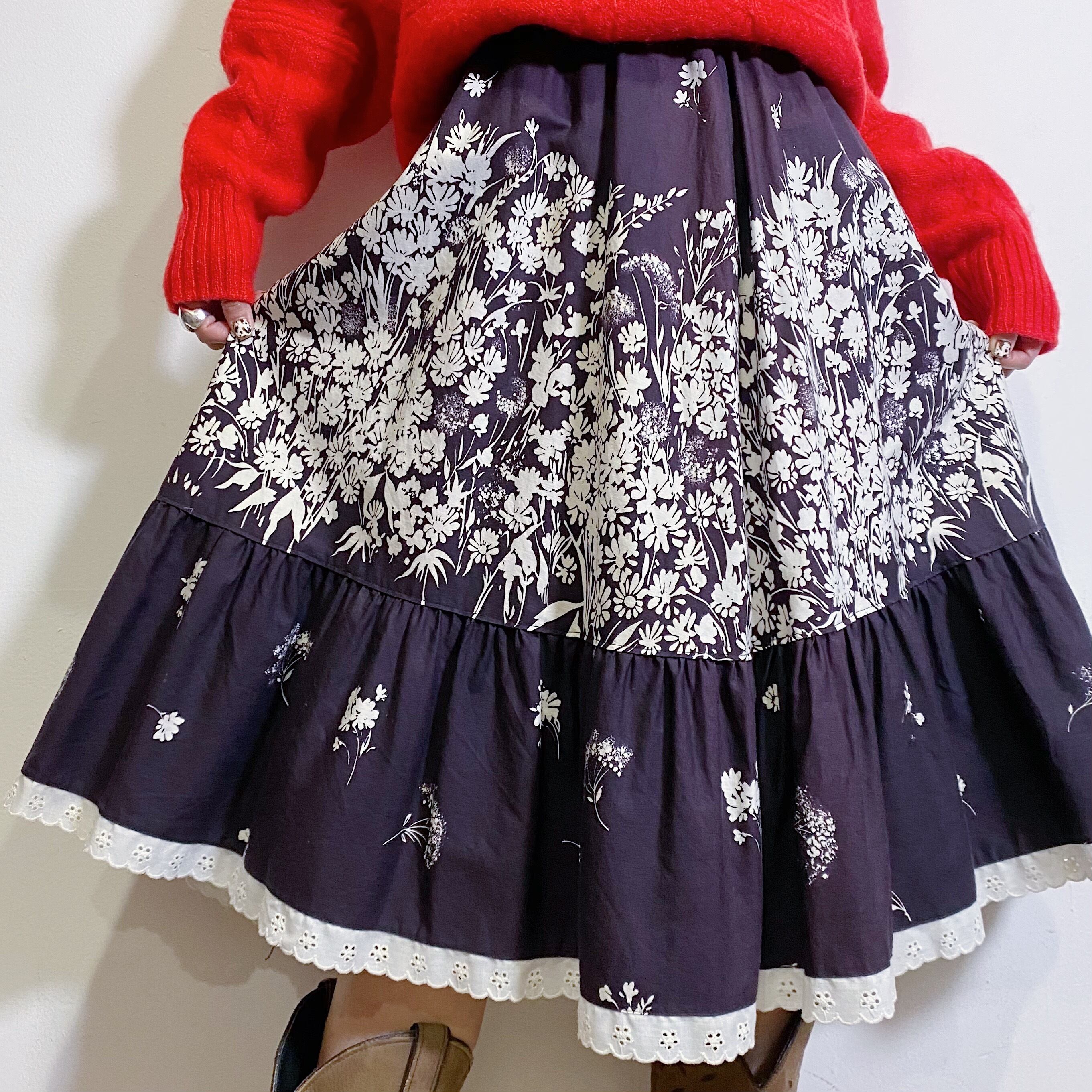 黒と白のモノトーンカラーが大人可愛い、70年代のフレアスカートです。