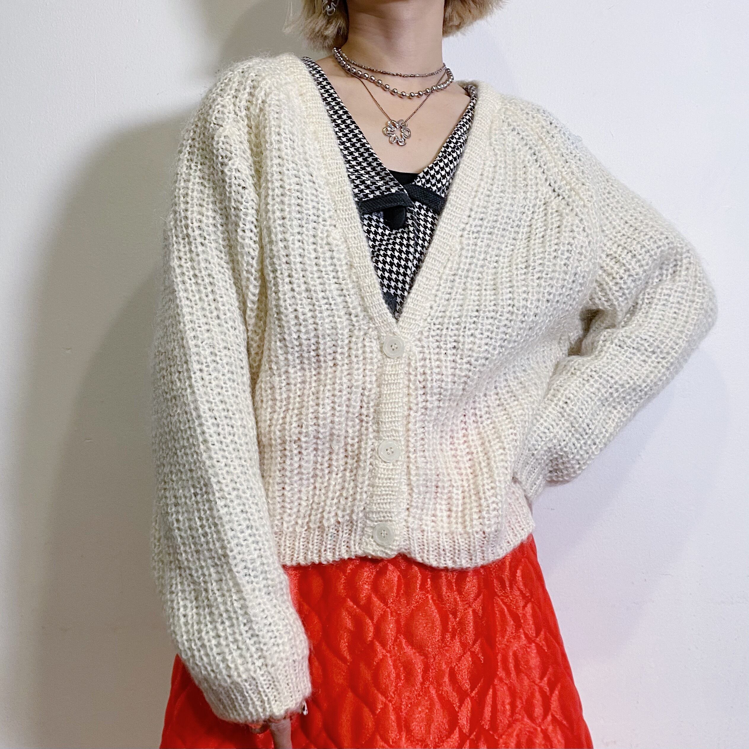 ふわふわとしたモヘア素材が可愛いカーディガンです。