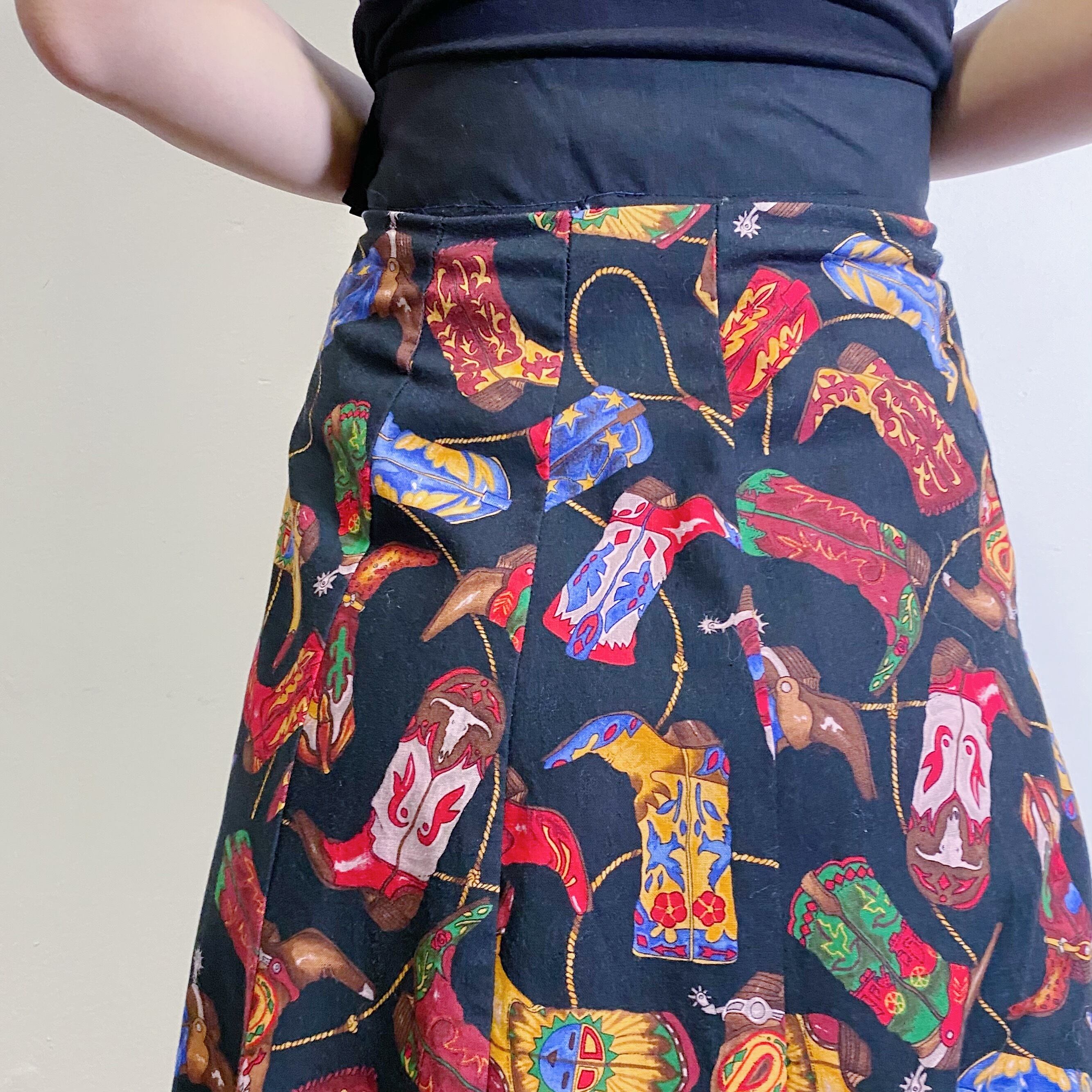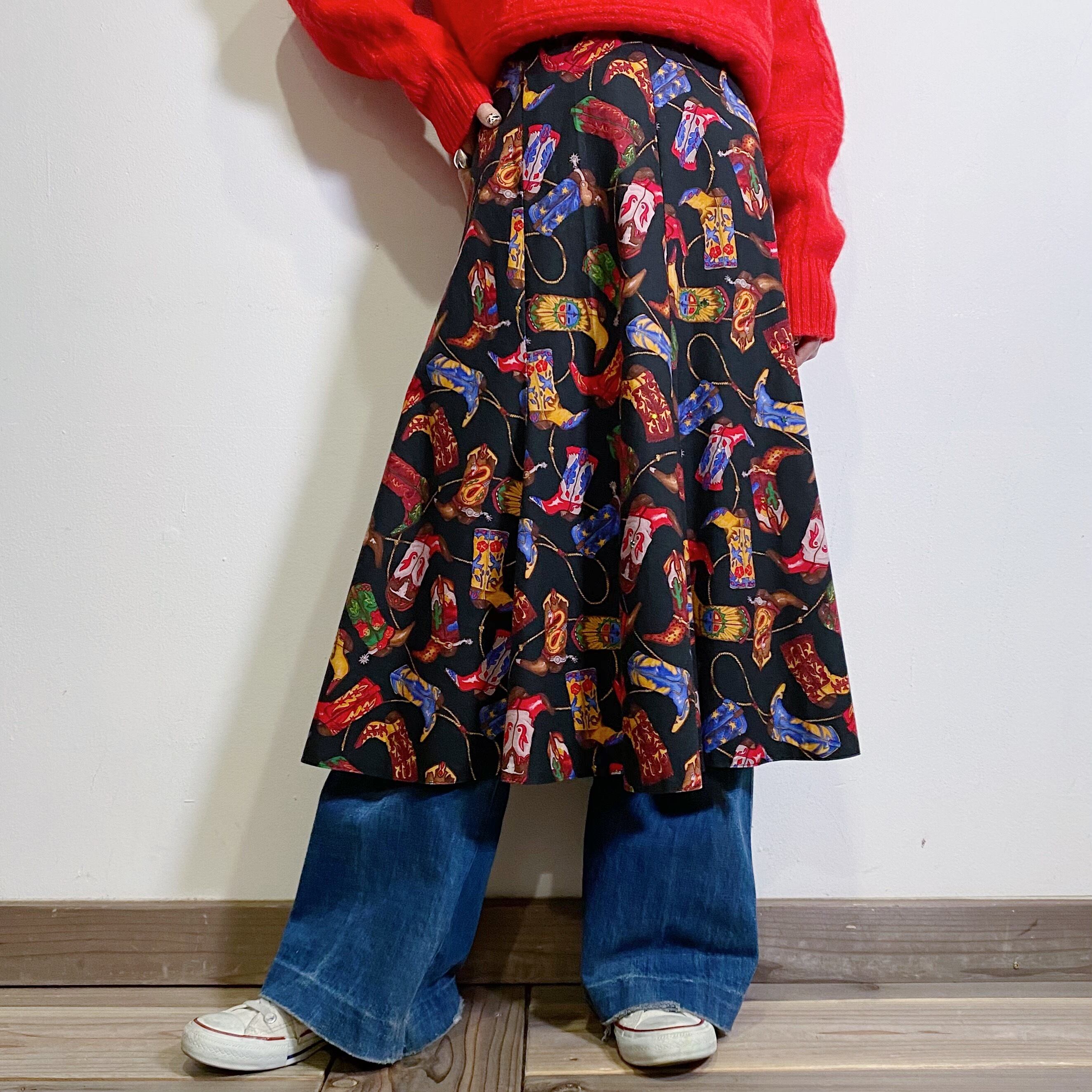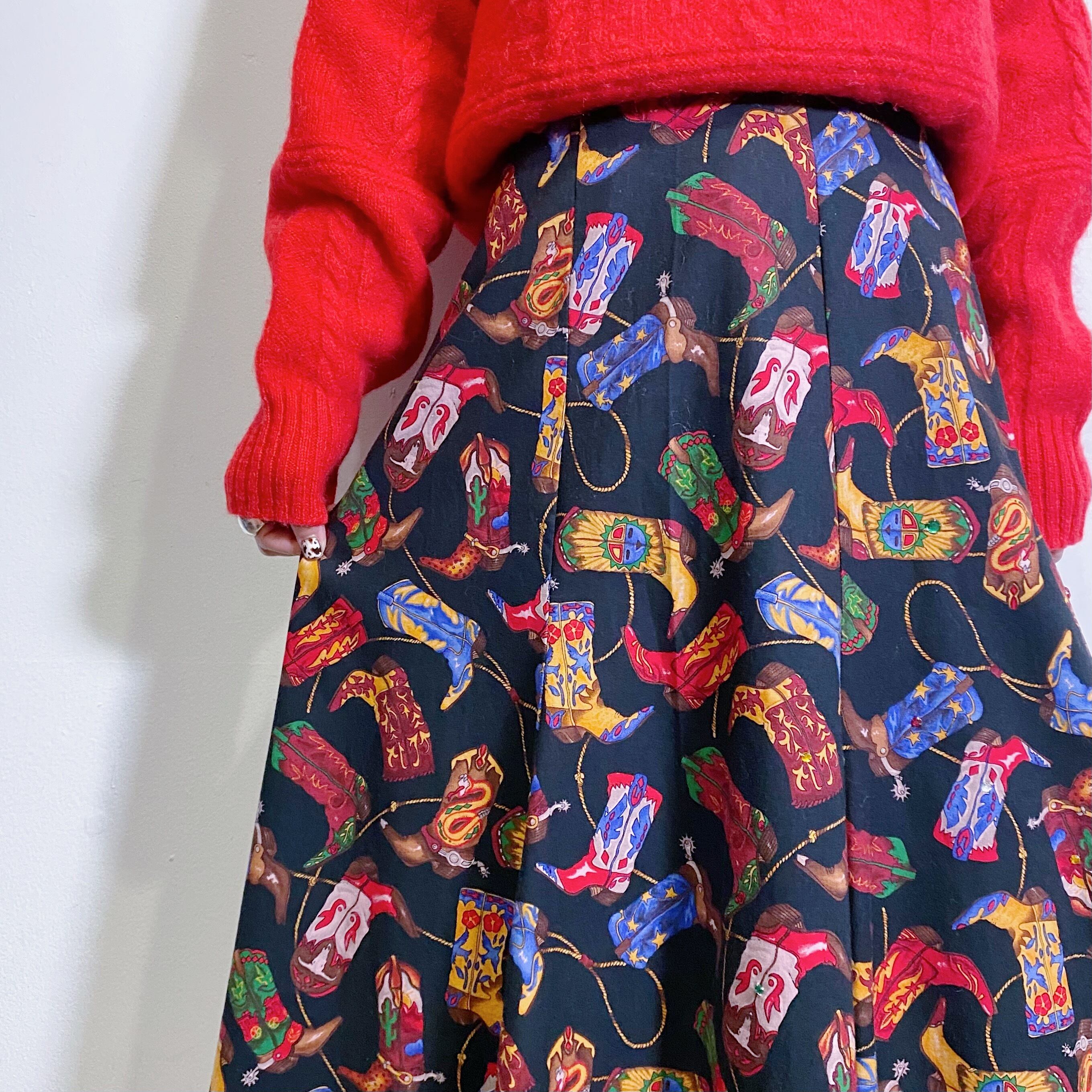 ウエスタンブーツの総柄がユニークでキュートな80年代のスカートです。