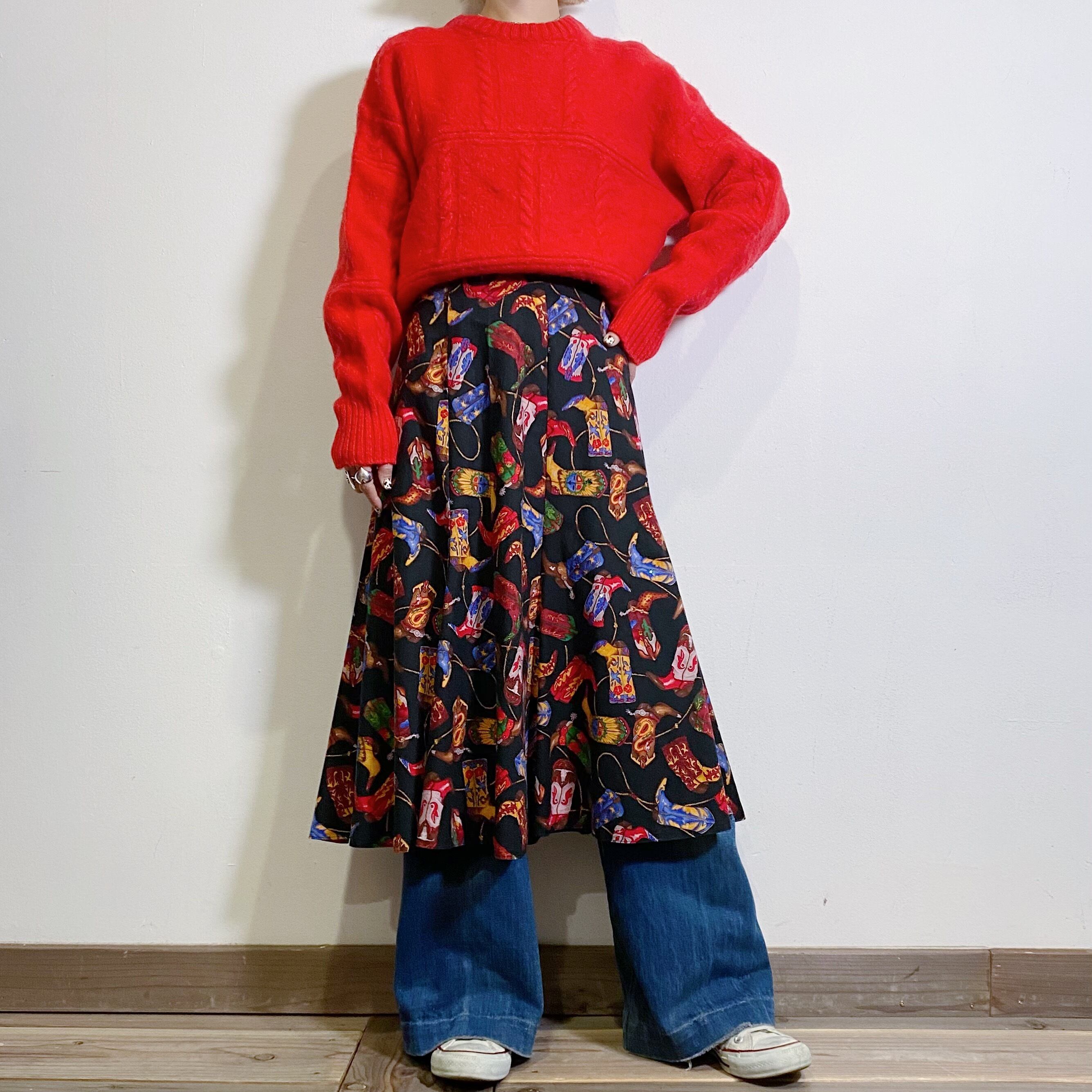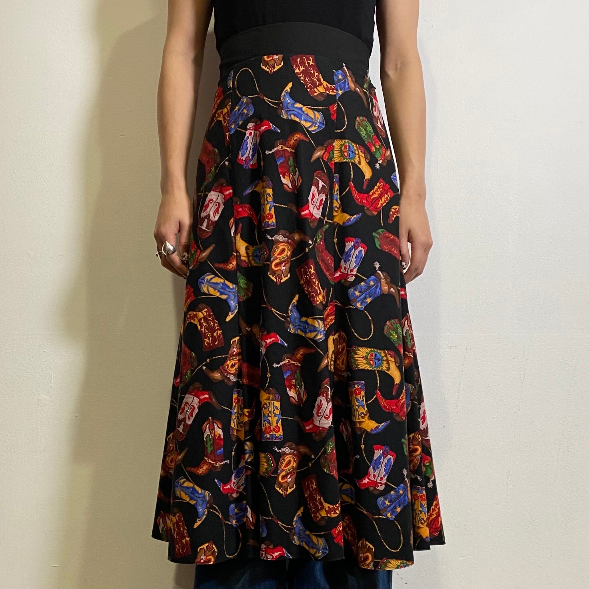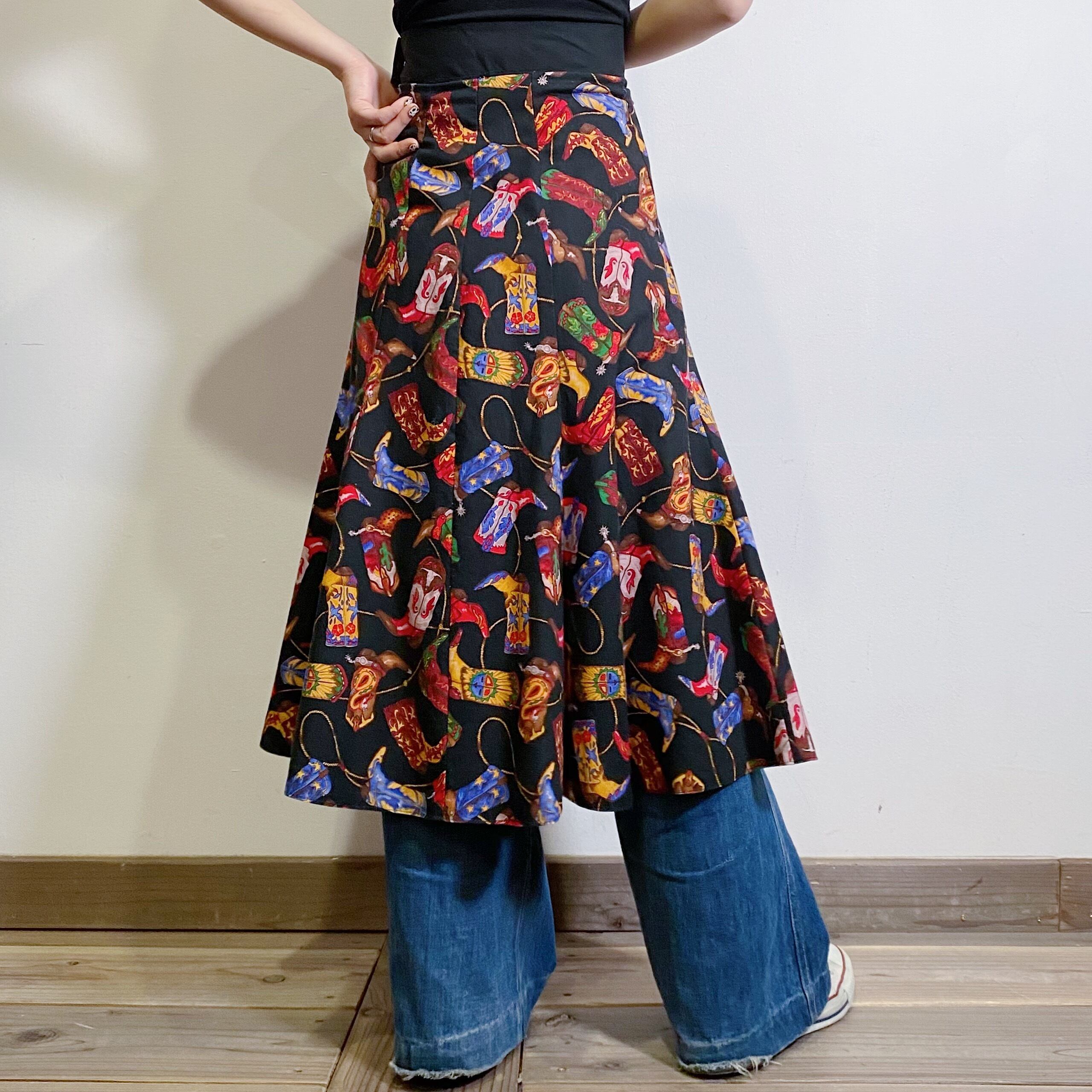 ウエスタンブーツの総柄がユニークでキュートな80年代のスカートです。