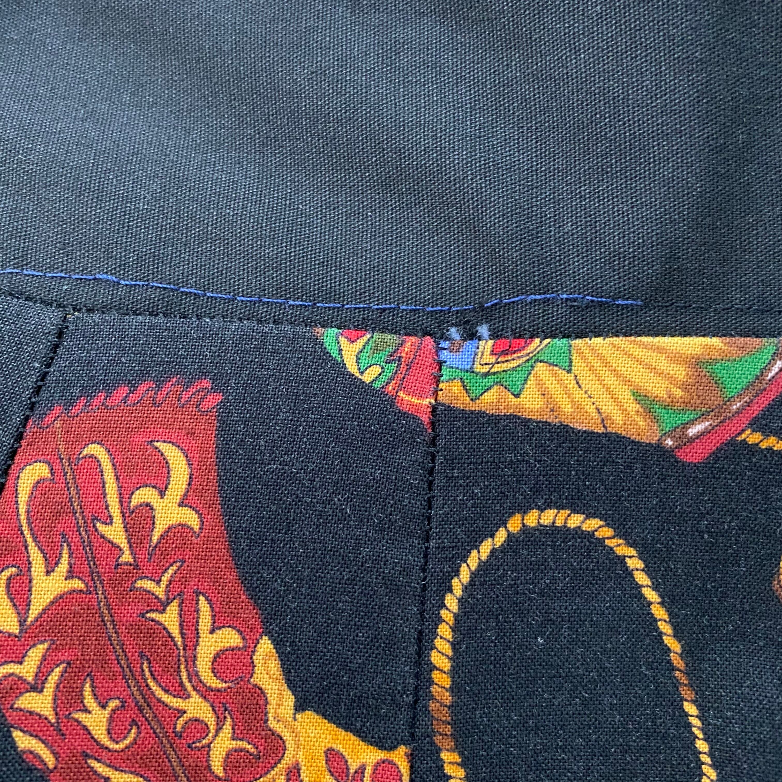 ウエストのホツレを紺色の糸でお直しした跡が見受けられますが、馴染んでおりほぼ目立ちません。