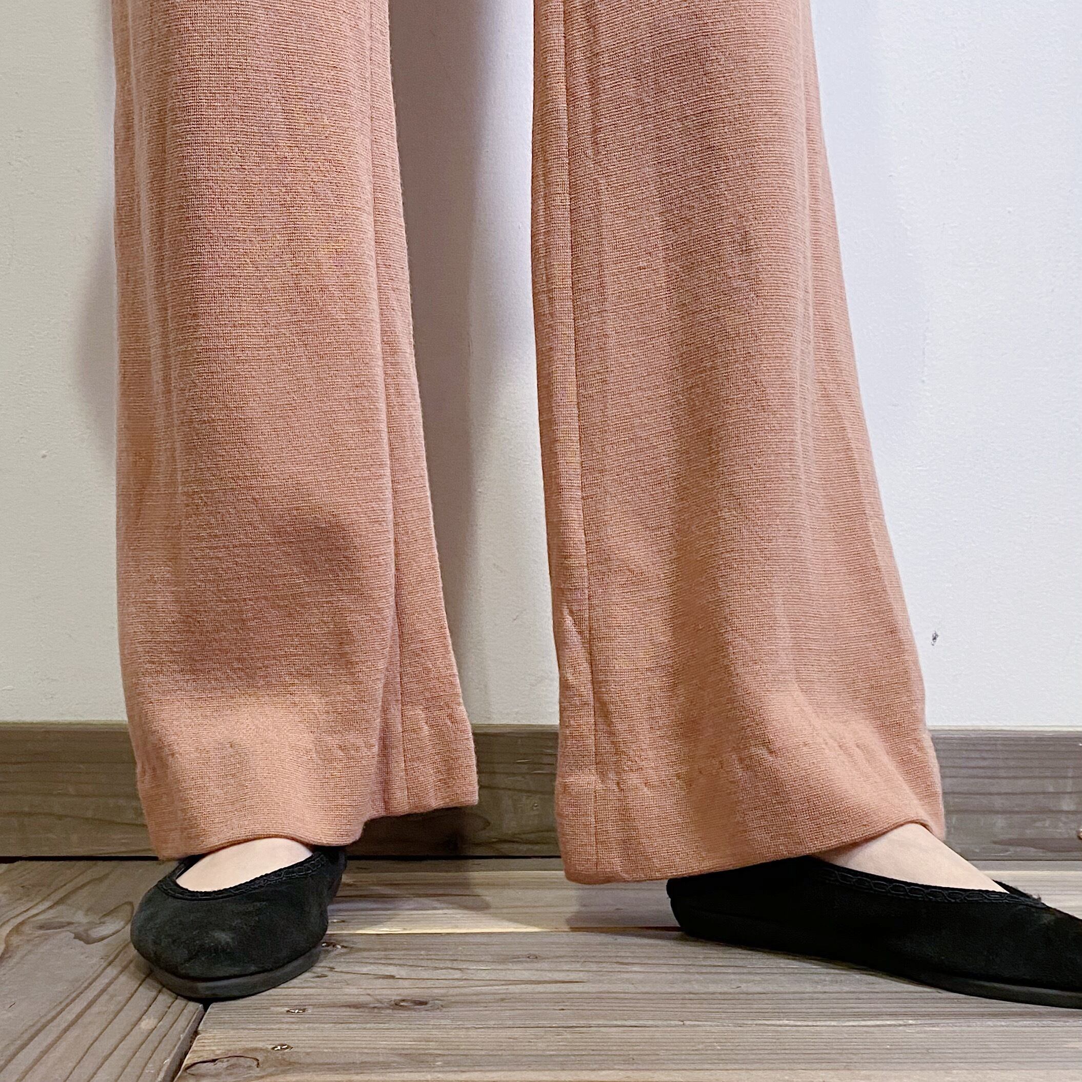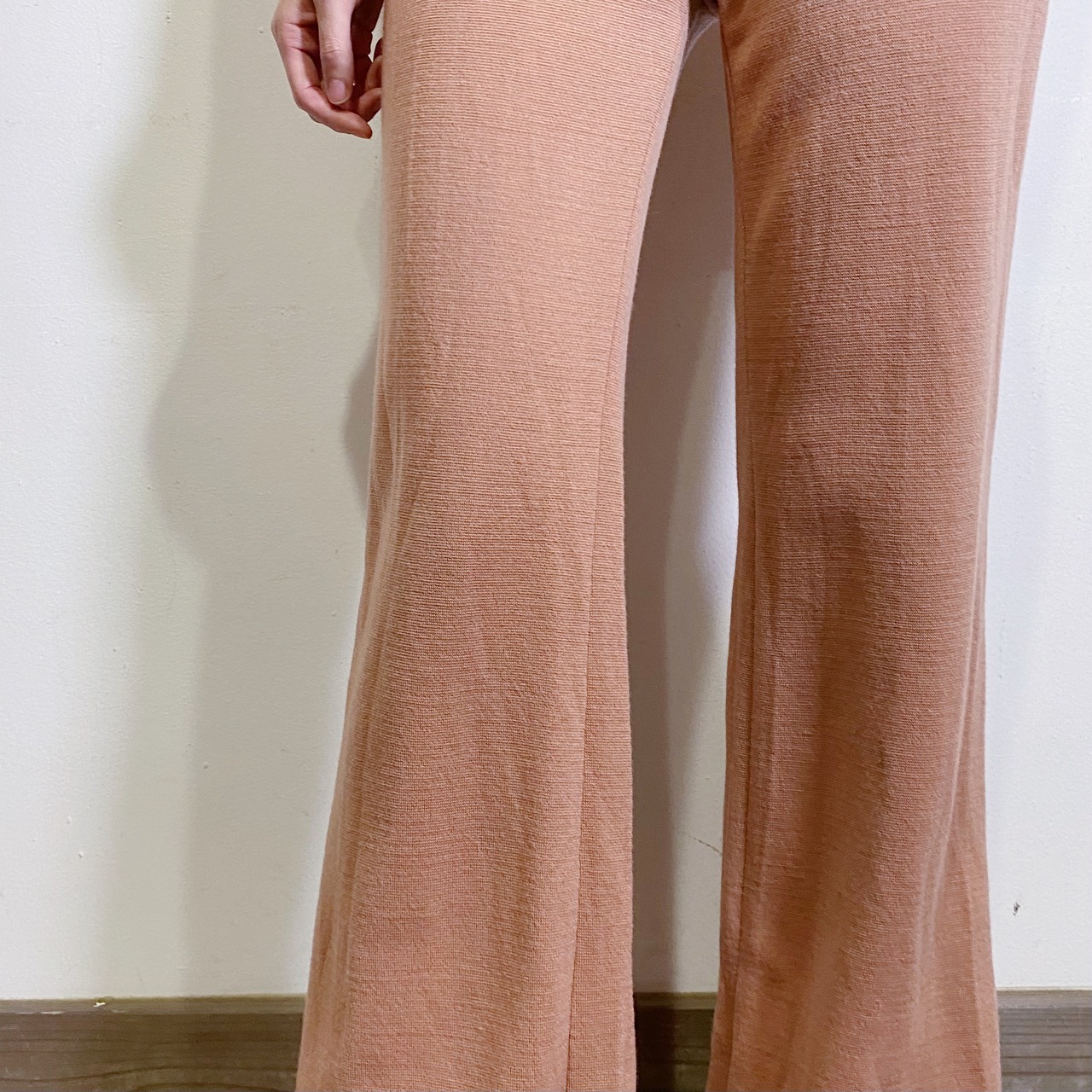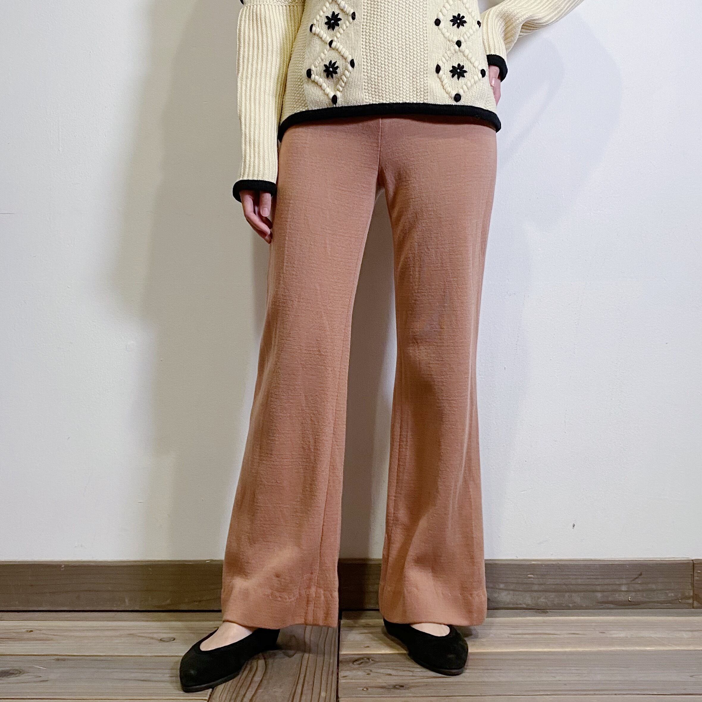 シルエットの綺麗さと、オレンジブラウンのような色味が魅力のニットパンツです。