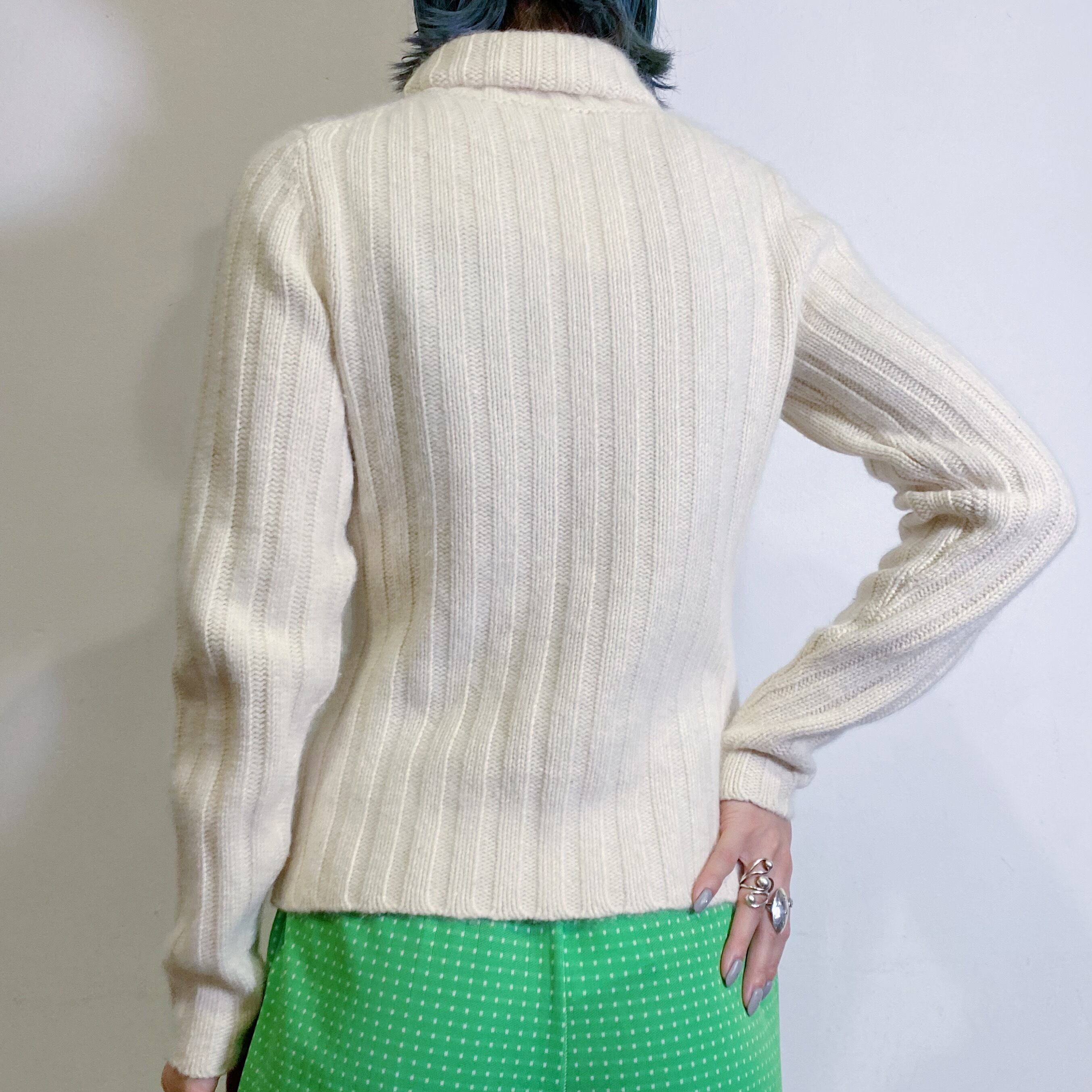 アンゴラファー特有のふわふわとした質感が可愛い、上質なハイネックセーターです。