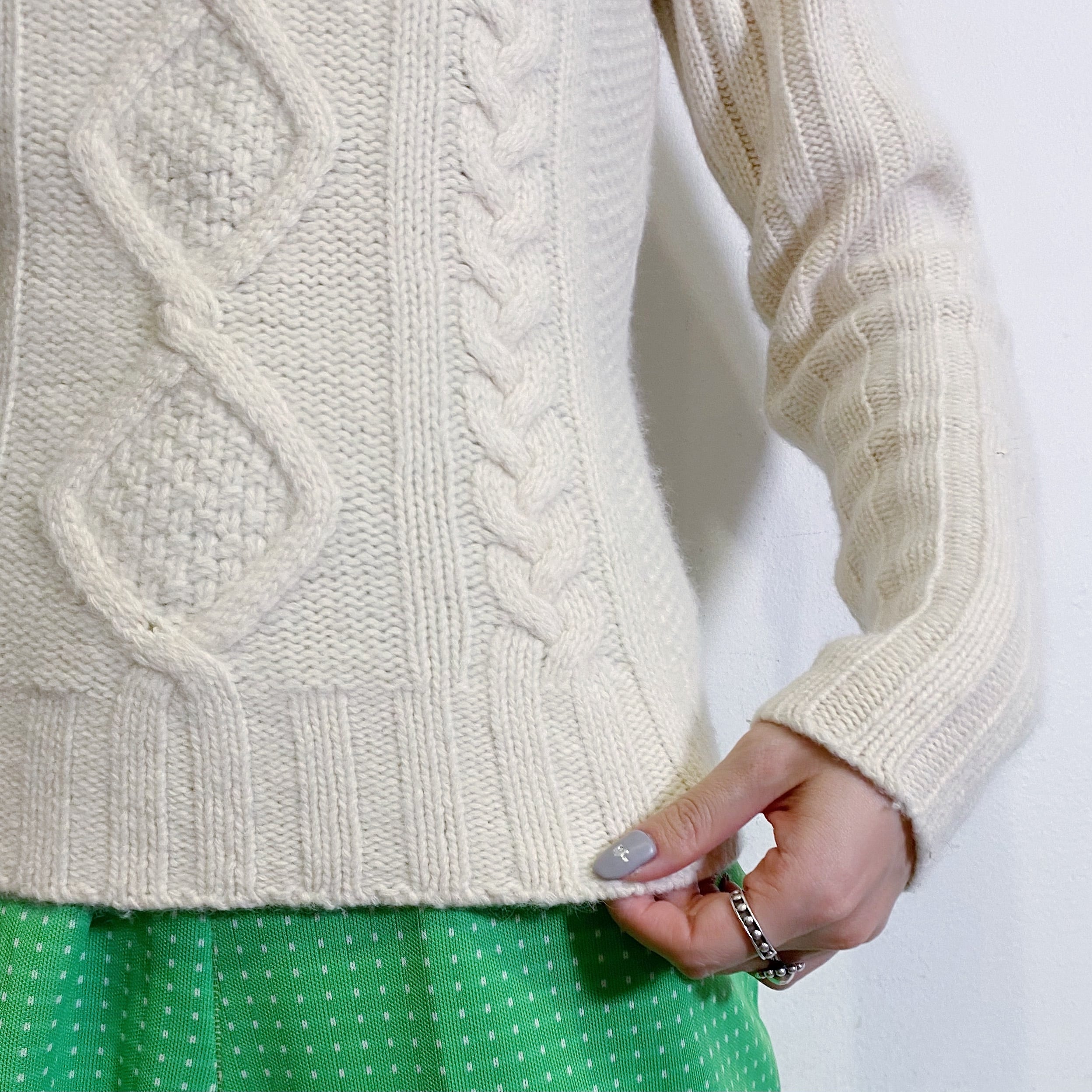 ホワイトベースでどなたでも着こなしやすく、フロントの編み目もキュートな一枚。