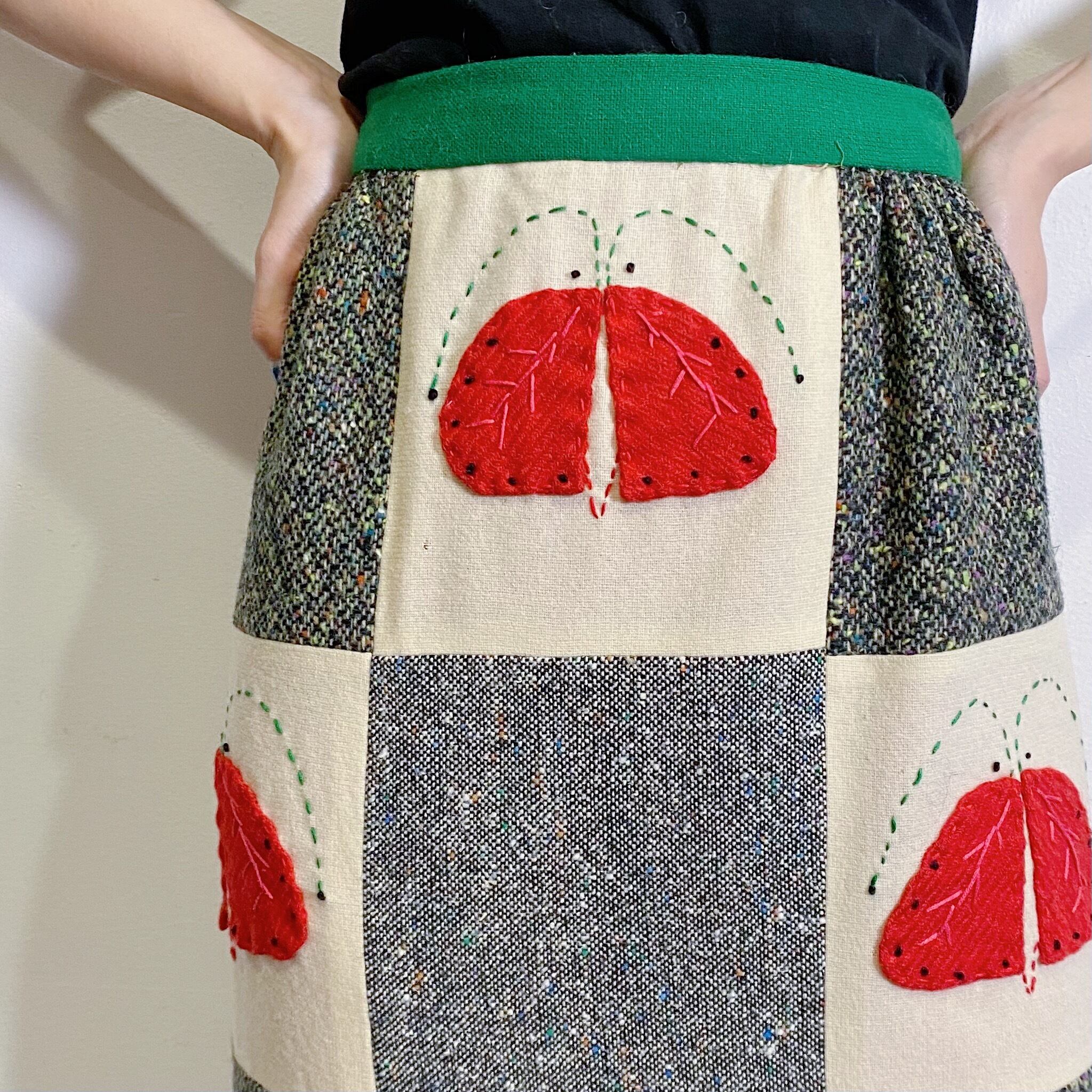 蝶々のアップリケが可愛い、40年代の生地を使って70年代に制作されたスカートです。