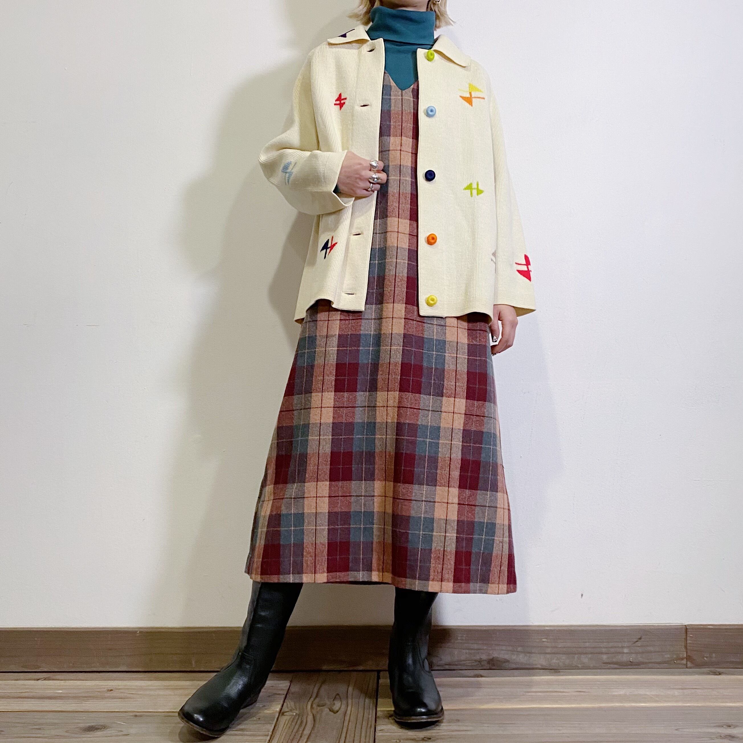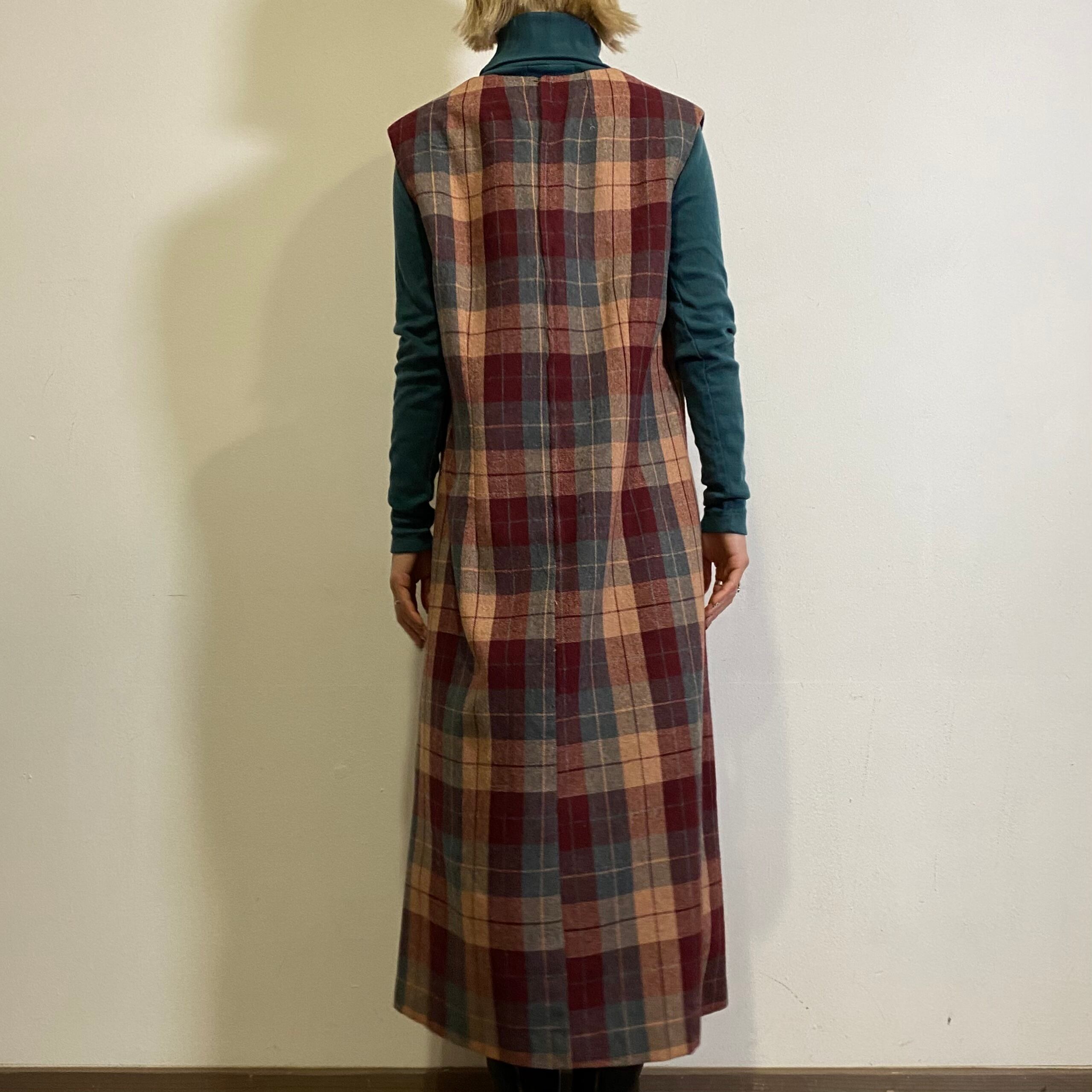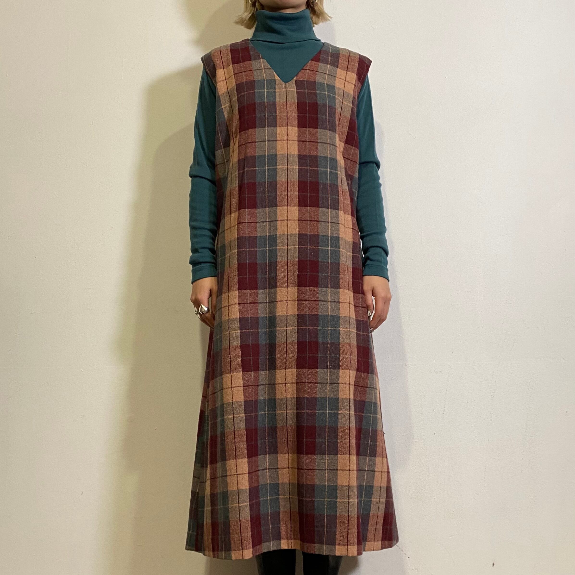 70s wool plaid jumper dress