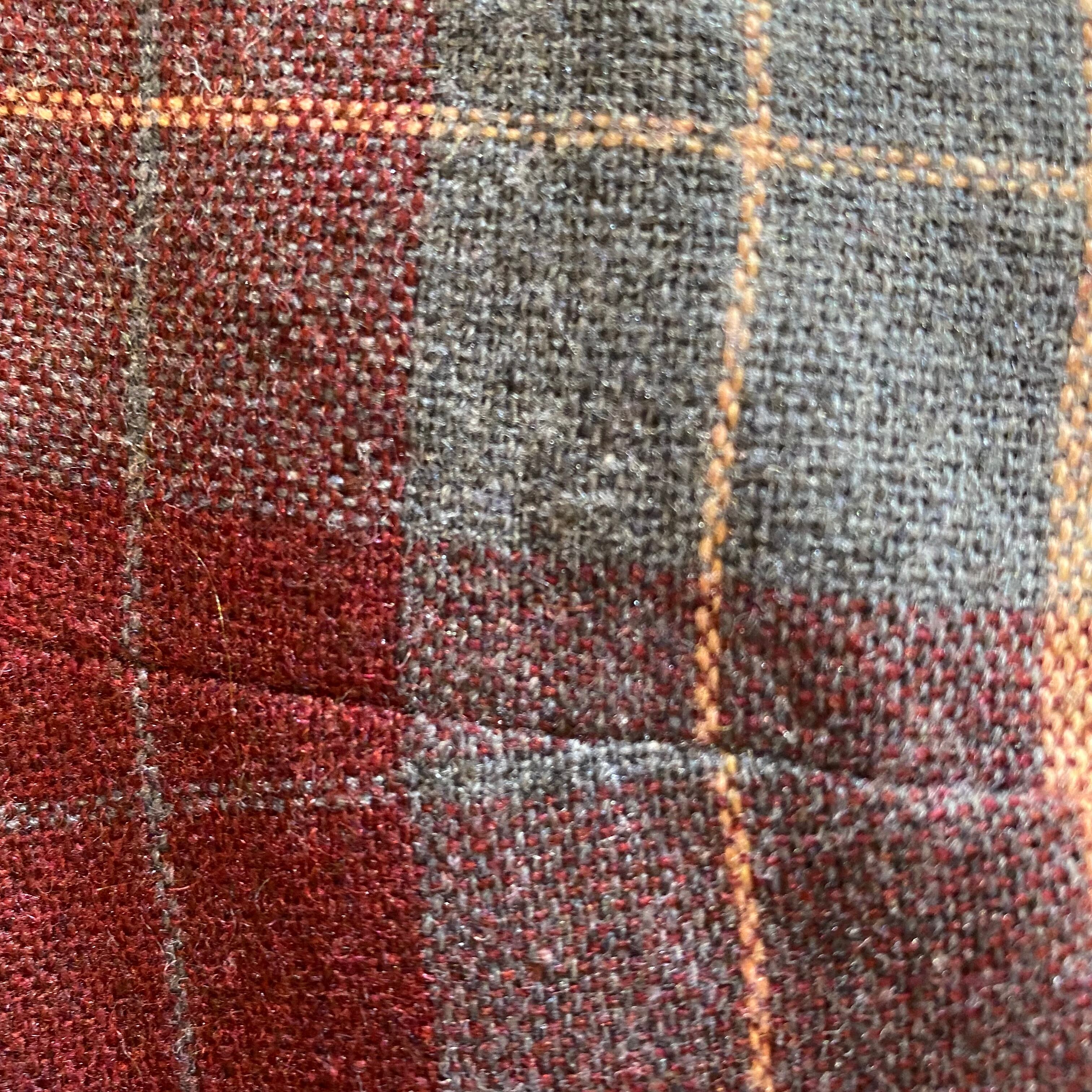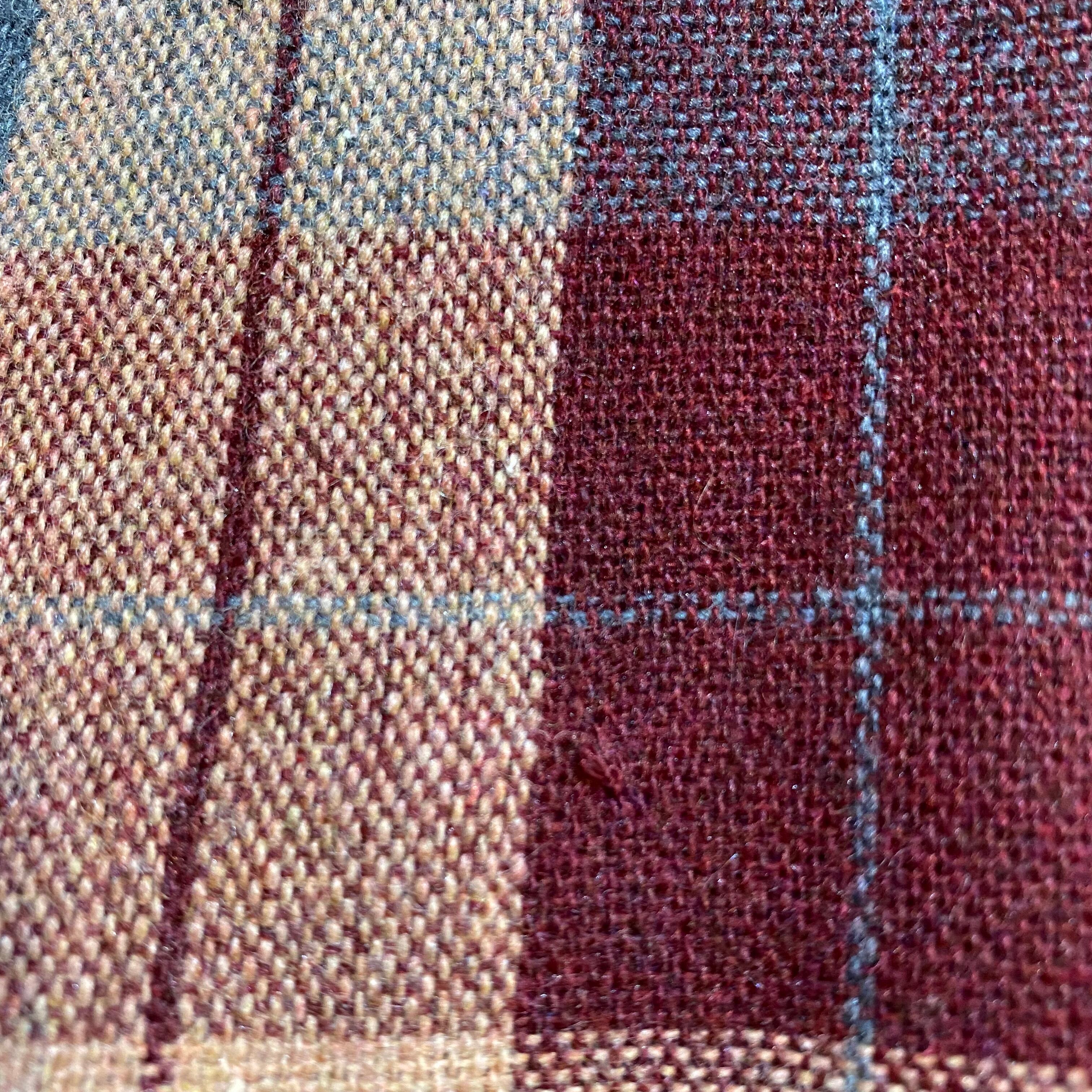 ボルドーカラーやグレー、ブラウンの色合いのチェックが可愛い、70年代のジャンパーワンピースです。