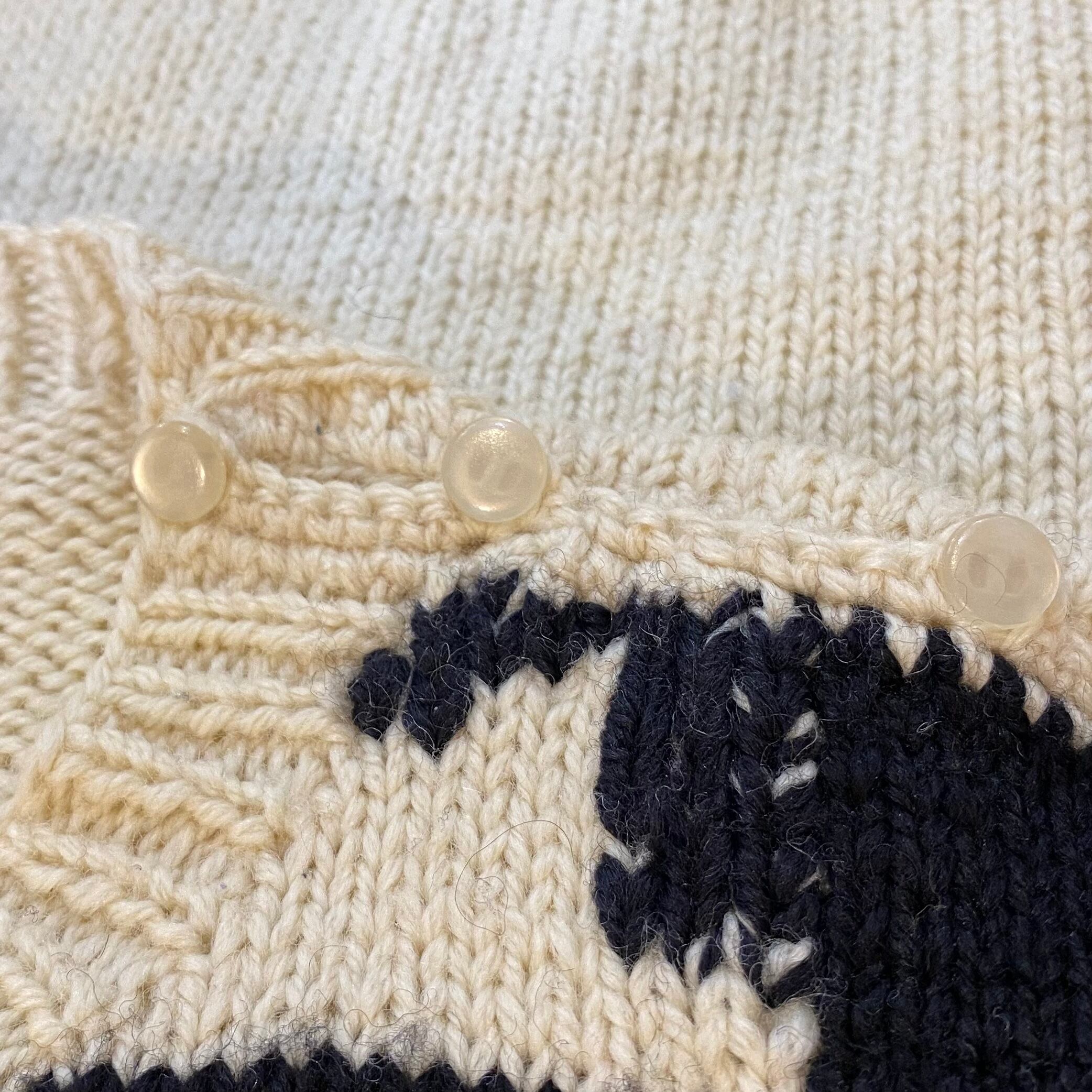 犬とハートのブロックチェックのような模様がとびきりに可愛い、ニットセーターです。