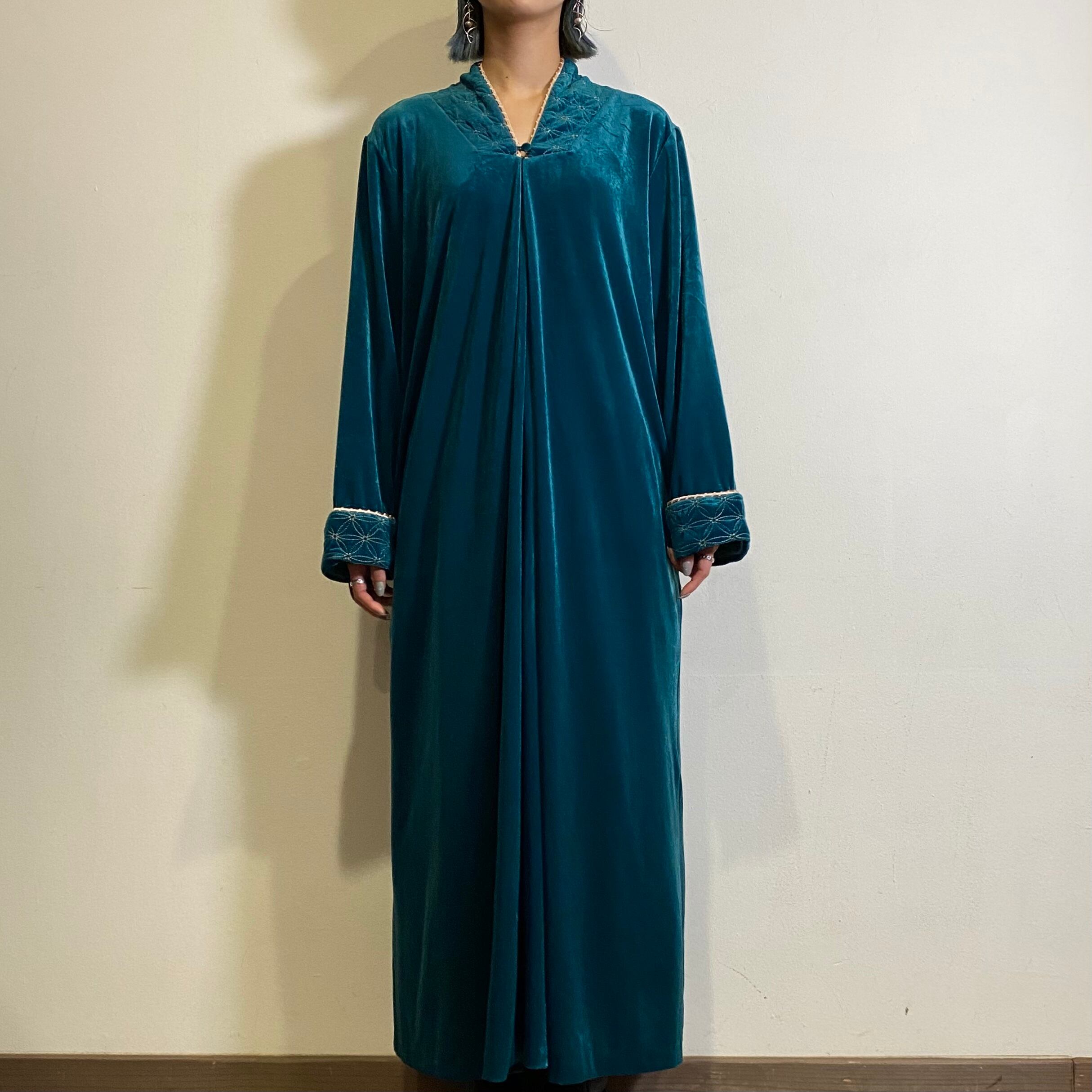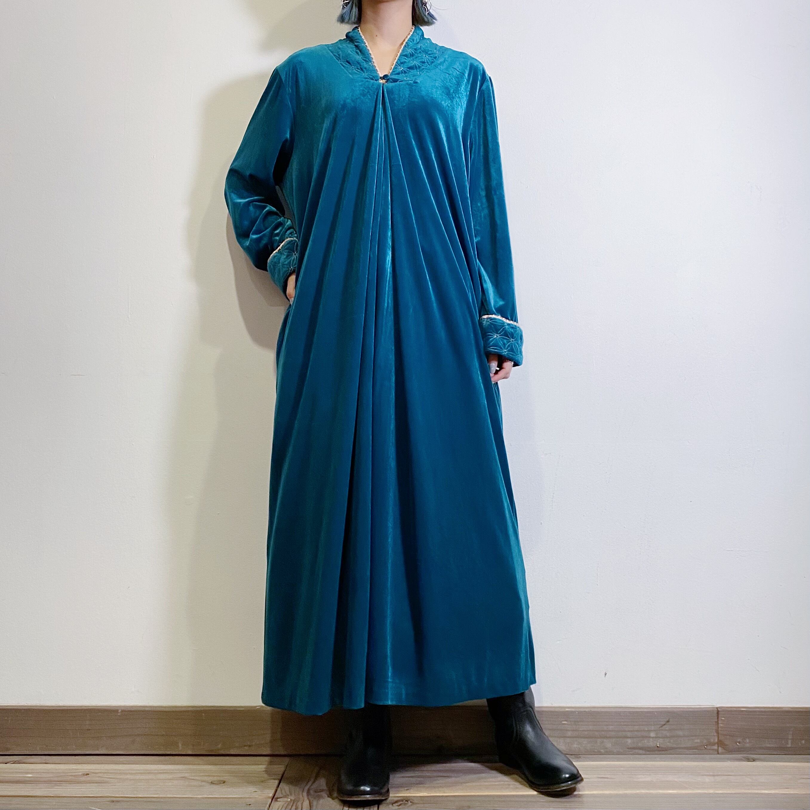 首元や手首のキルティング刺繍が可愛い、雰囲気あるベロアワンピースです。