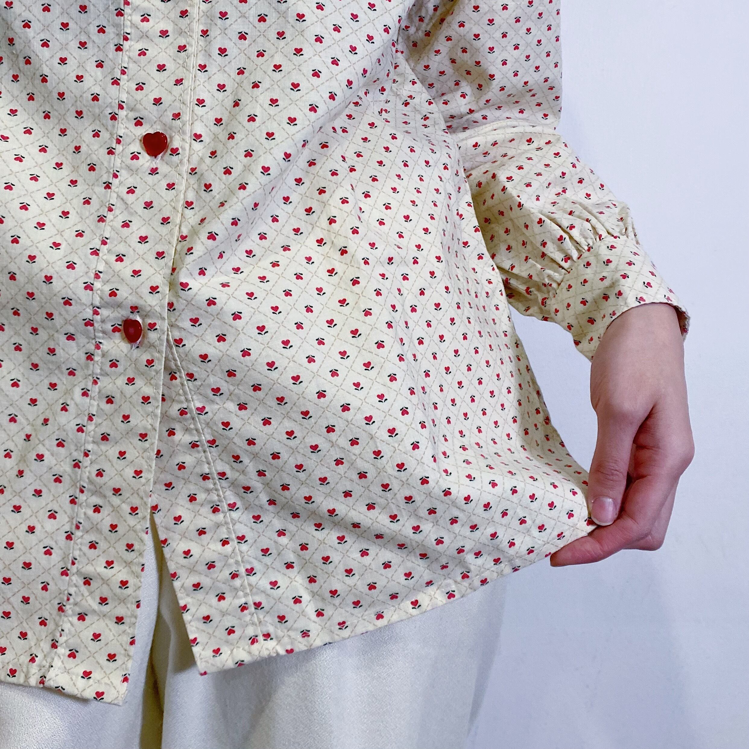 小花柄にハートのボタンが可愛い、70年代のコットンシャツです。
