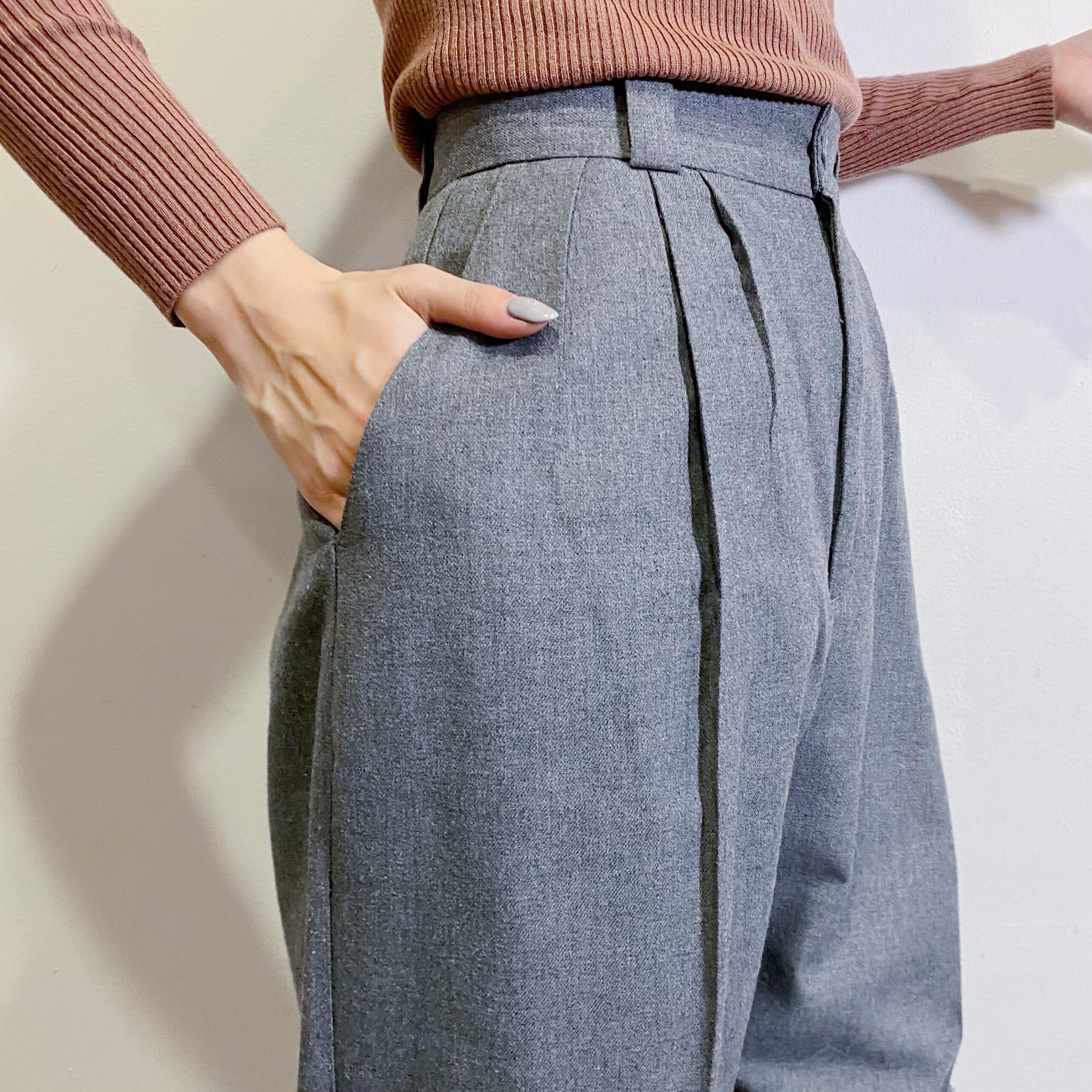 シンプルで使い勝手の良さそうな、グレーカラーのスラックスパンツです。
