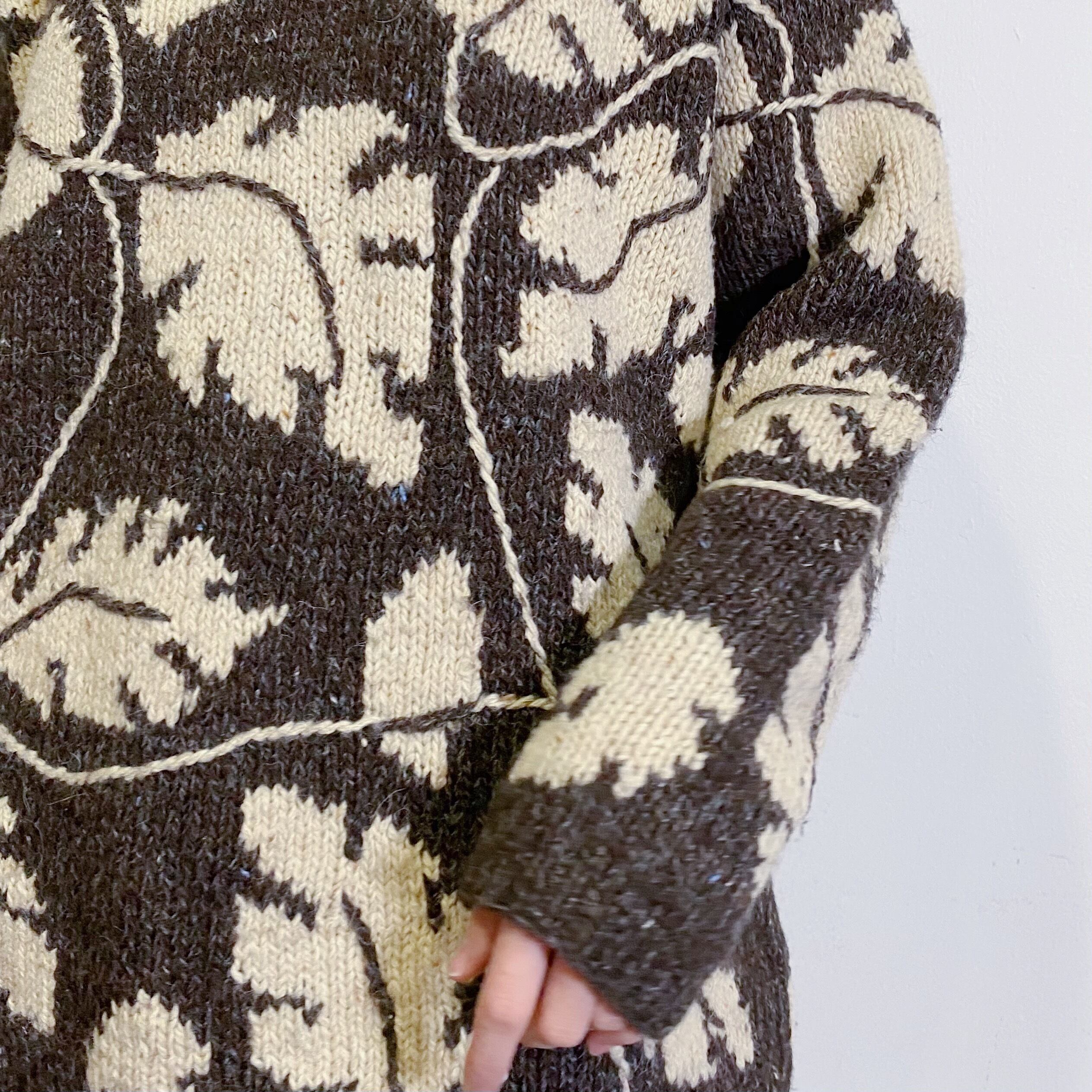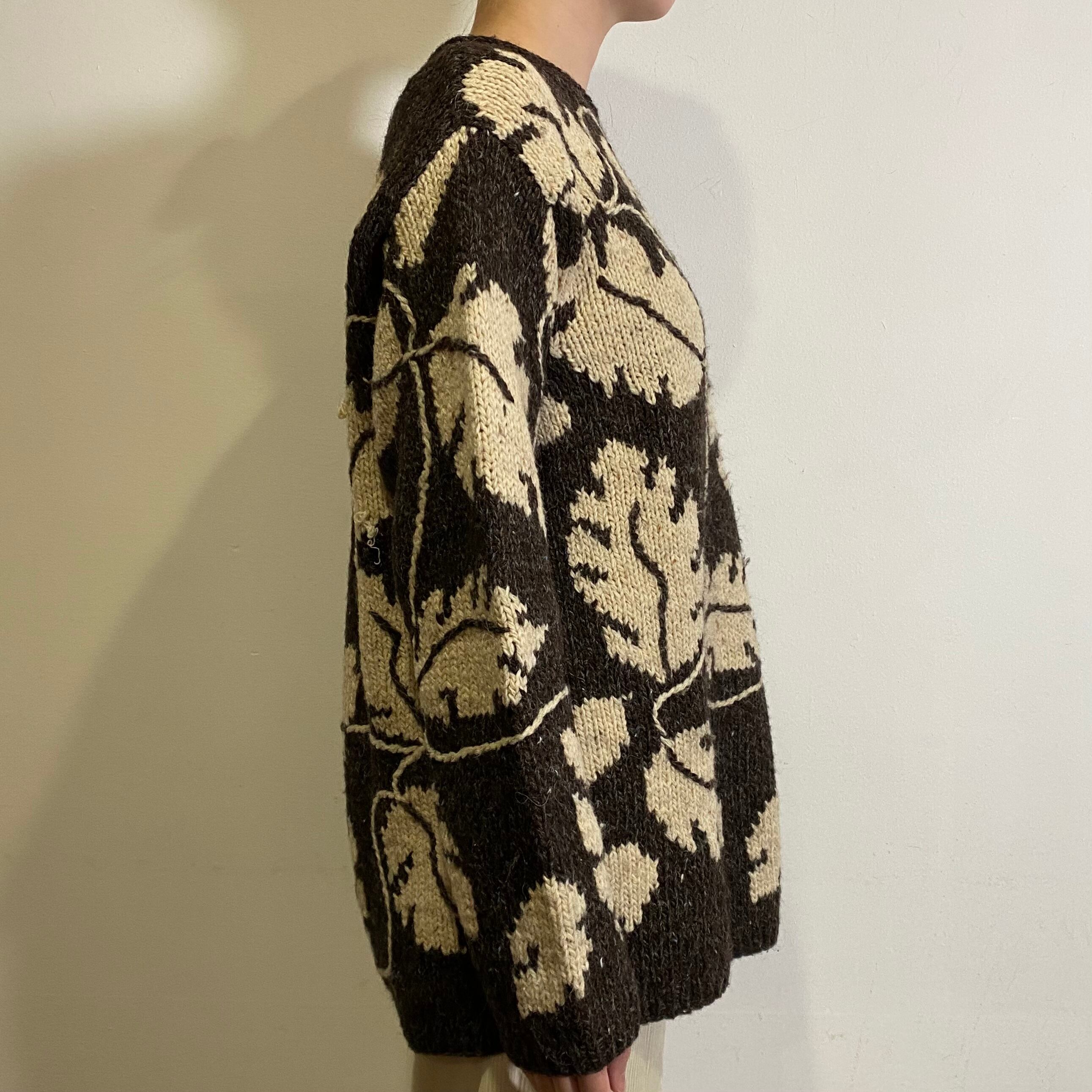 リーフの模様が全面に織られた80年代のハンドニットセーターです。