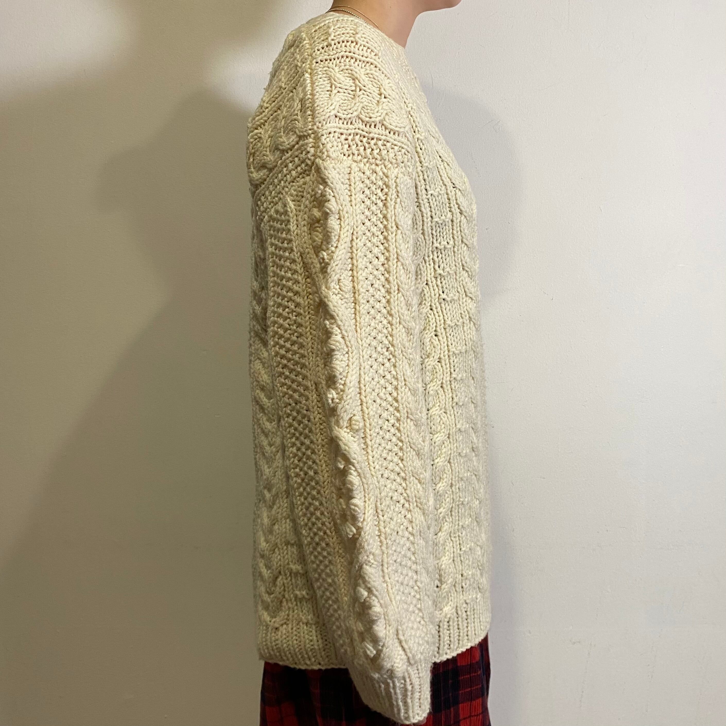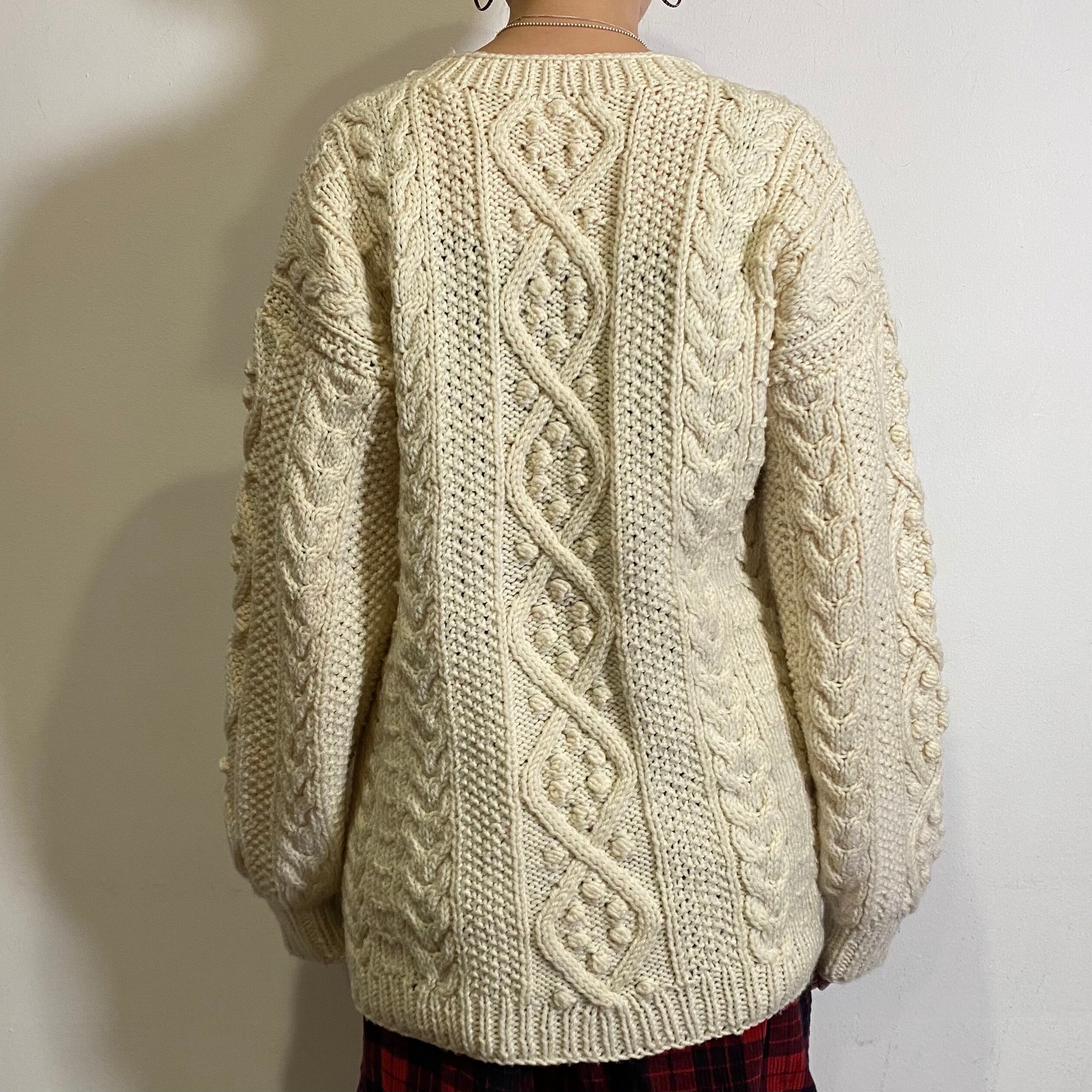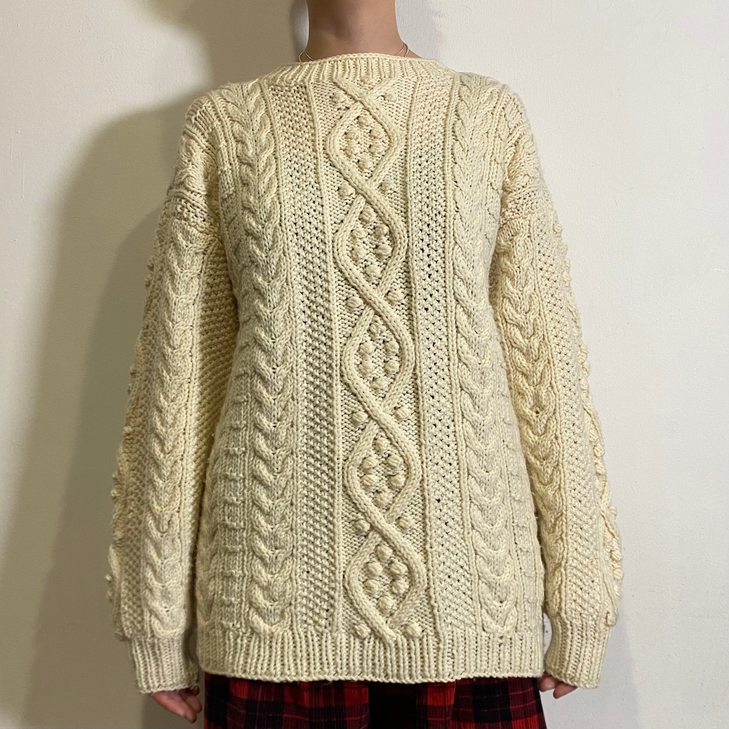 ポコポコとした編みがキュートなハンドメイドのアラン編みセーターです。