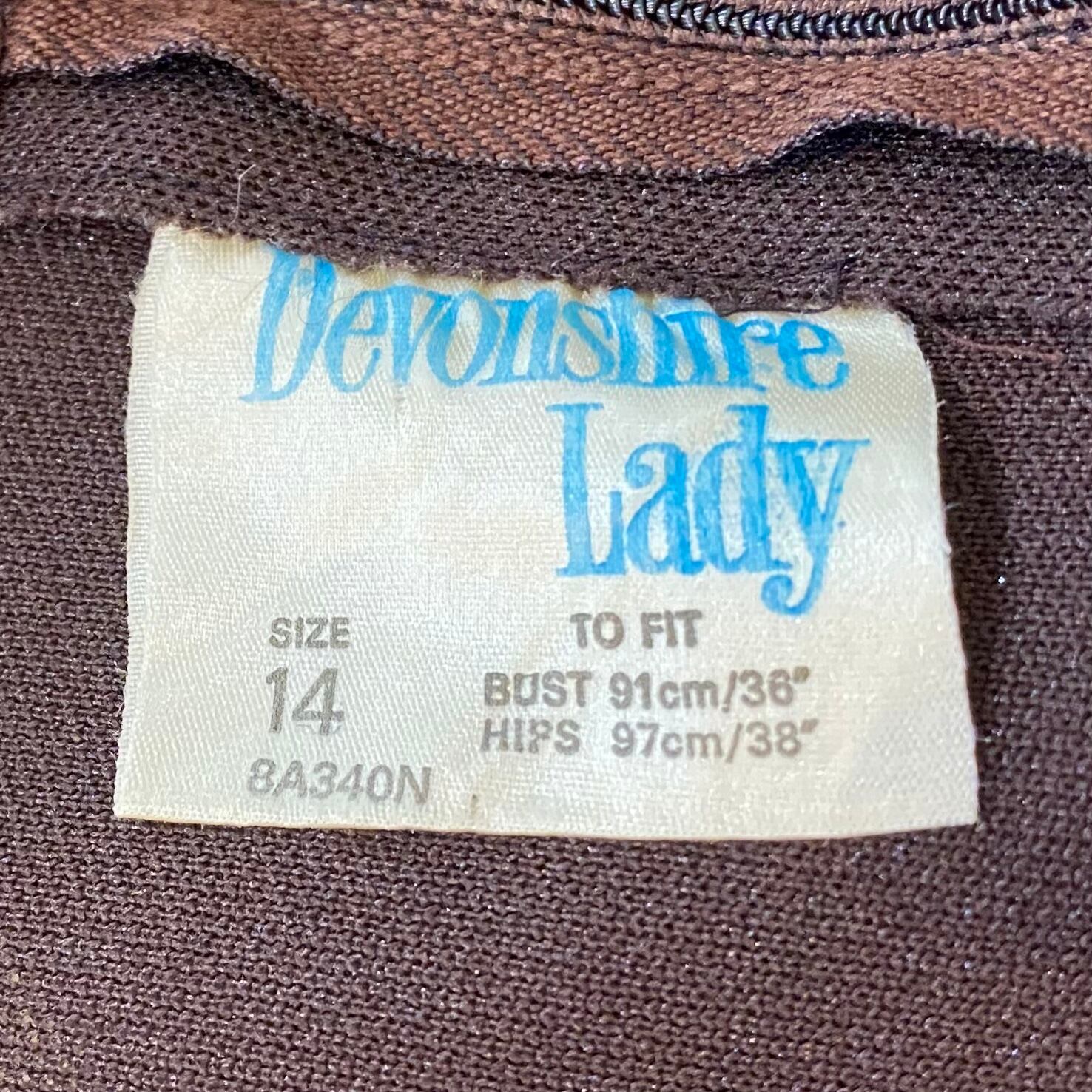 こっくりブラウンに白のレース使いが素敵な、大人可愛い70年代のワンピースです。