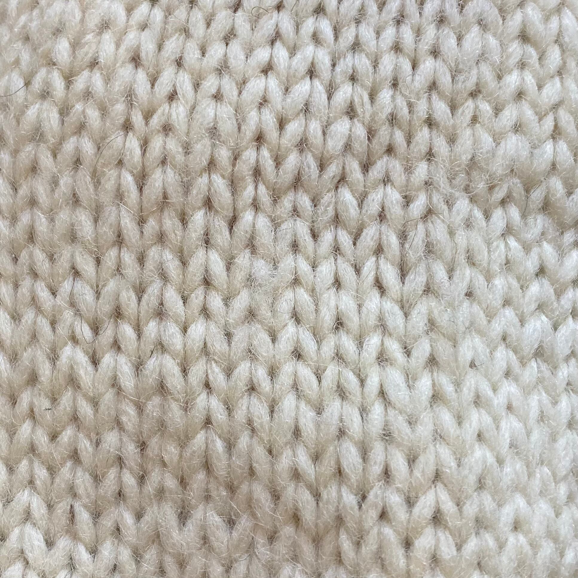 毛糸がとび出しホツレのように見える箇所や毛糸が細くなっている箇所がございますが、ここからほどけてしまう心配はなく見た目にもほぼ目立ちません。