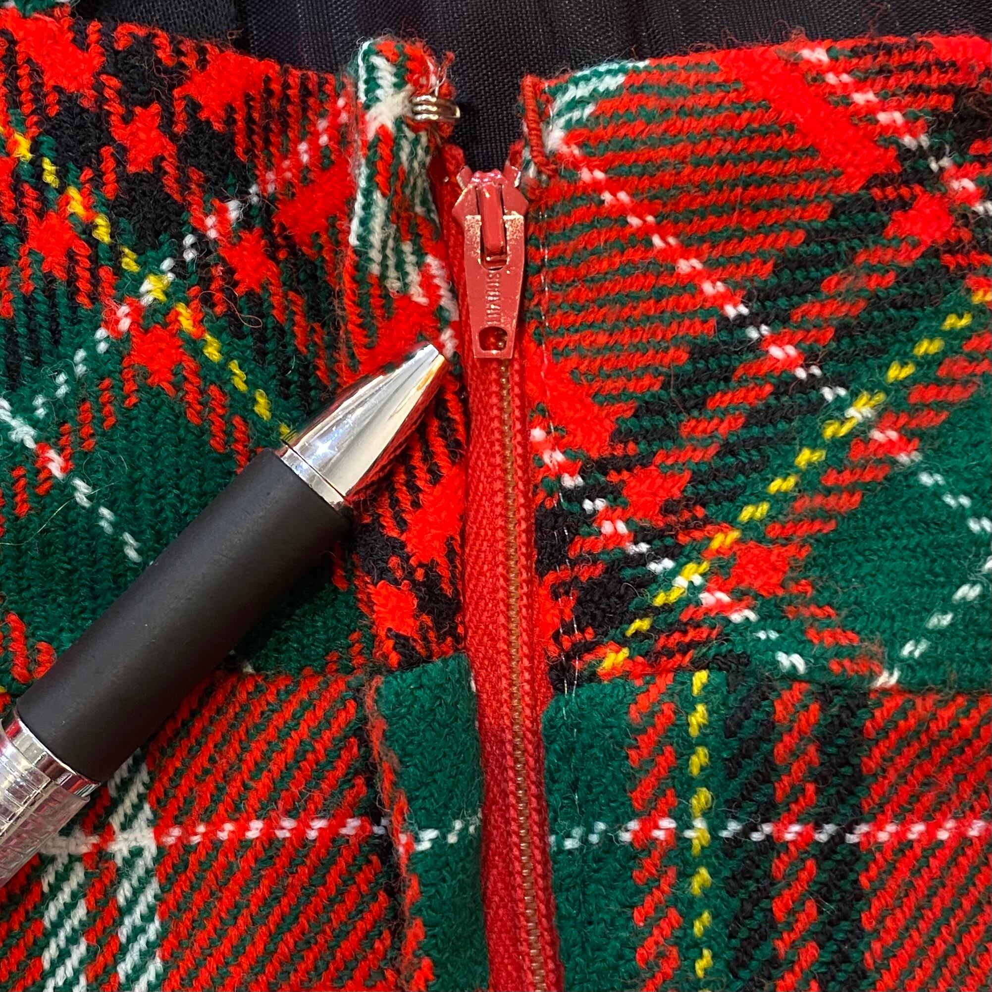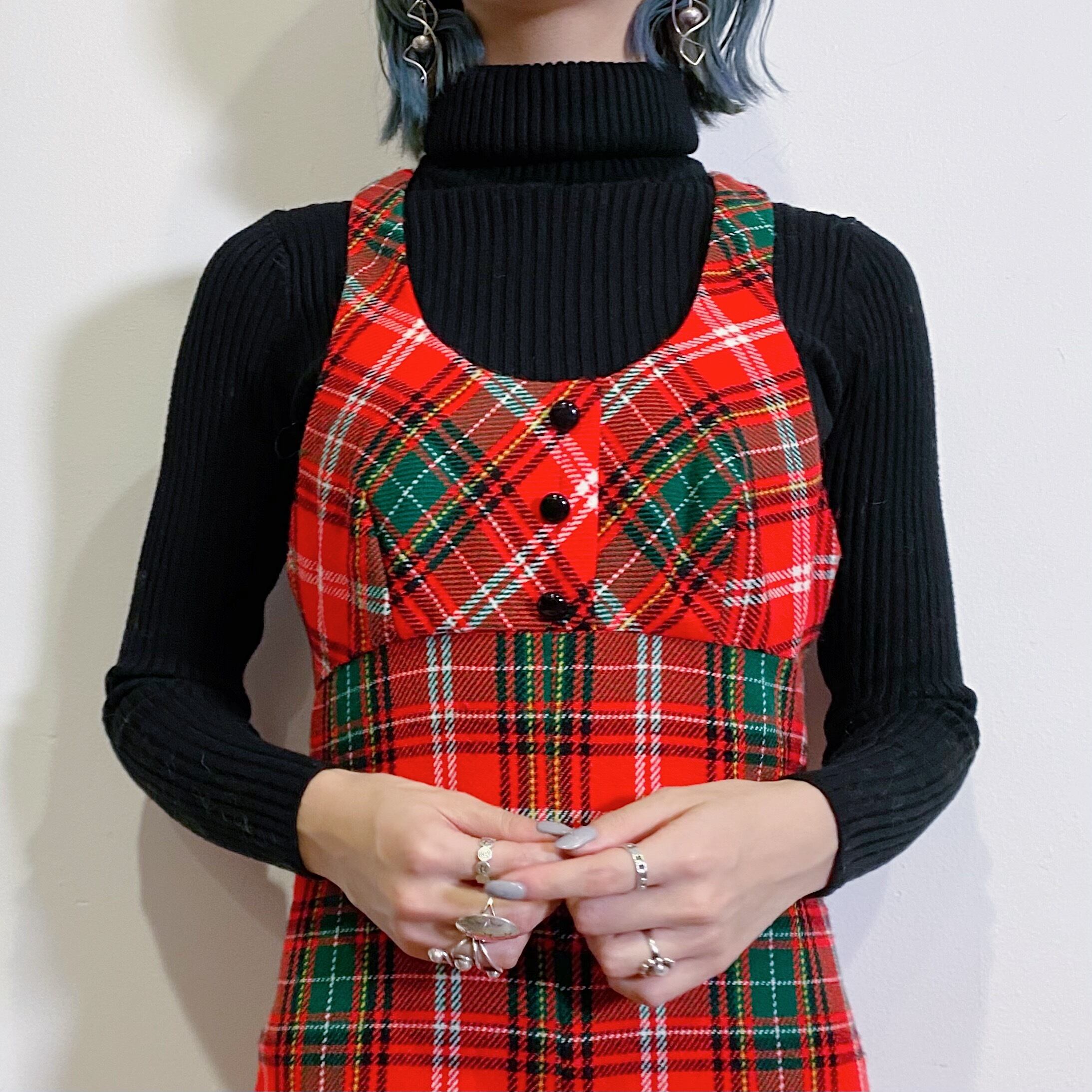 レッドとグリーンの色合いが可愛い、タータンチェックの80年代のジャンプスーツです。