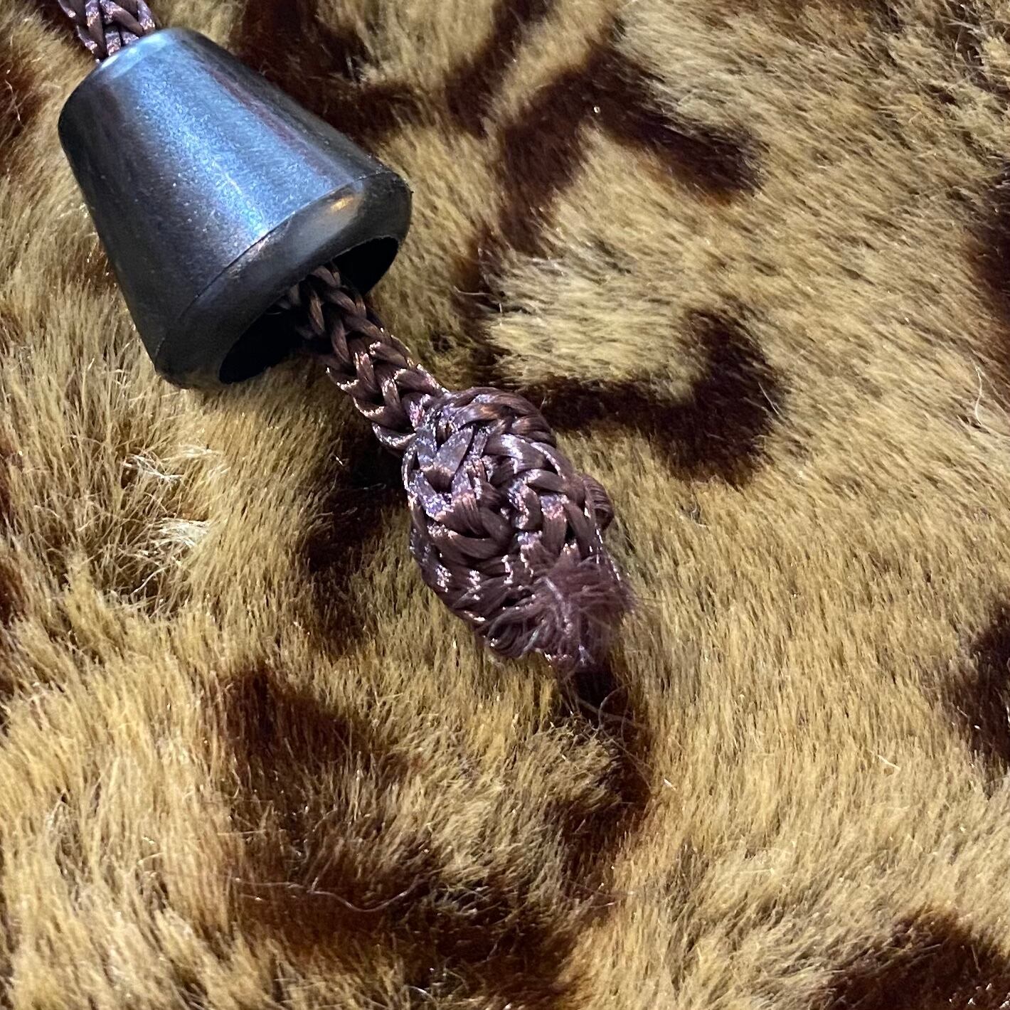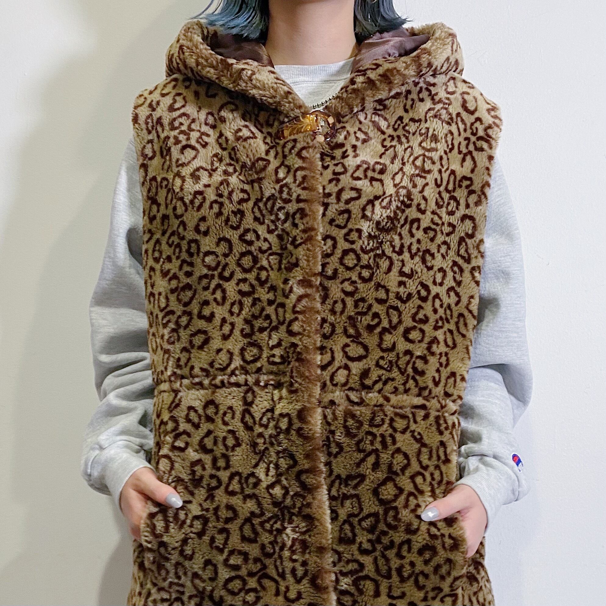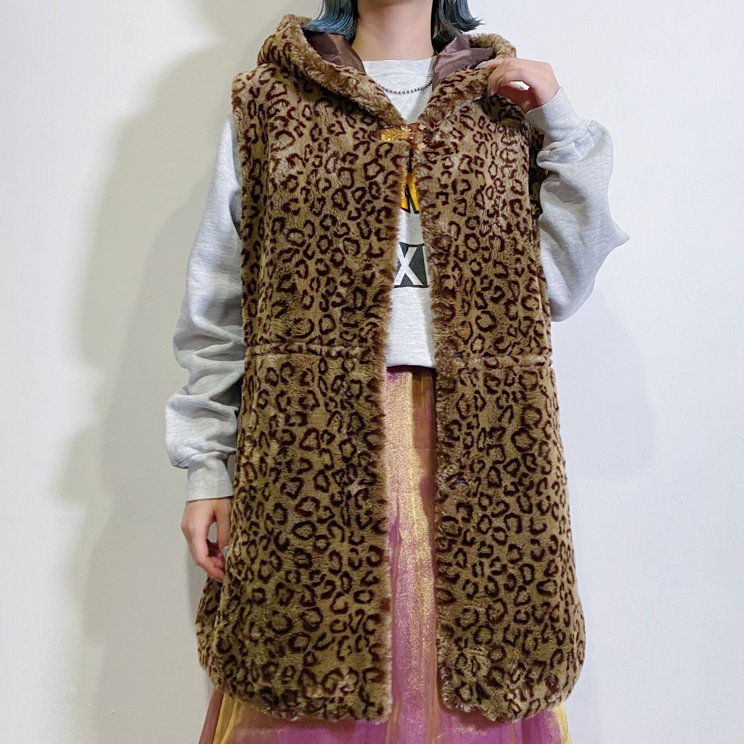 胸の留め具が可愛い、エコファーでできたレオパードベストです。