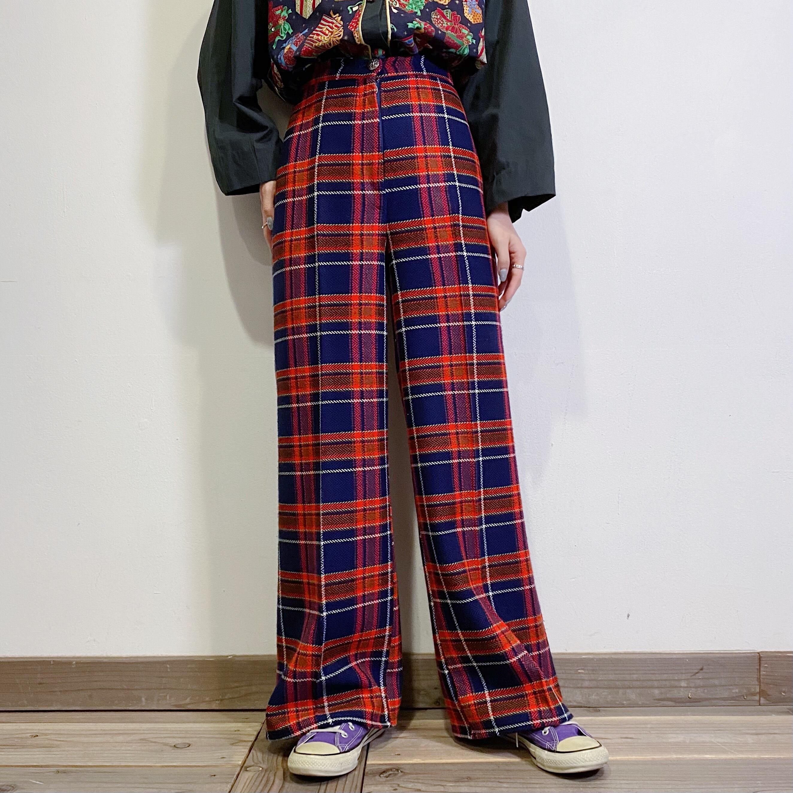 ネイビーとレッドの色合いがキュートな、70年代のチェックウールパンツです。