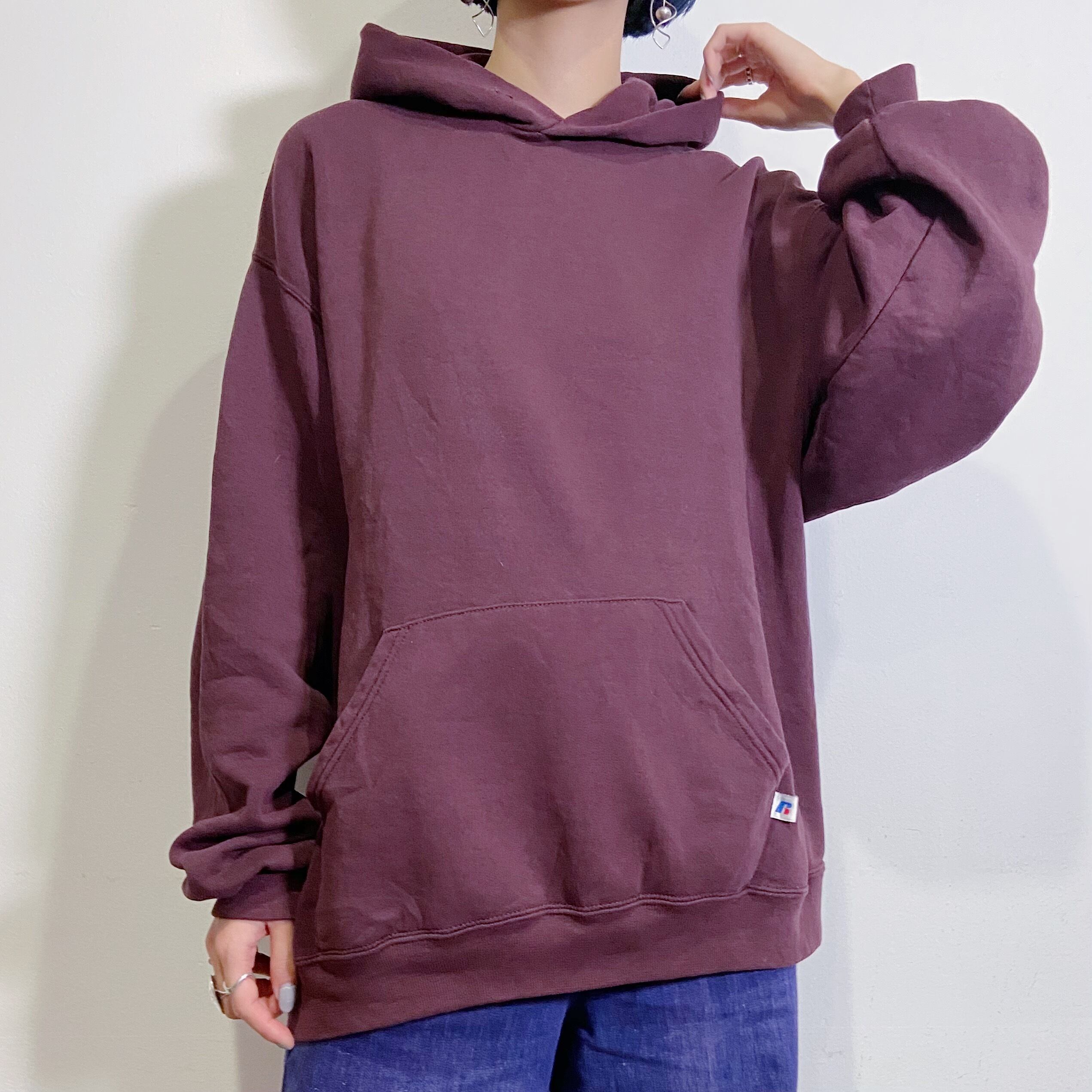 ワインレッドの色合いが可愛く、無地で使い勝手の良さそうな80年代のフーディーです。