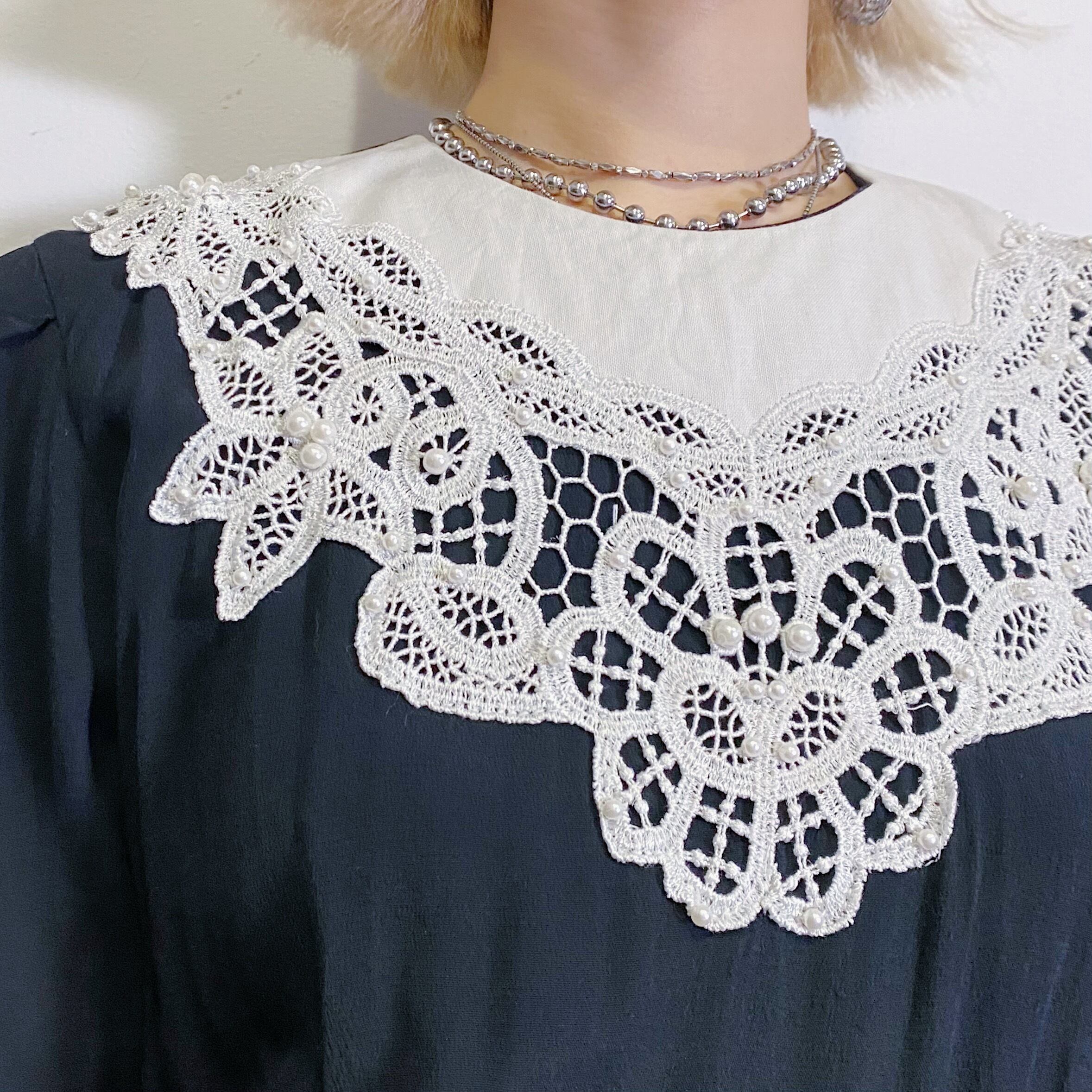 バテンレースが襟のように付けられた、80年代のワンピースです。