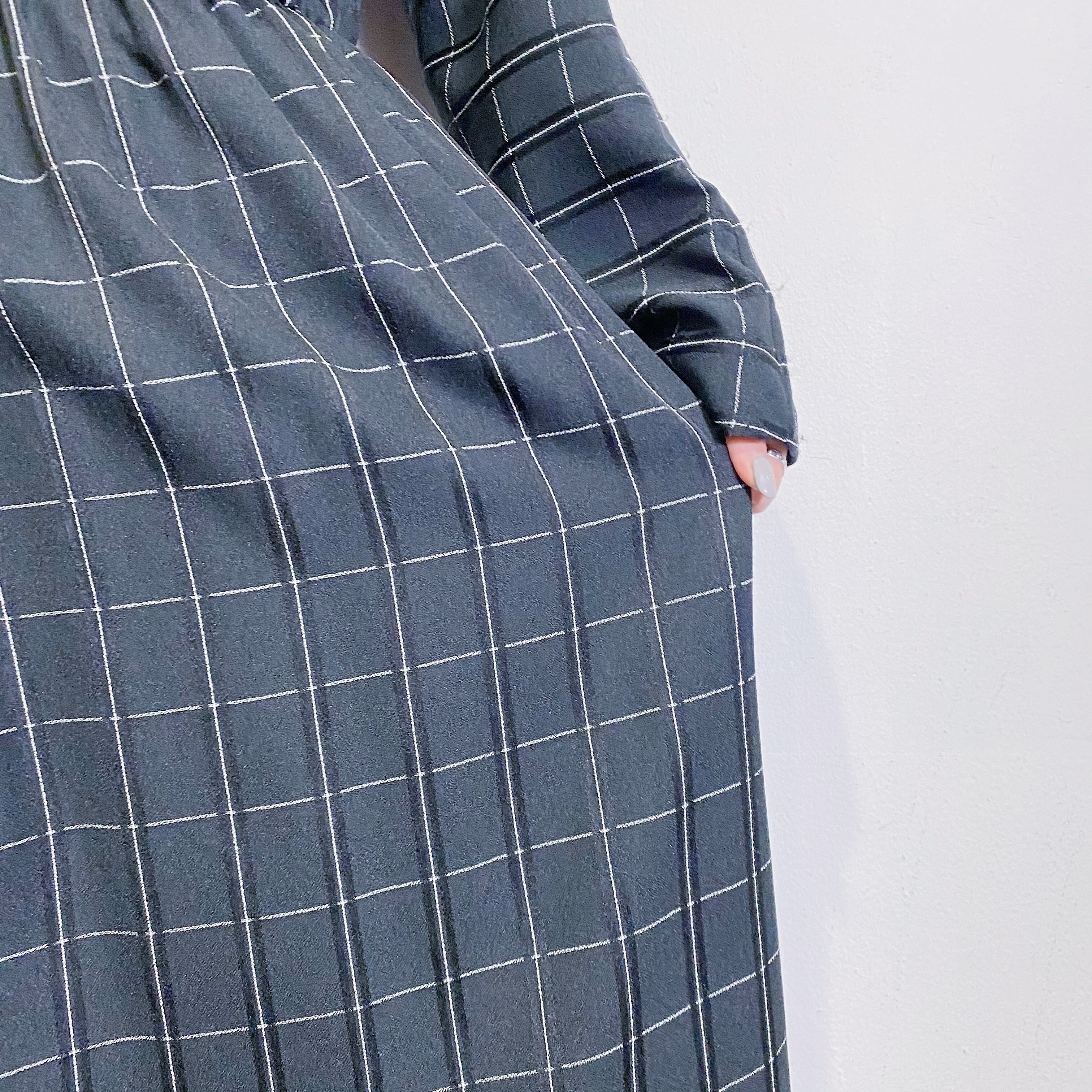 チェック柄にレースの襟が可愛い、80年代のワンピースです。