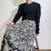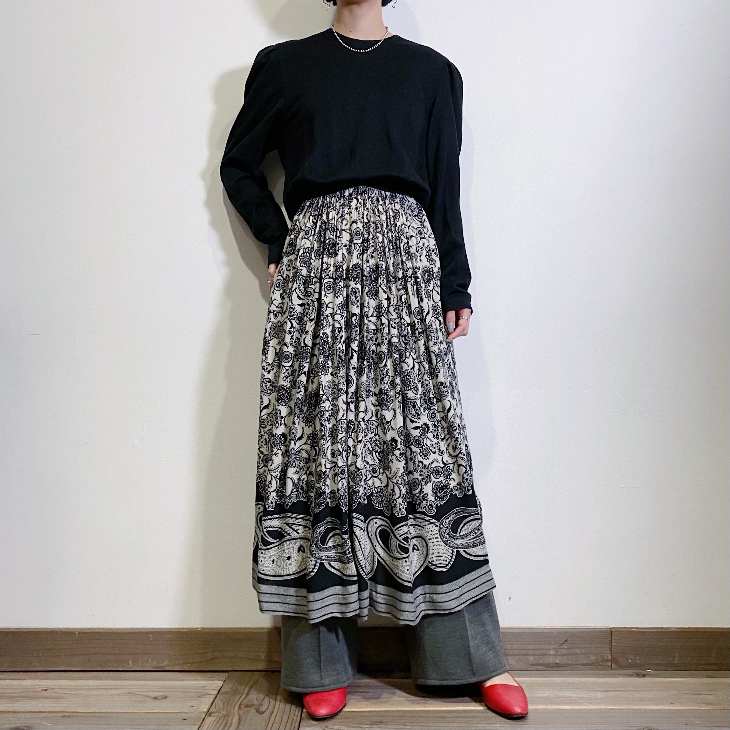 モノトーンカラーの花柄とペイズリー柄が大人可愛い、80年代のレーヨンワンピースです。