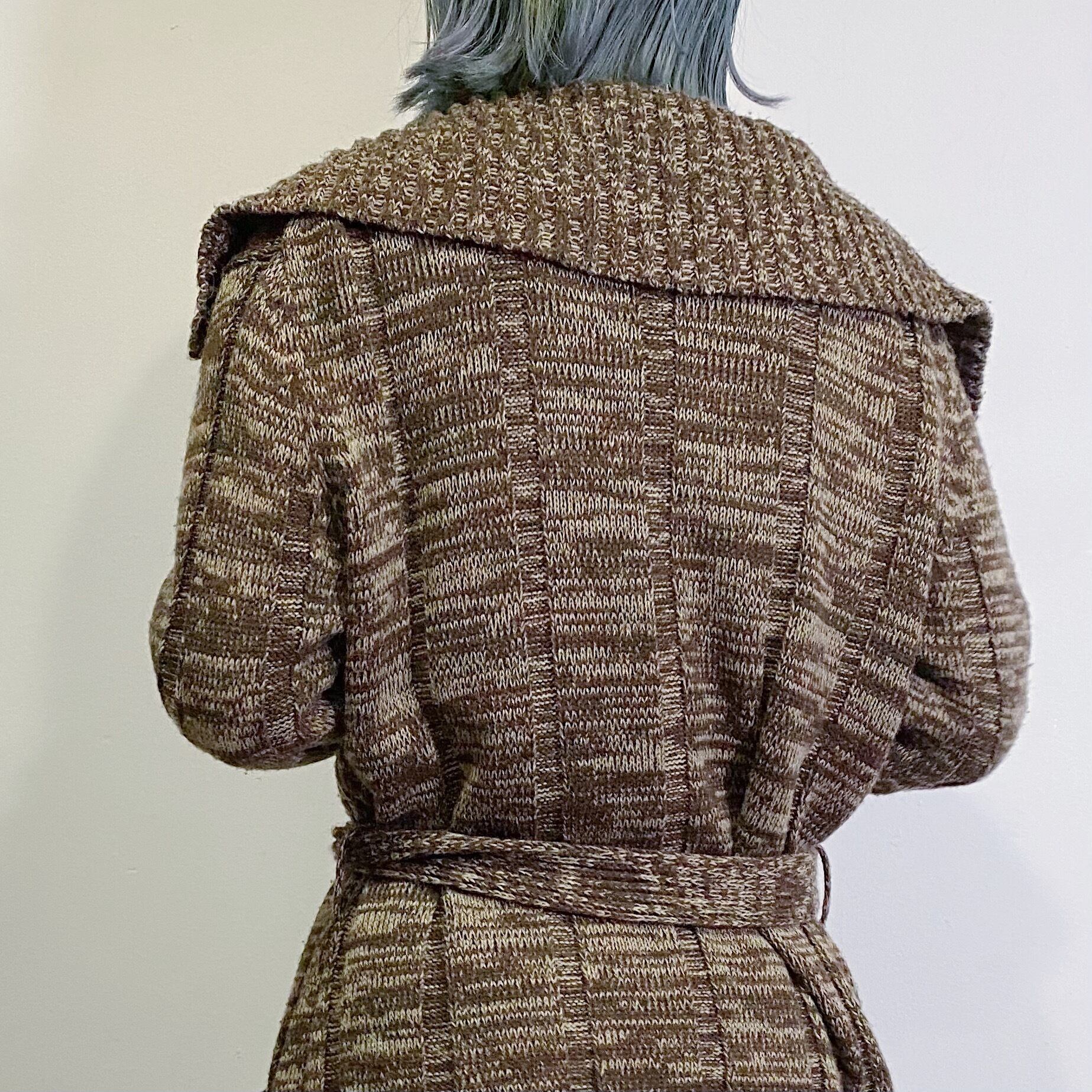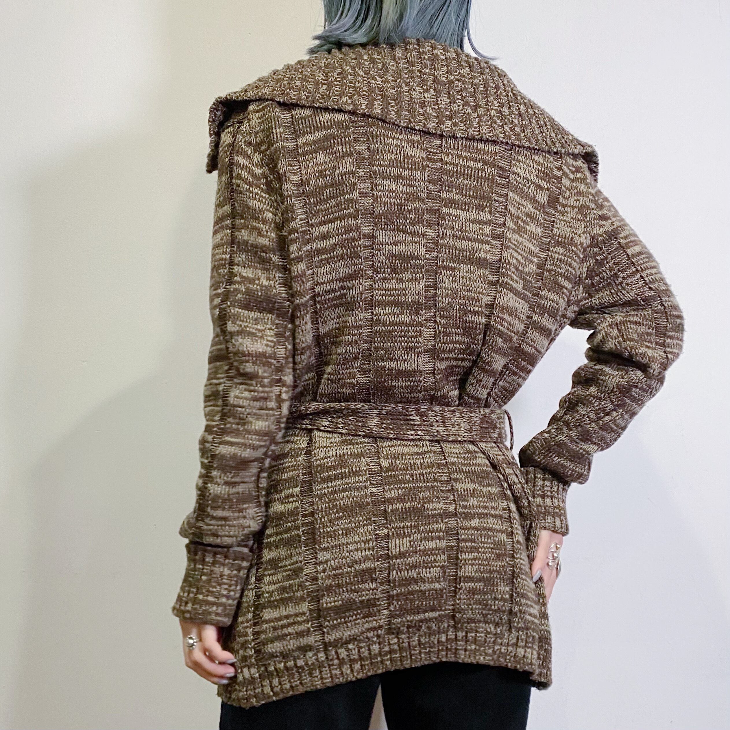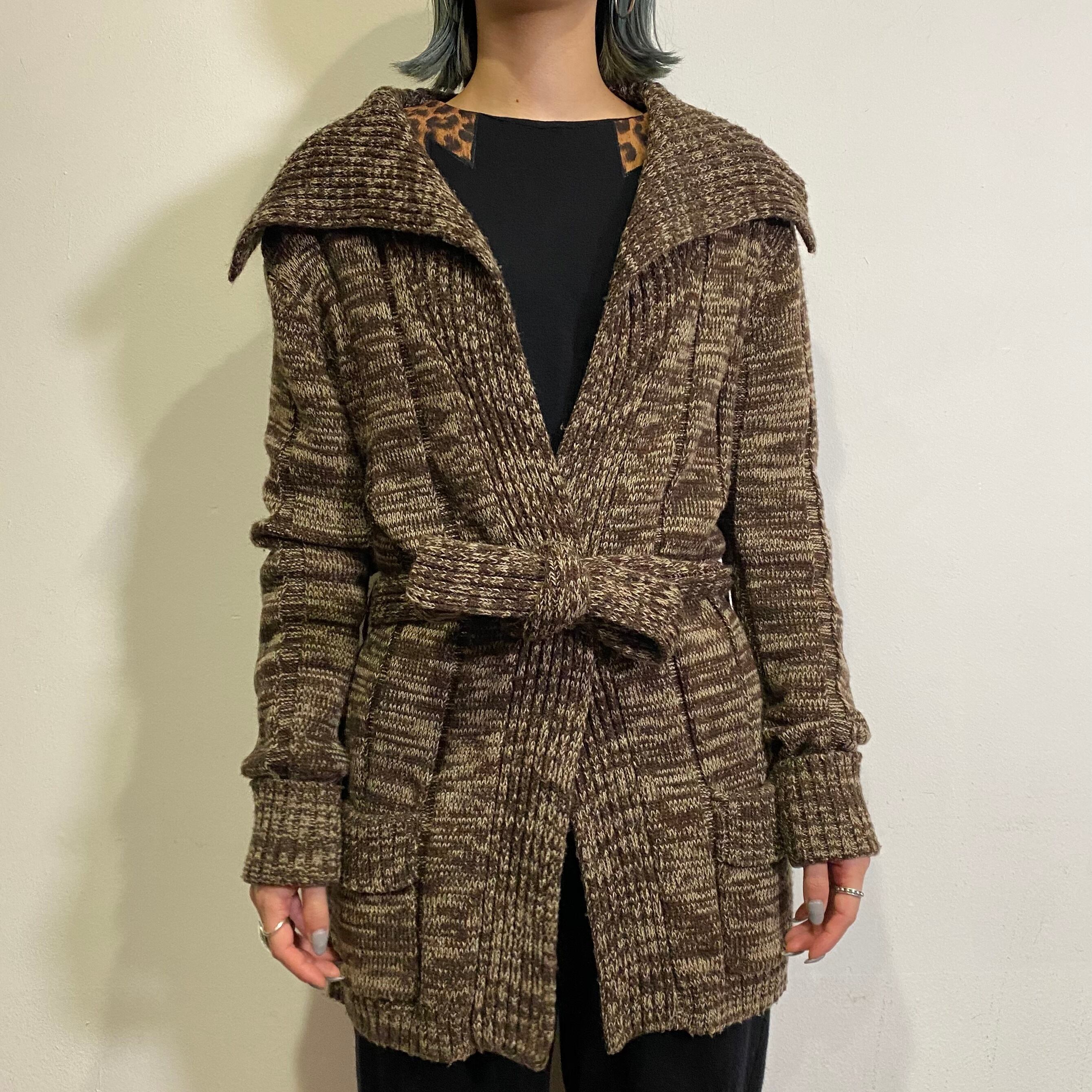 優しいブラウンカラーが大人可愛い、70年代のガウン調カーディガンです。