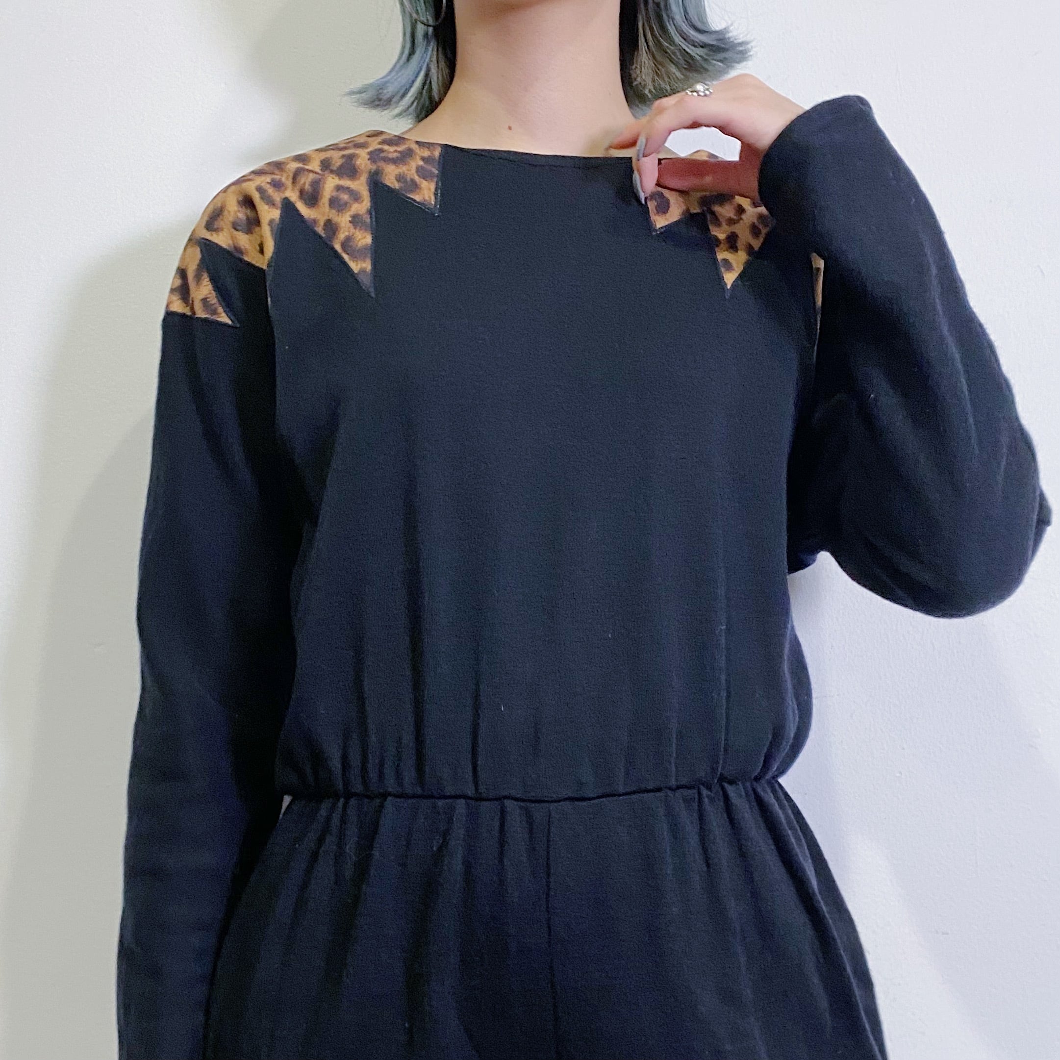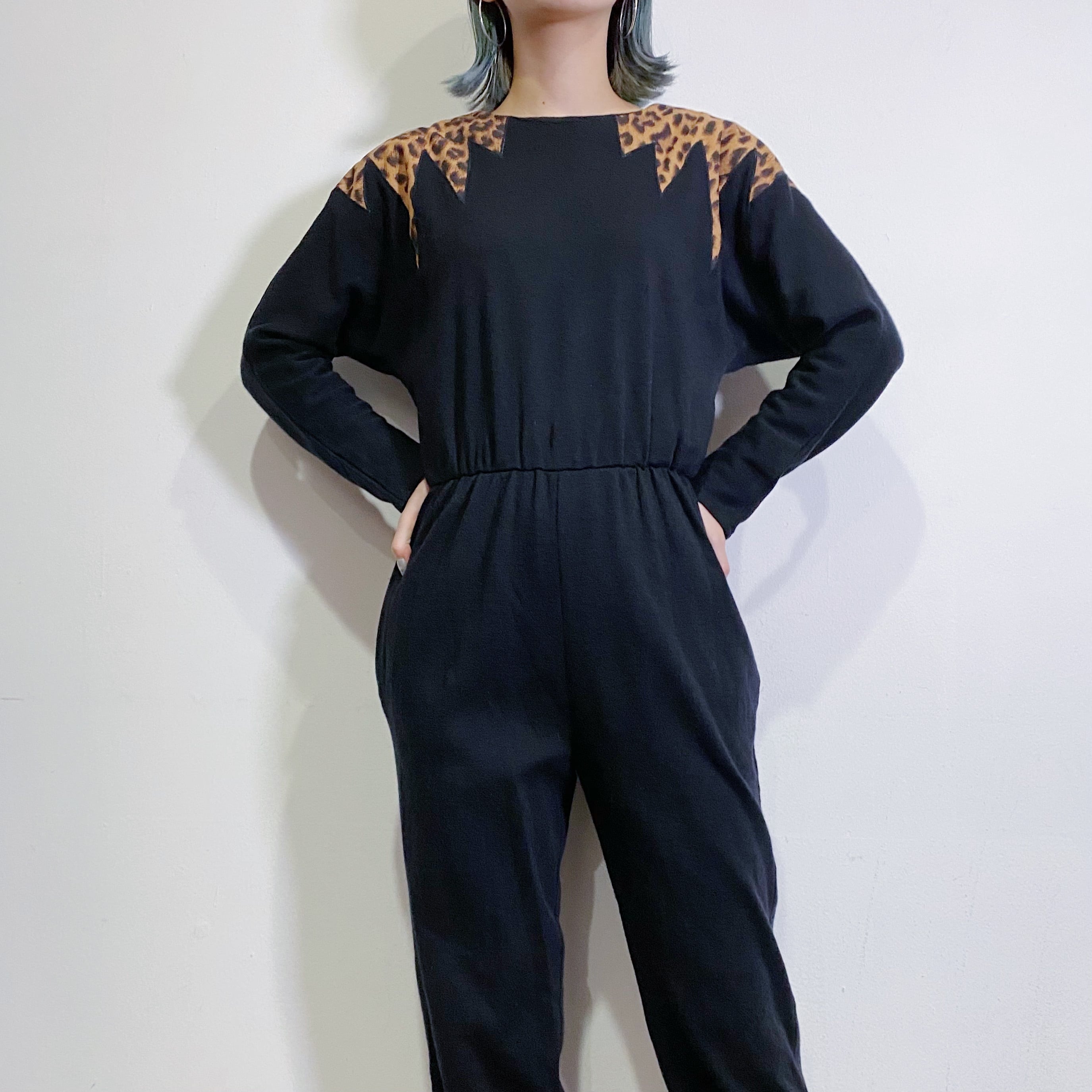 肩にレオパードのパッチがついた、80年代のジャンプスーツです。