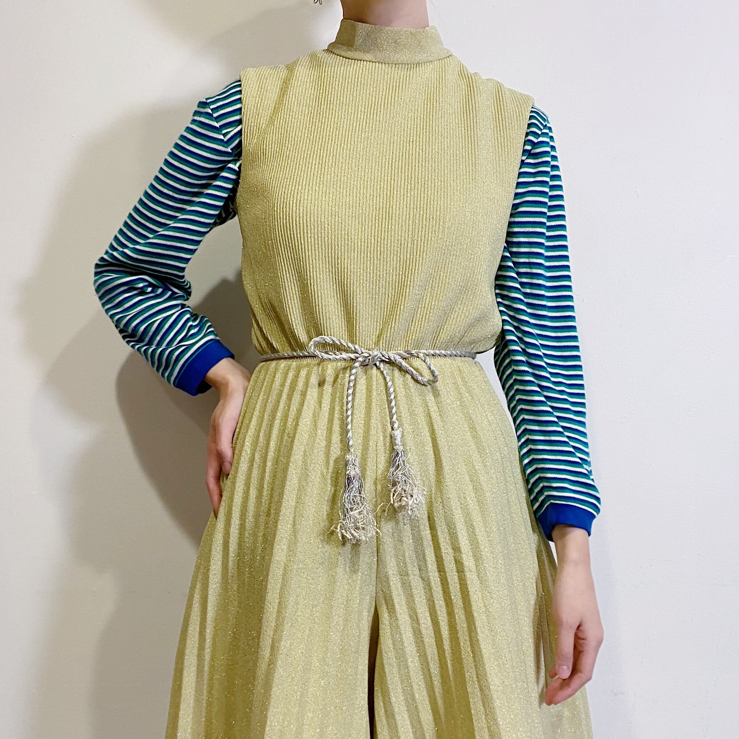 ハリのあるしっかりとした素材にラメが入った素材がとっても素敵な、60‐70年代のジャンプスーツです。