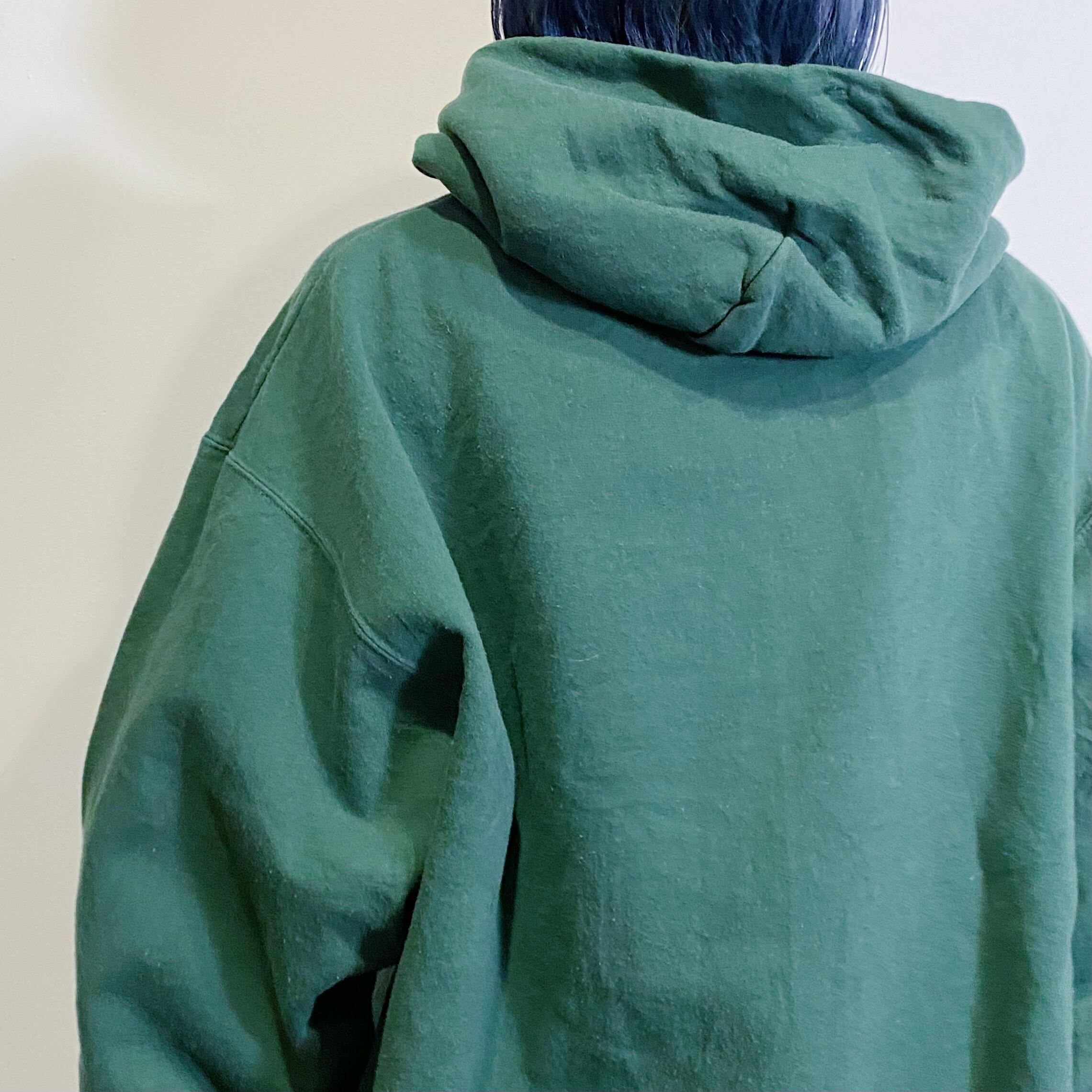 落ち着いた色合いのグリーンが着こなしやすそうなChampionのフーディーです。