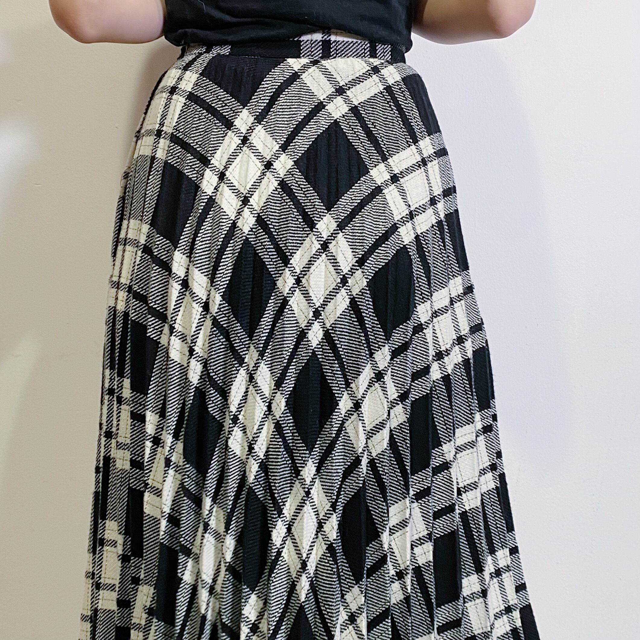 モノトーンカラーのチェックが可愛い70年代のウールスカートです。