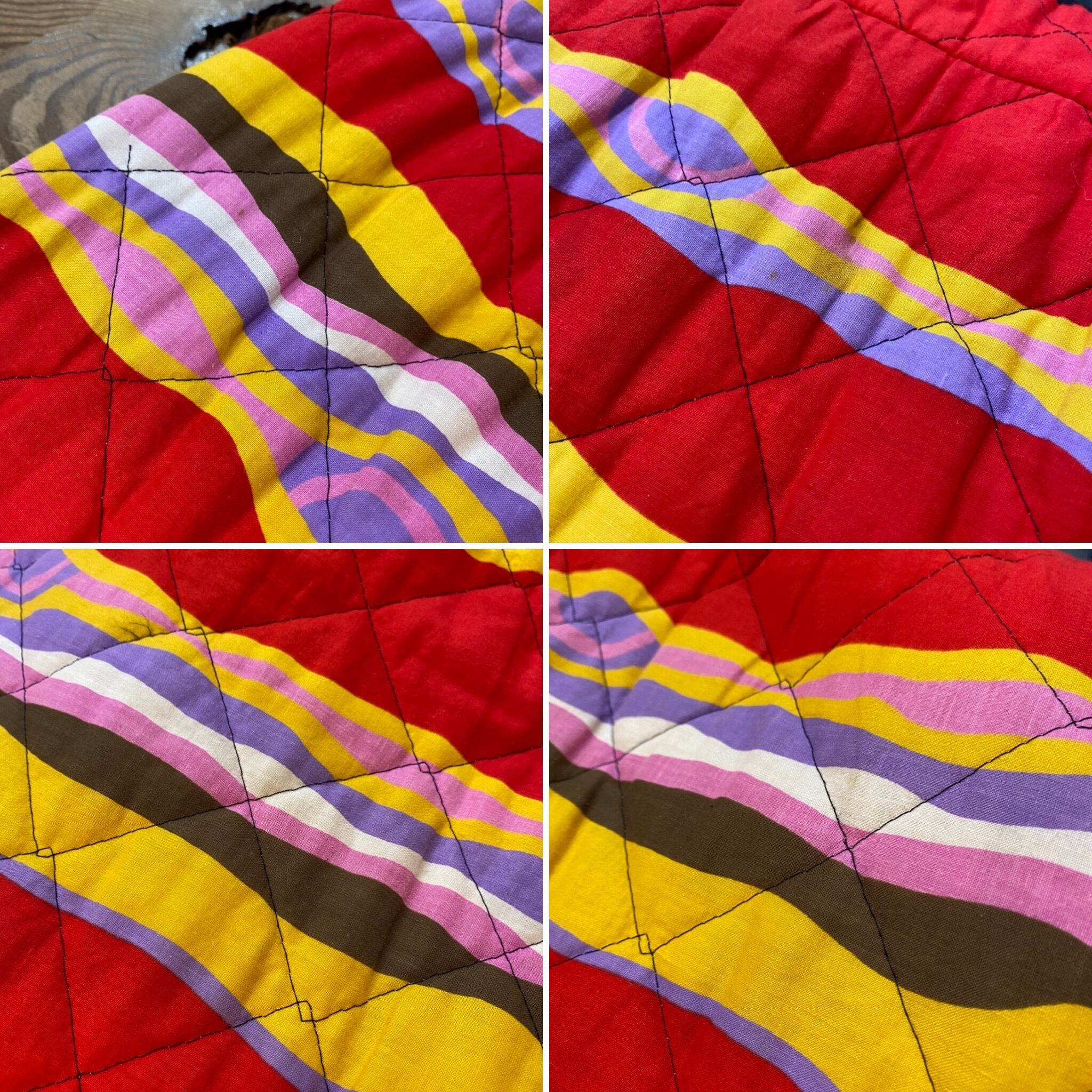 スカート部分にうっすらとしたシミやヨゴレ、キルティングの糸のホツレている箇所が見受けられます。